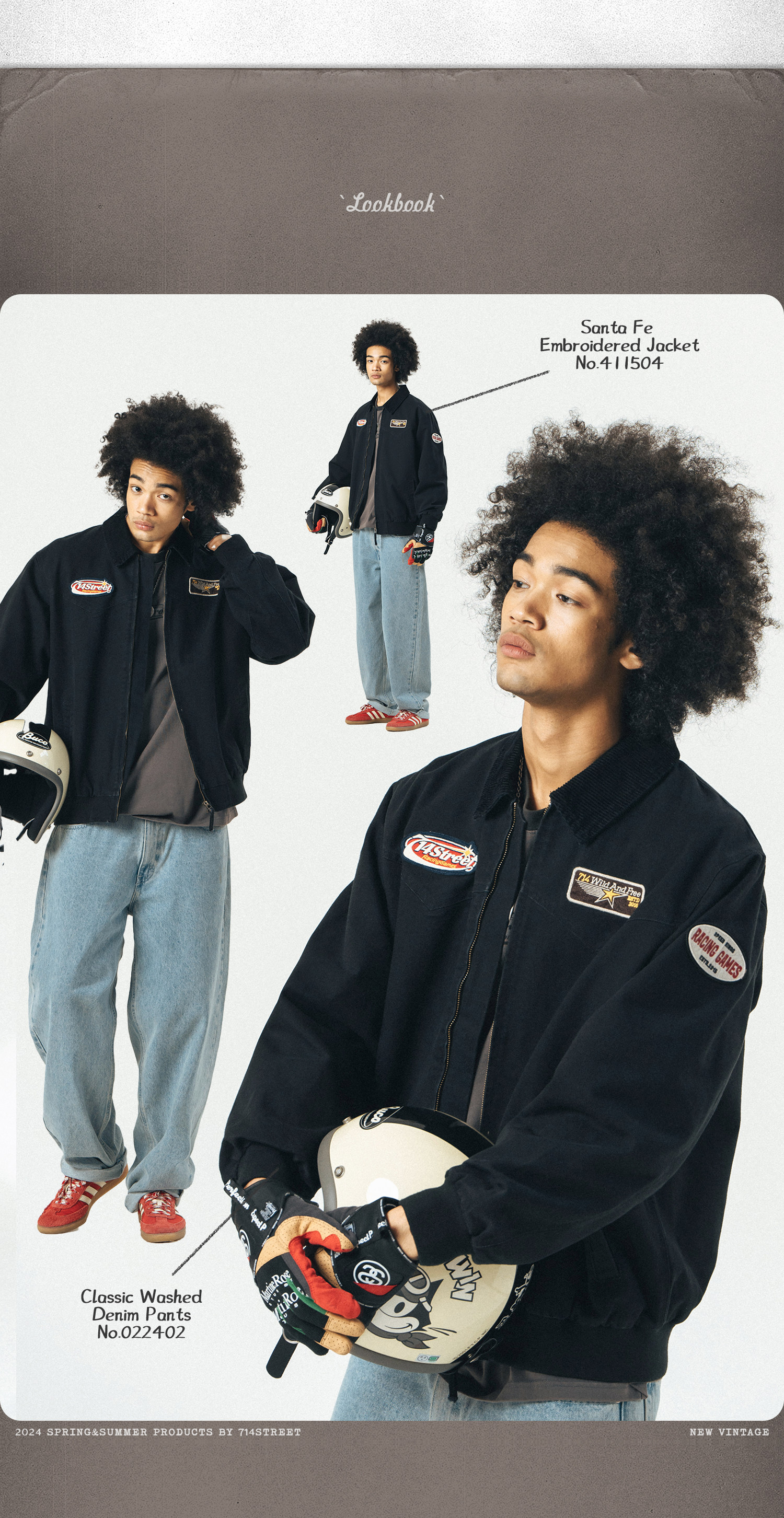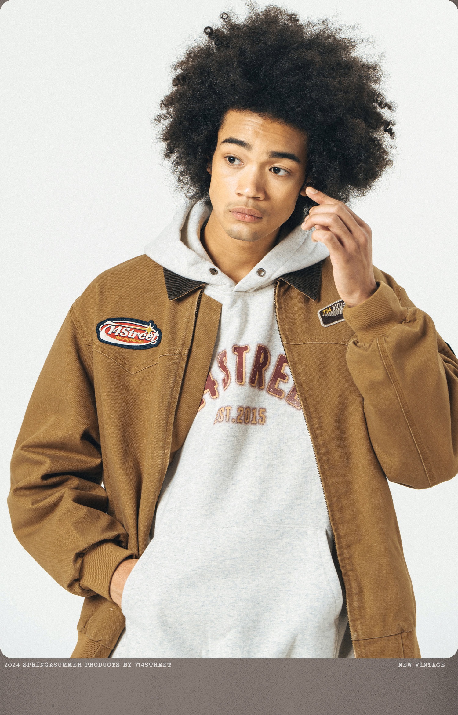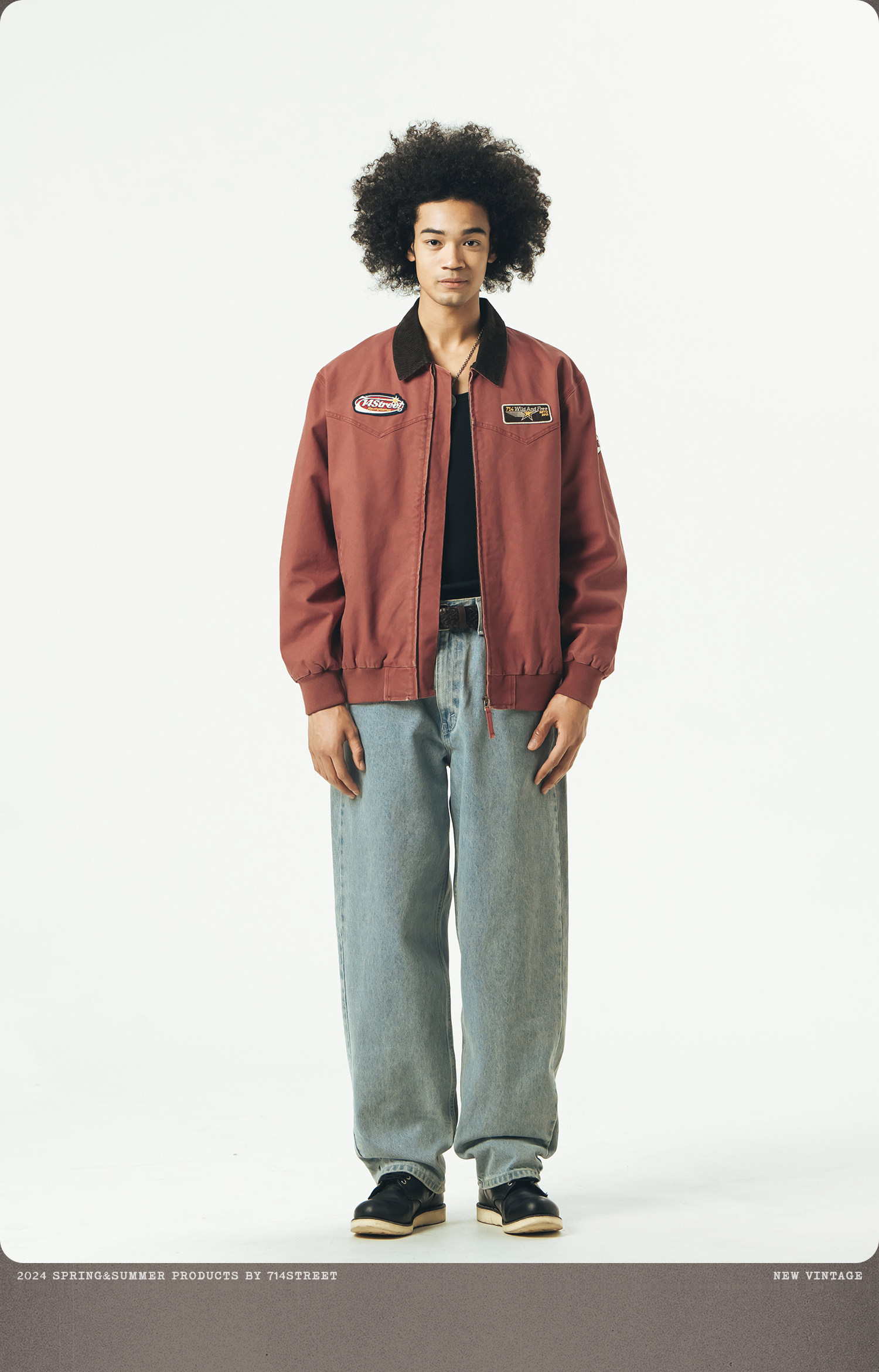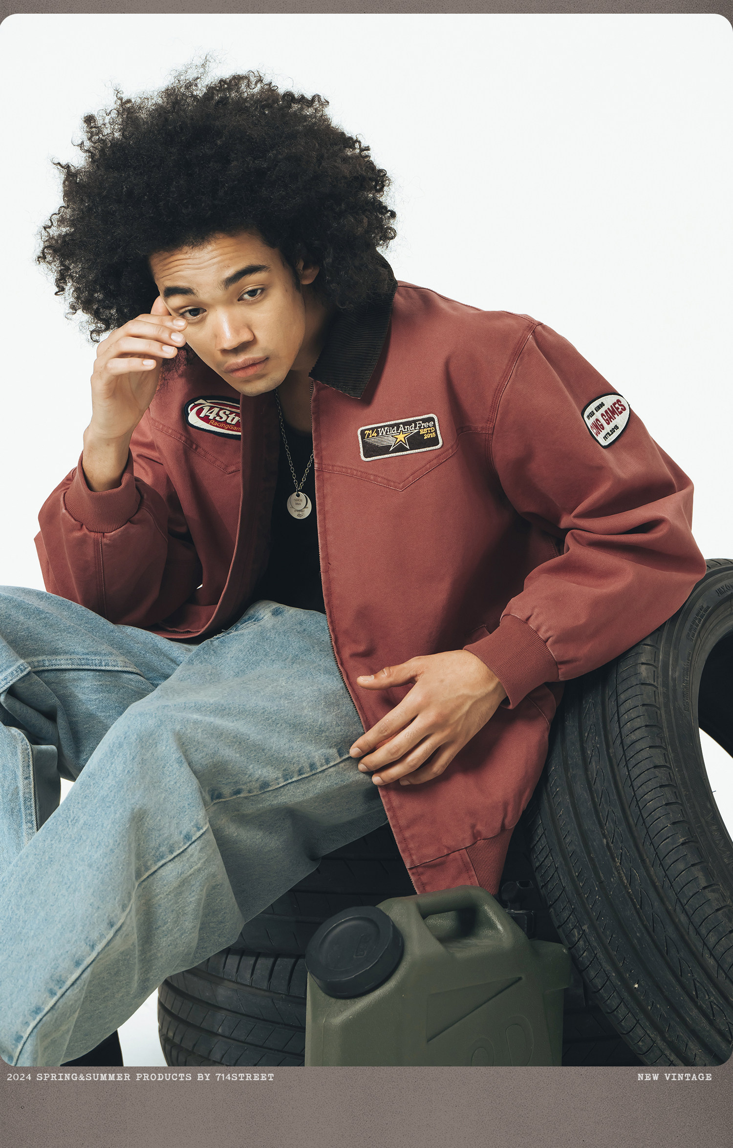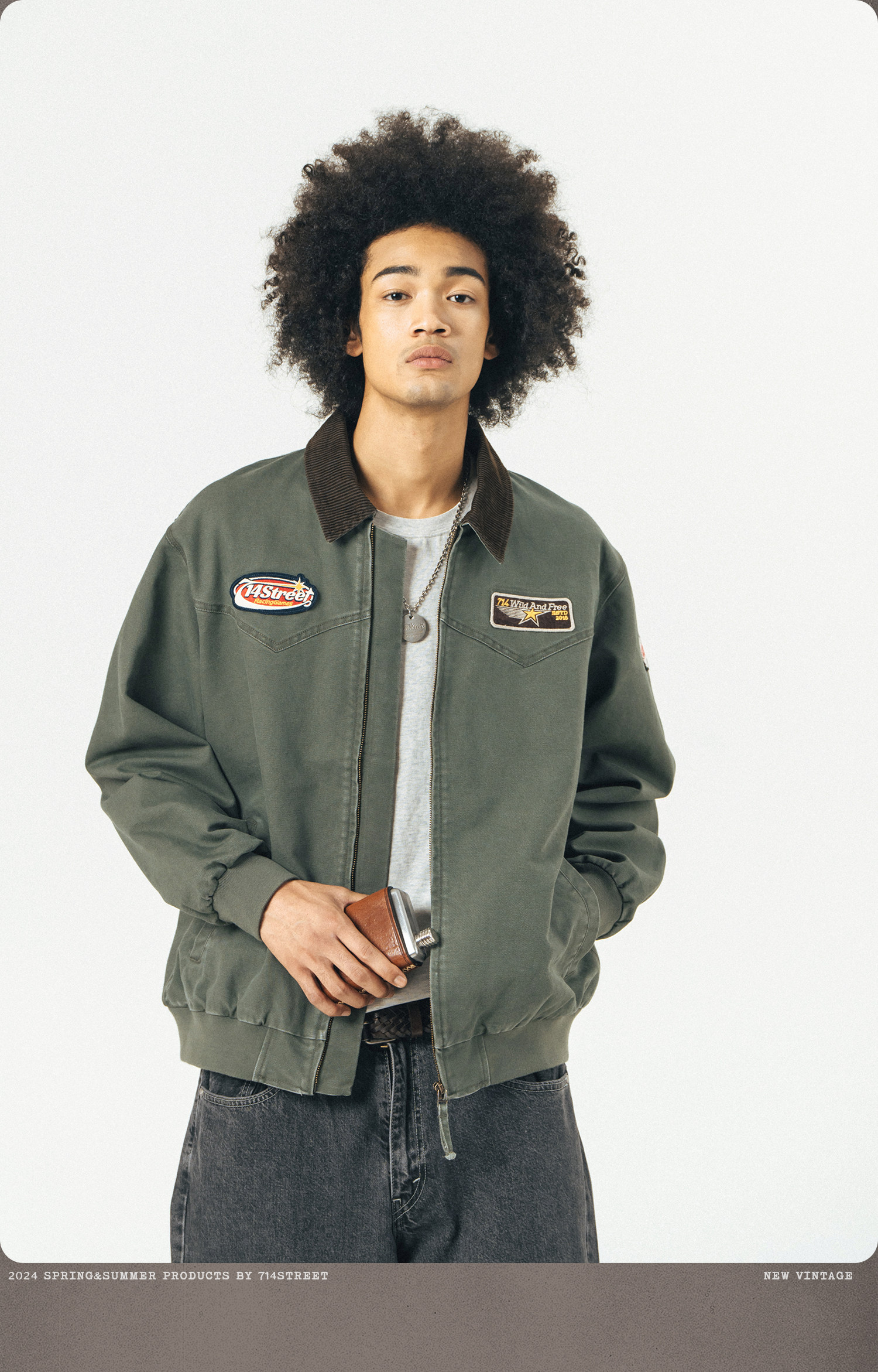 714street美式复古外套男春秋新款翻领上衣潮牌情侣装圣达菲夹克