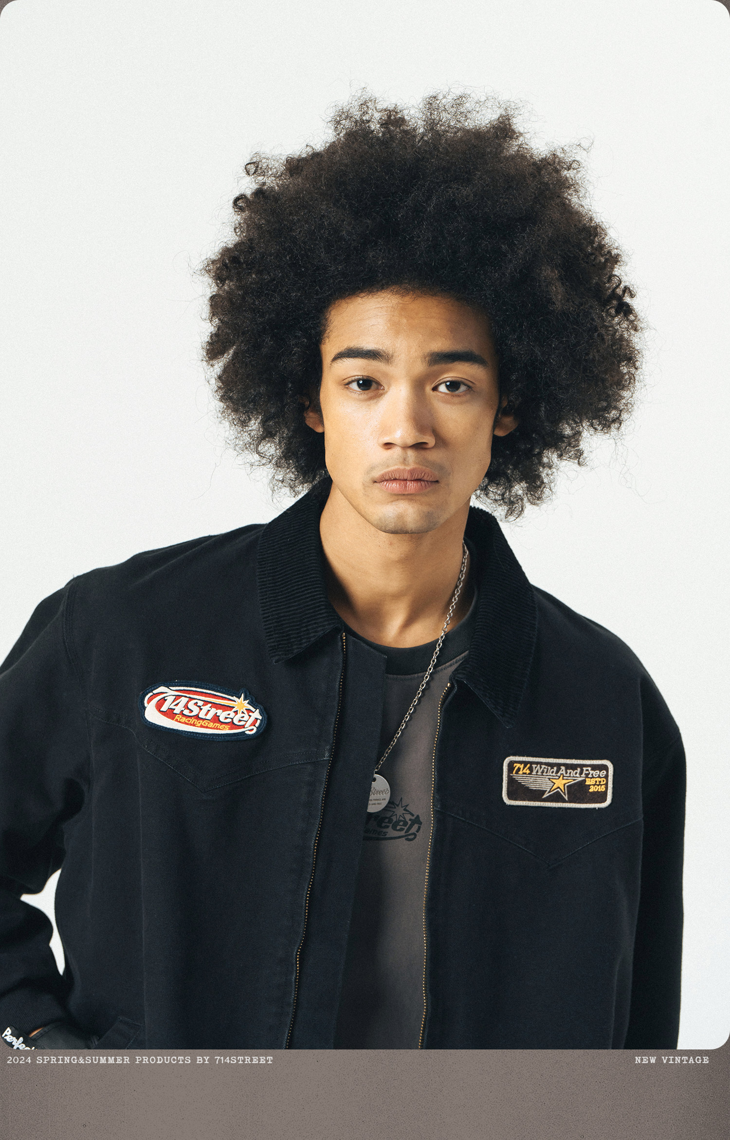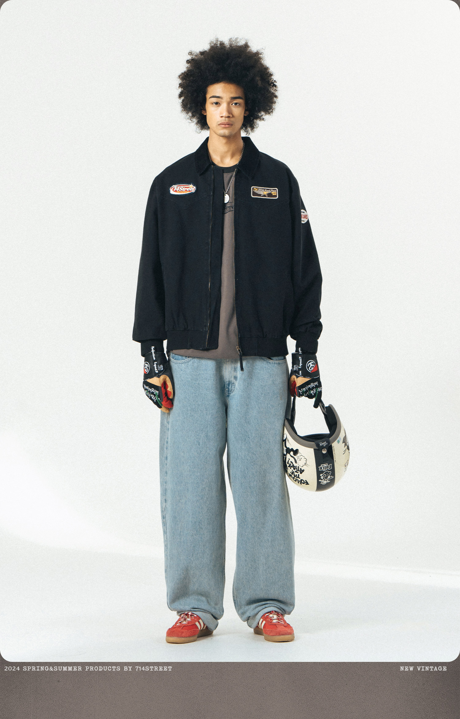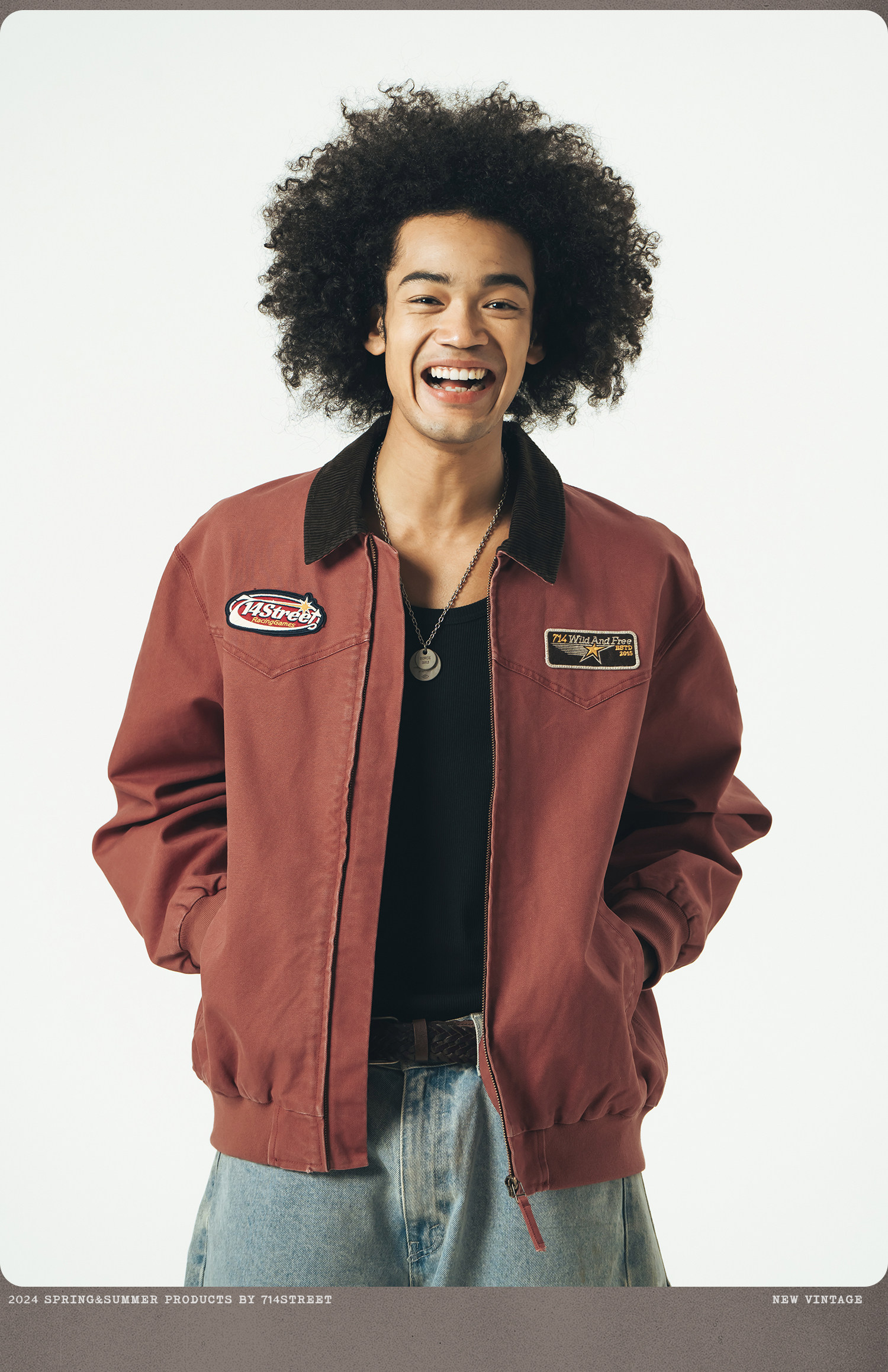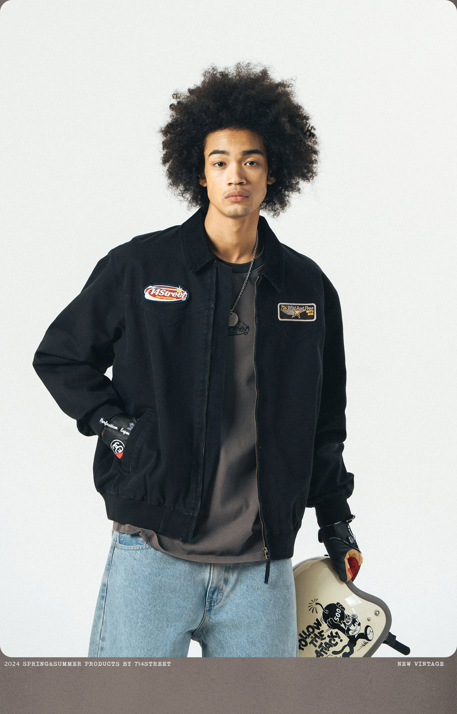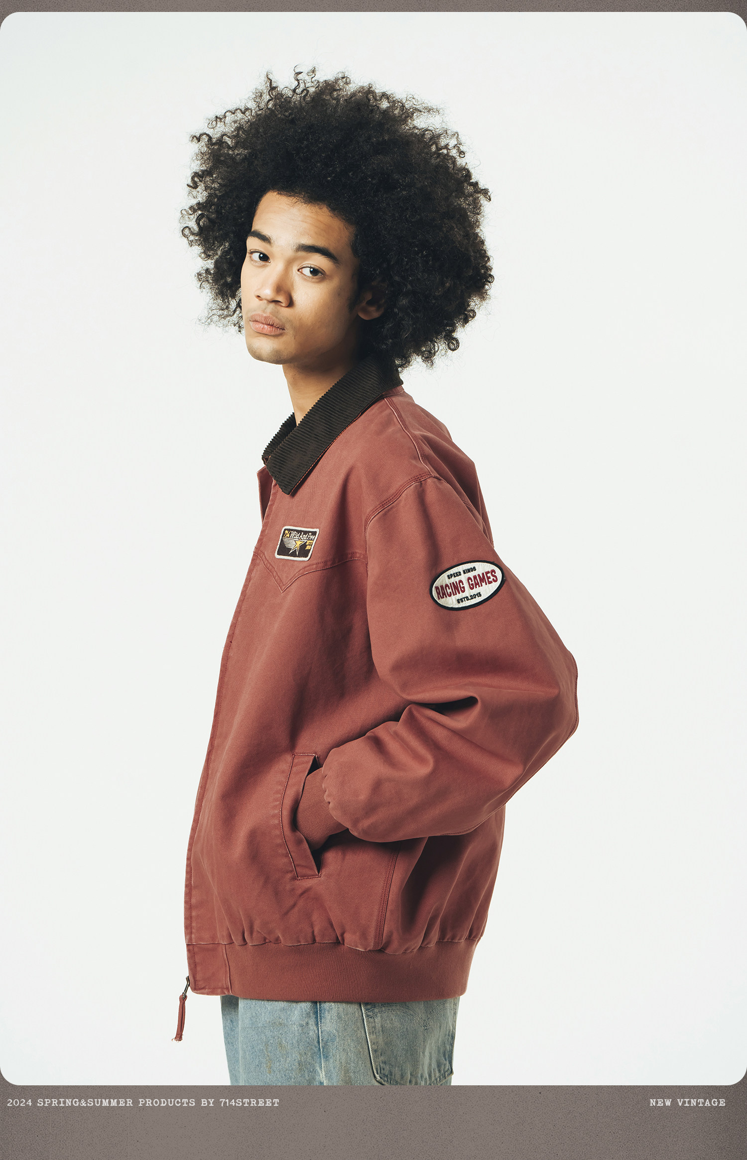 714street美式复古外套男春秋新款翻领上衣潮牌情侣装圣达菲夹克