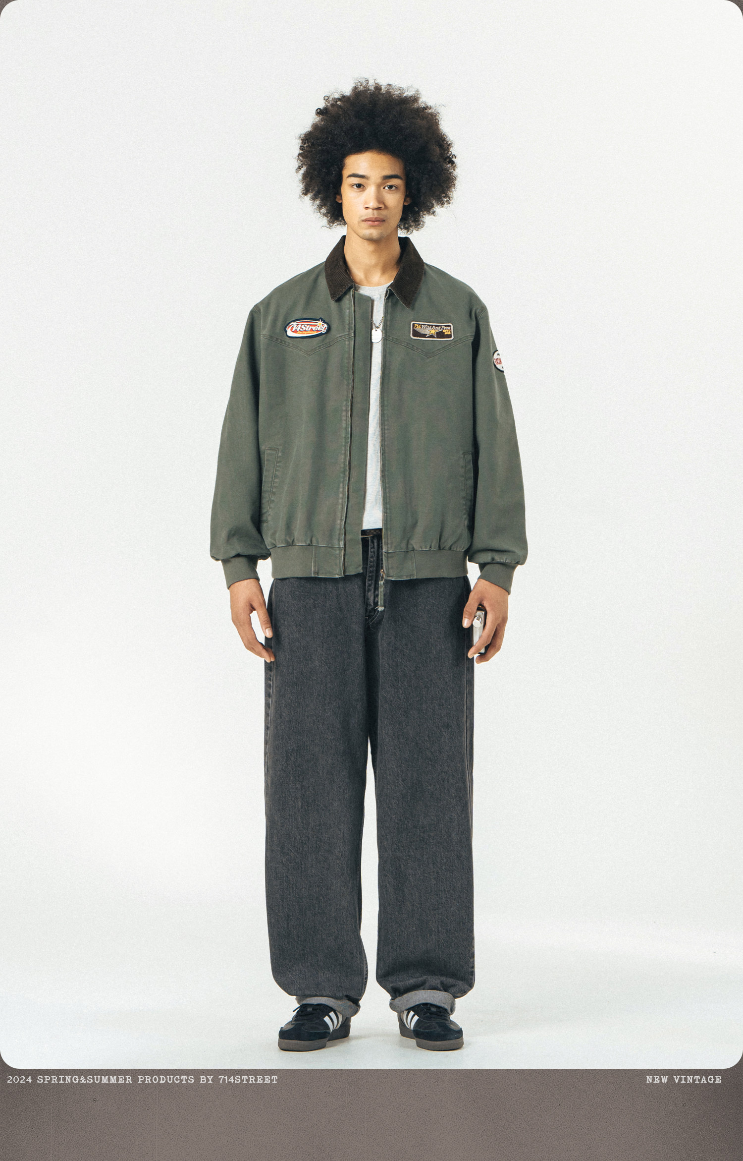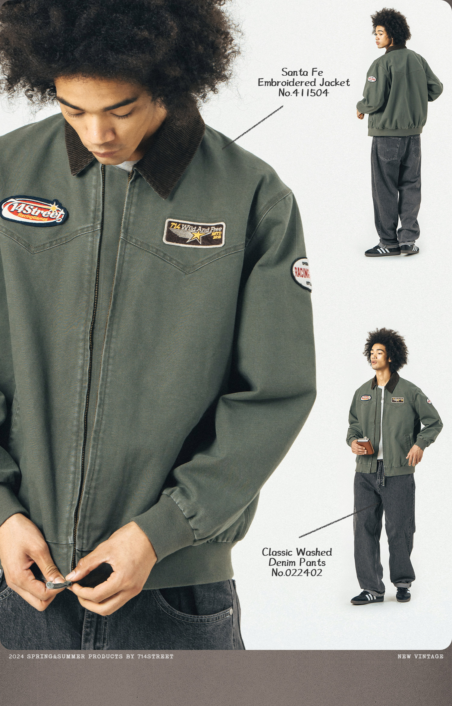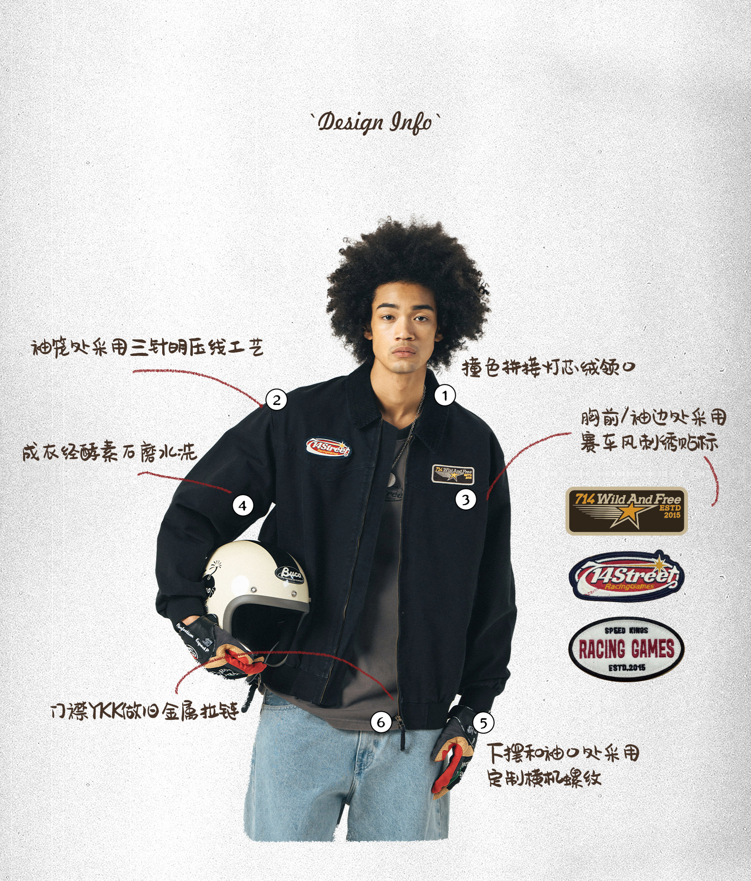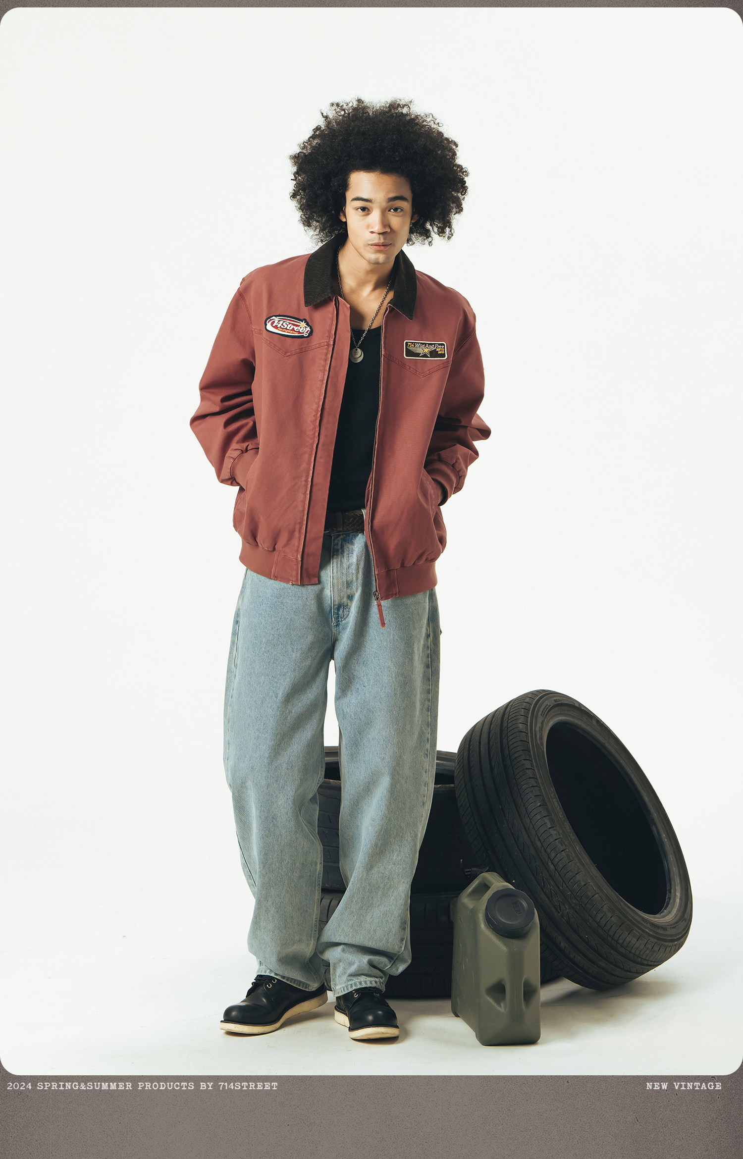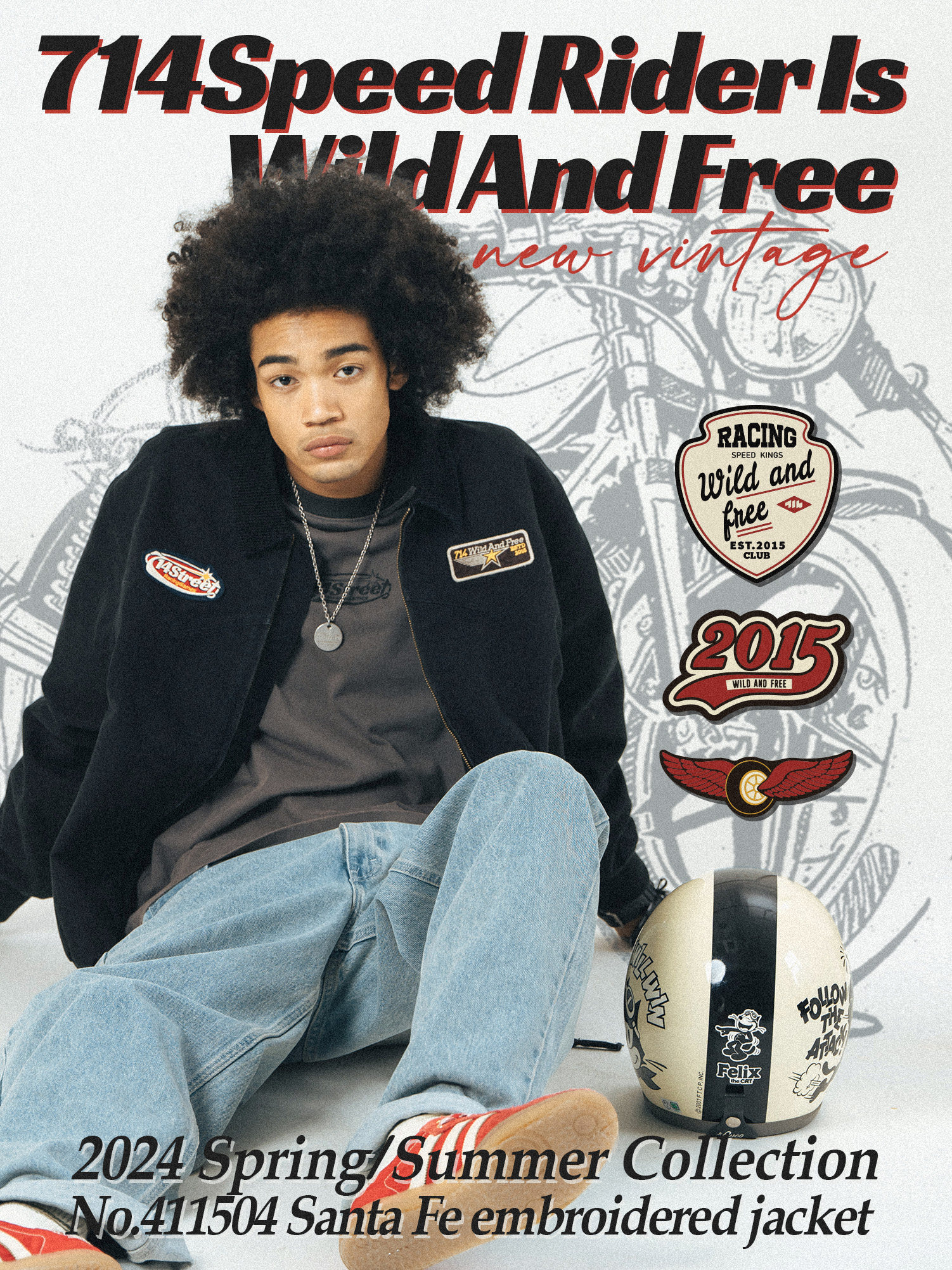 714street美式复古外套男春秋新款翻领上衣潮牌情侣装圣达菲夹克