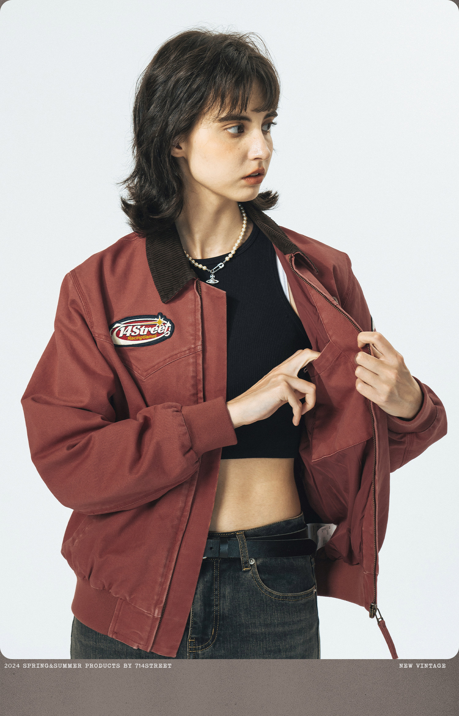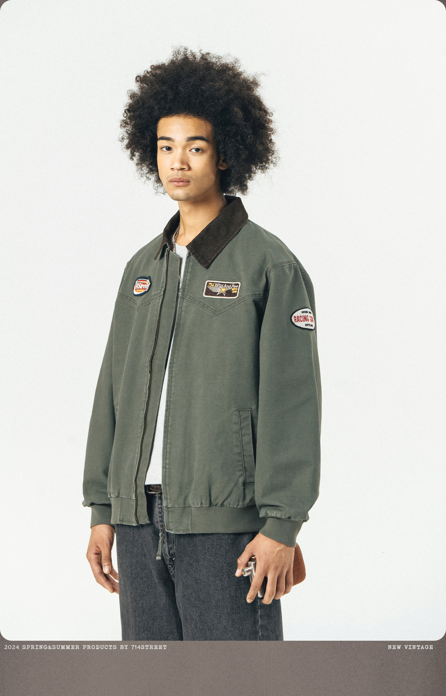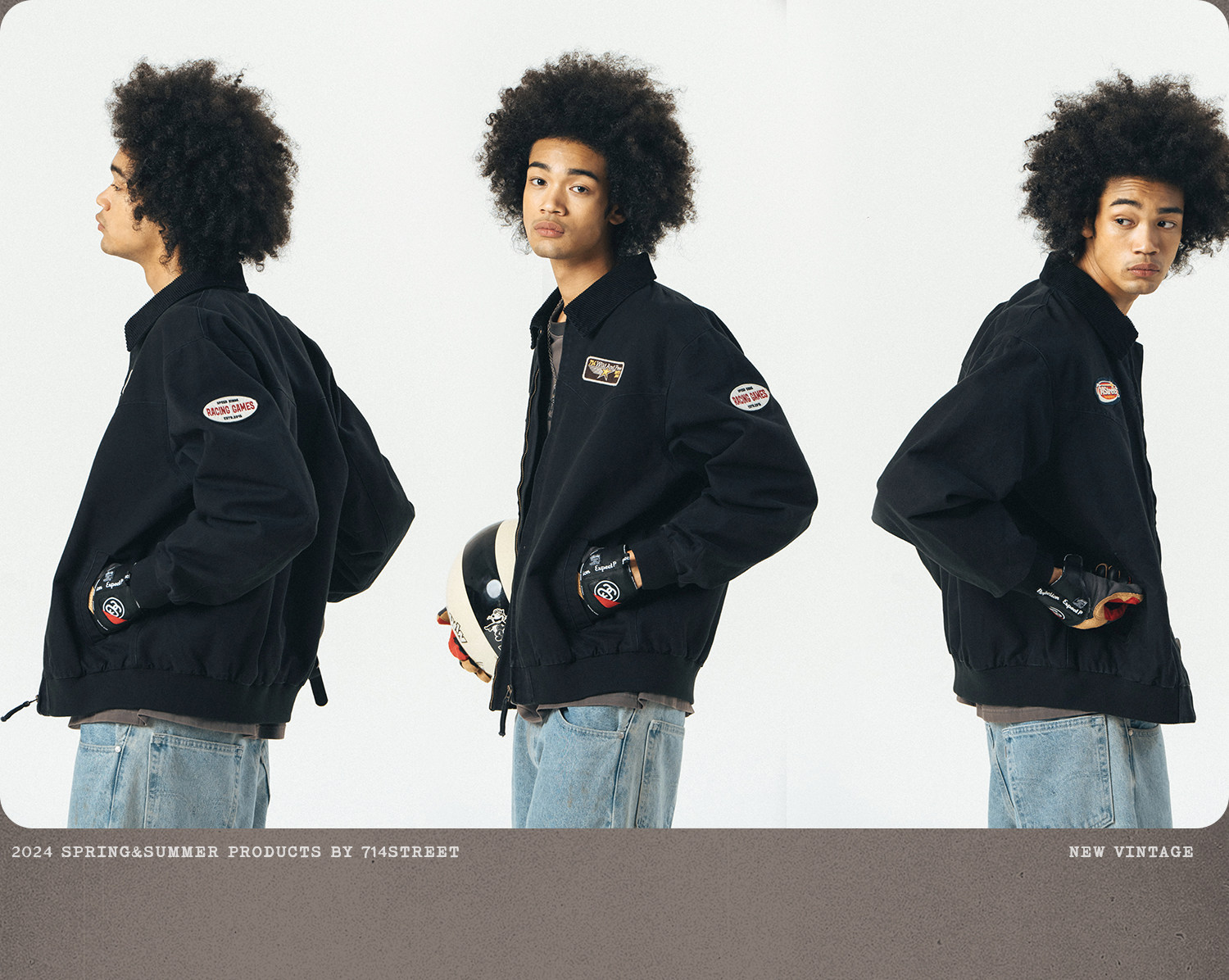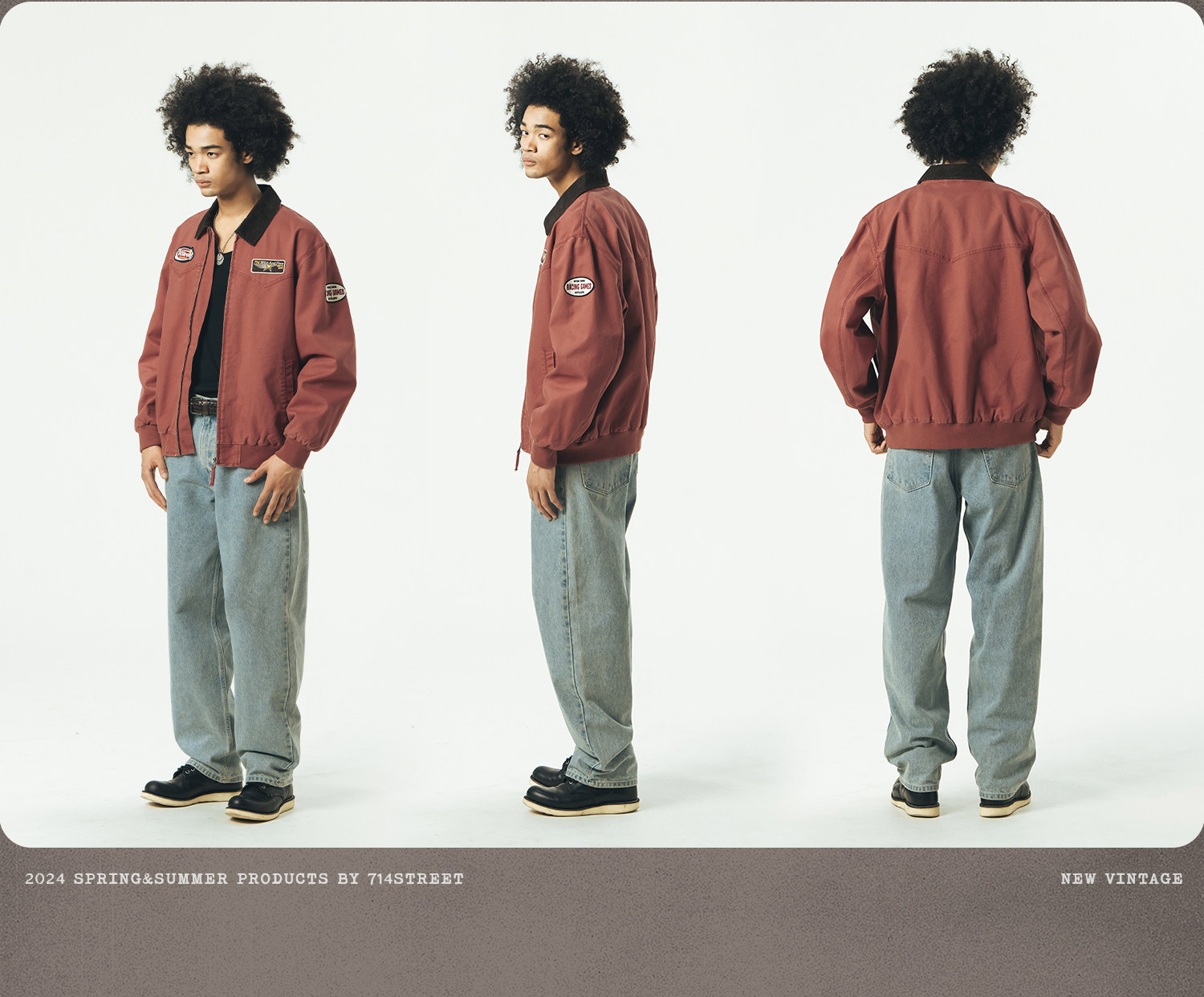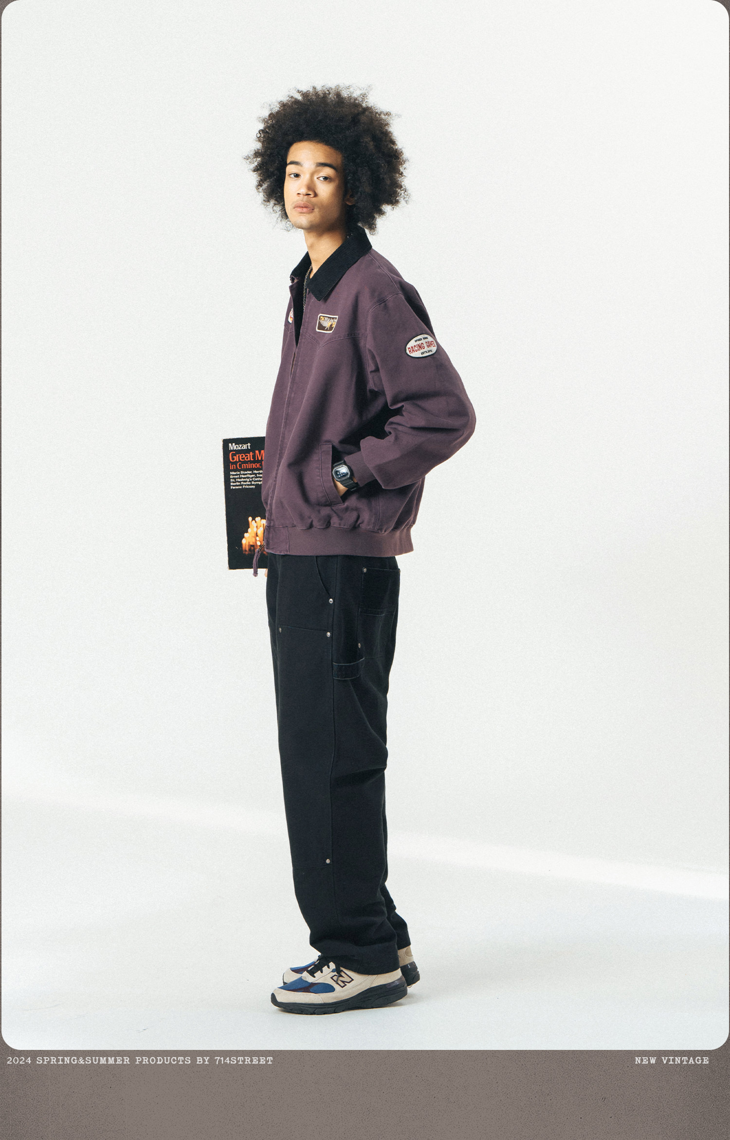 714street美式复古外套男春秋新款翻领上衣潮牌情侣装圣达菲夹克