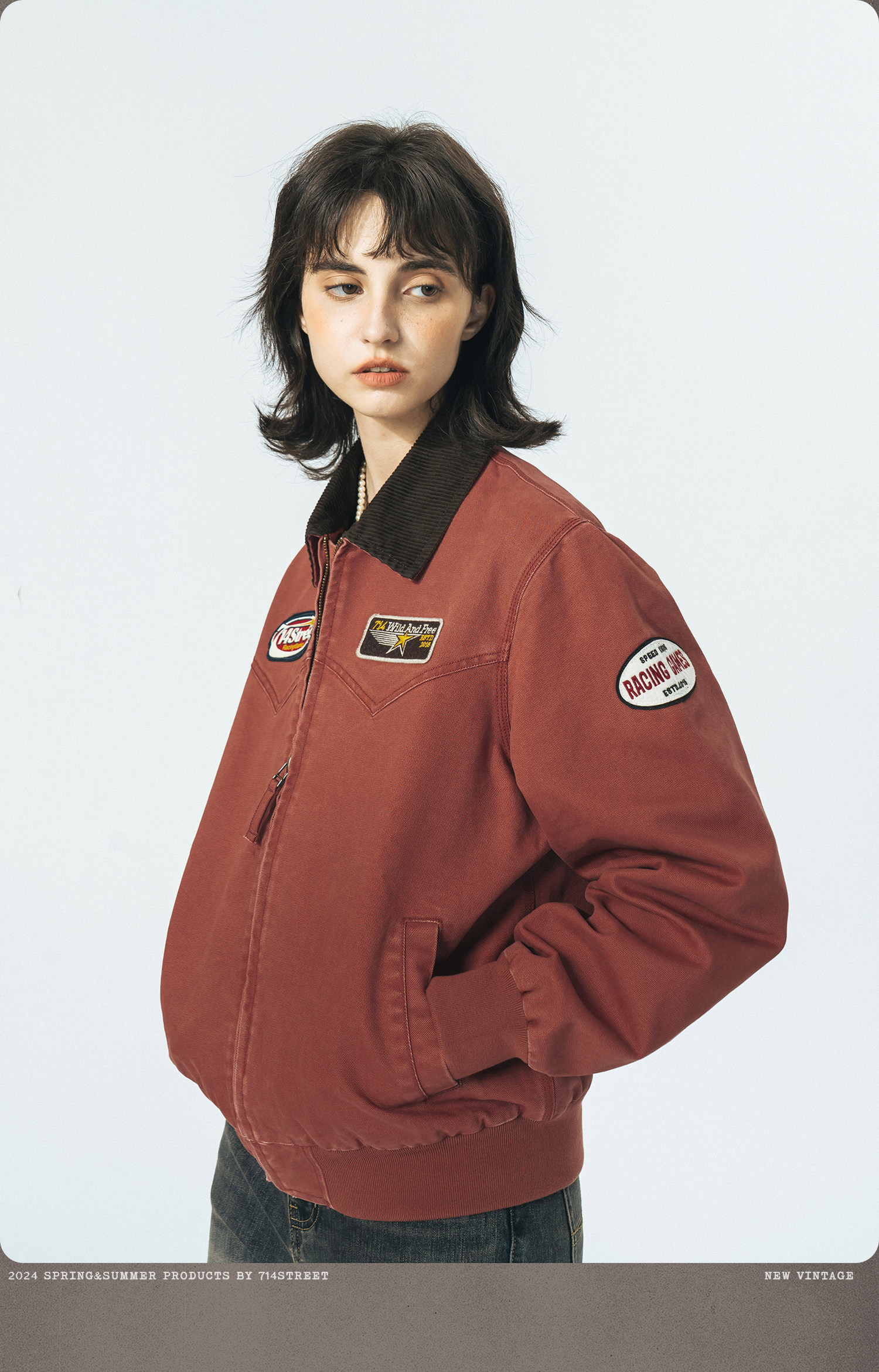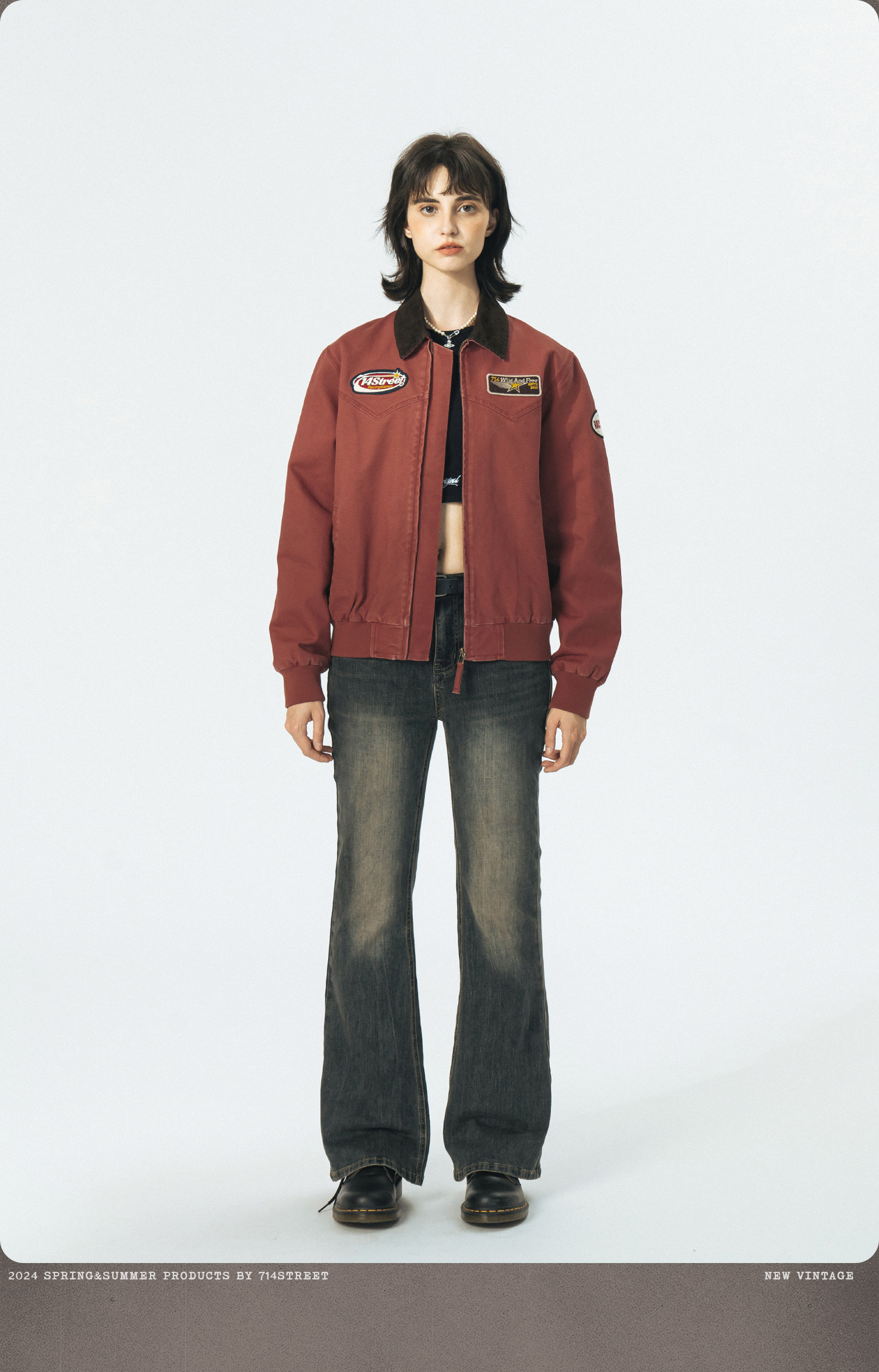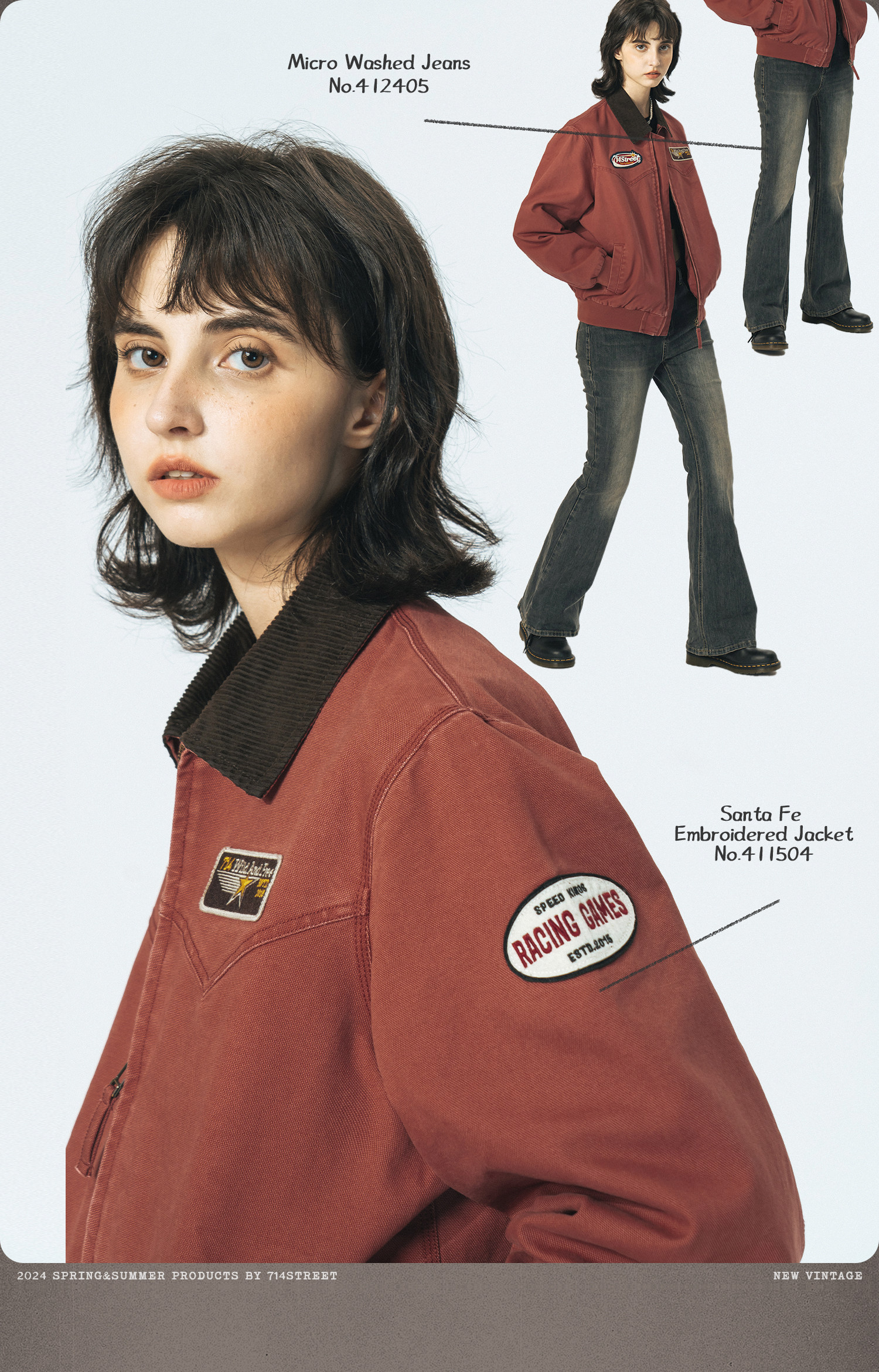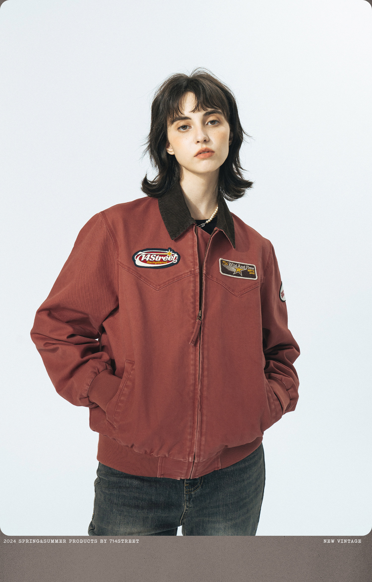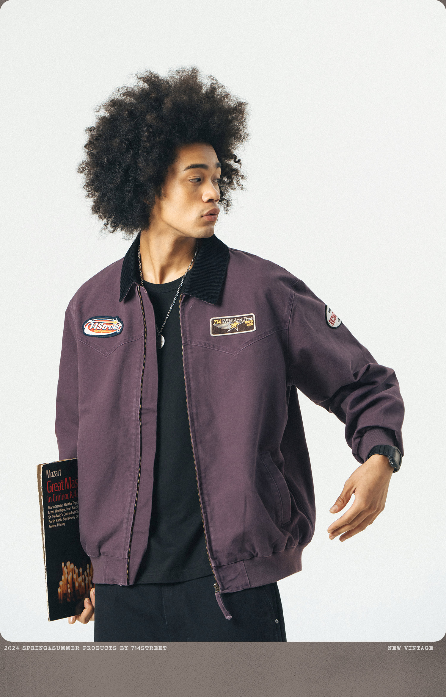 714street美式复古外套男春秋新款翻领上衣潮牌情侣装圣达菲夹克