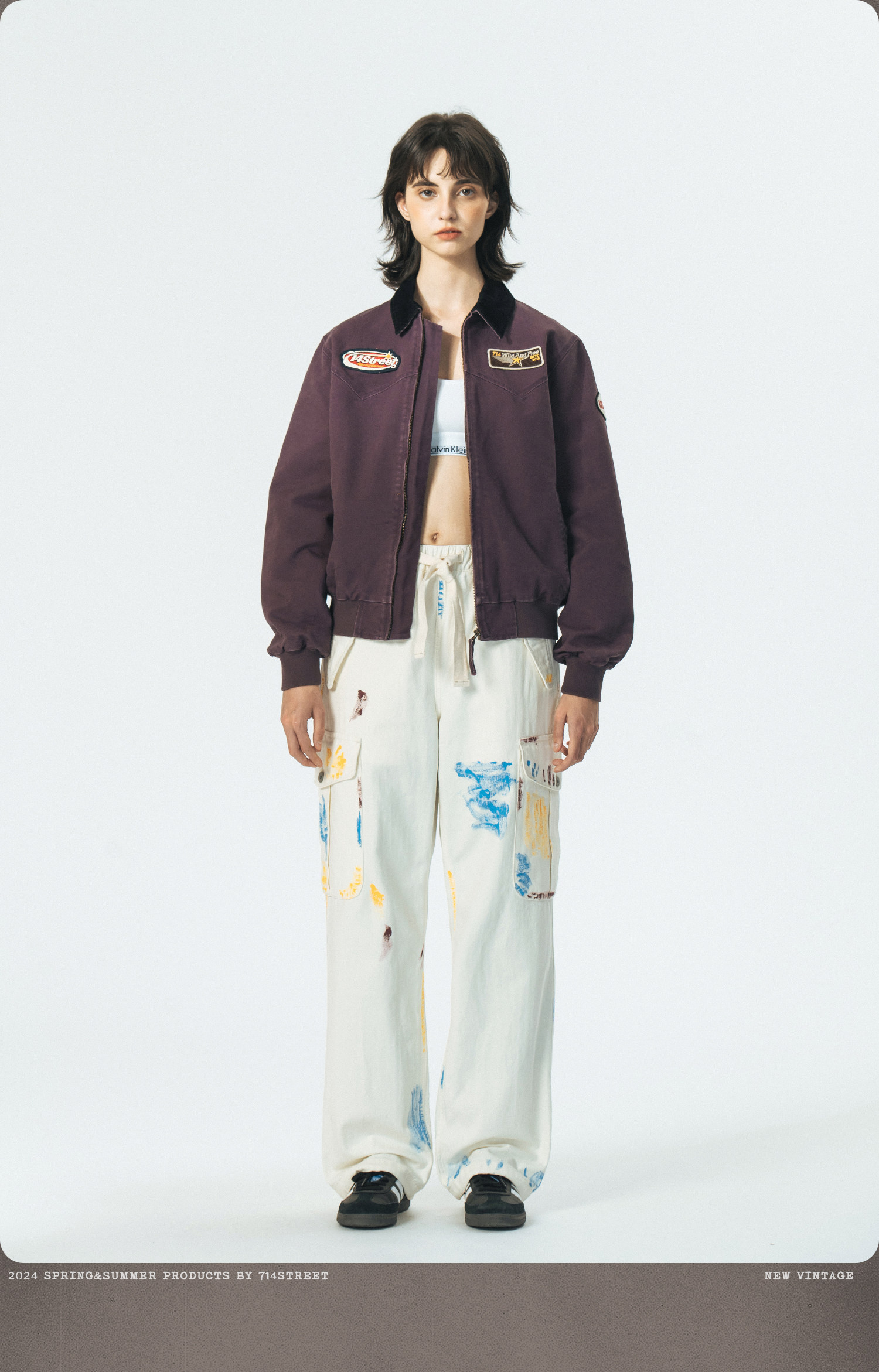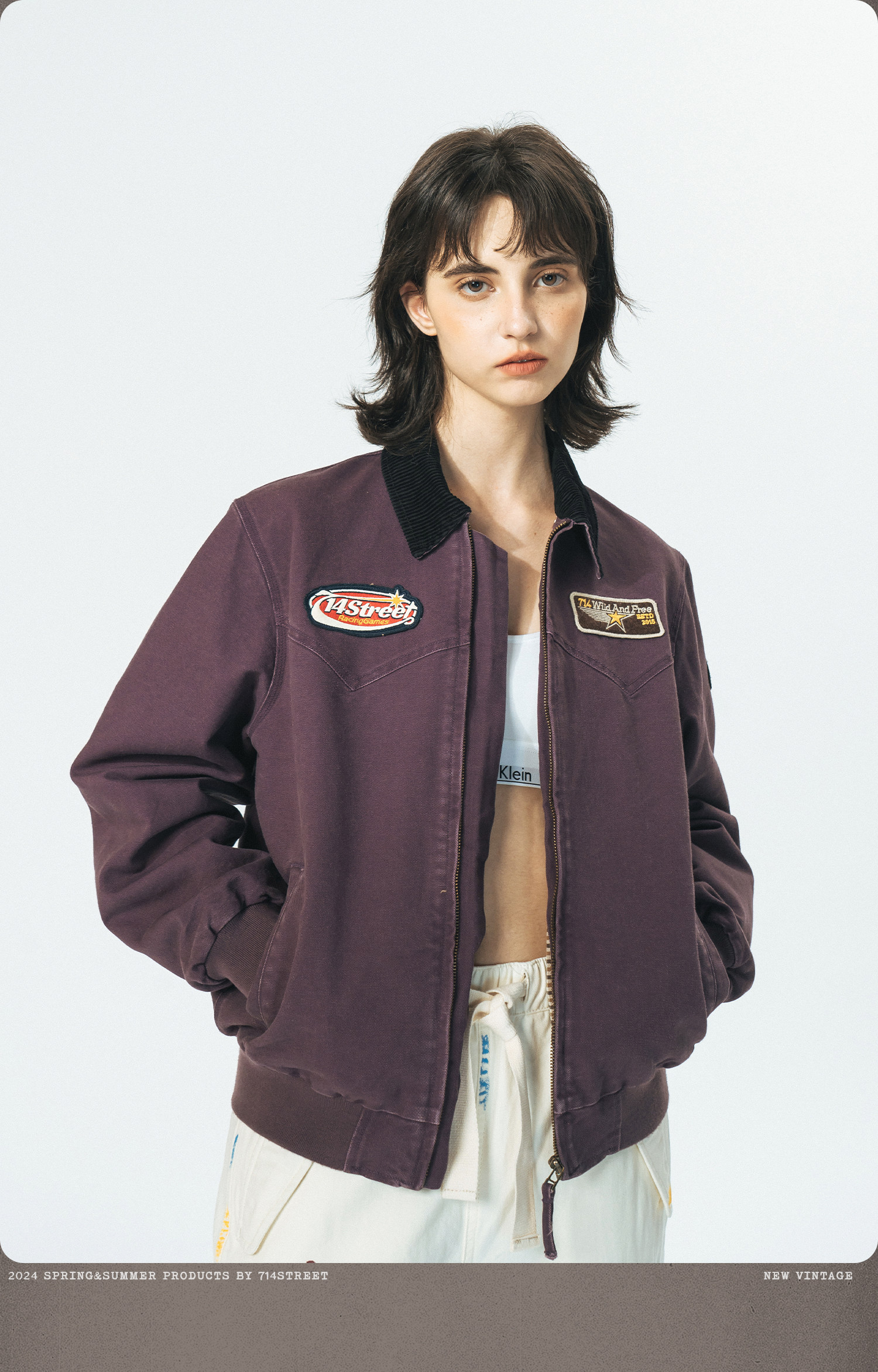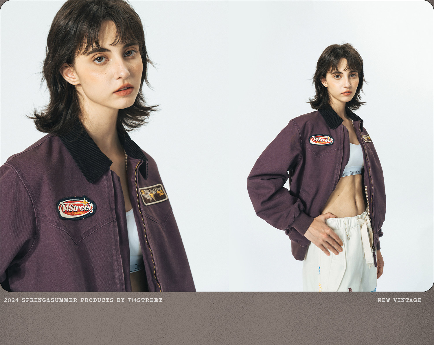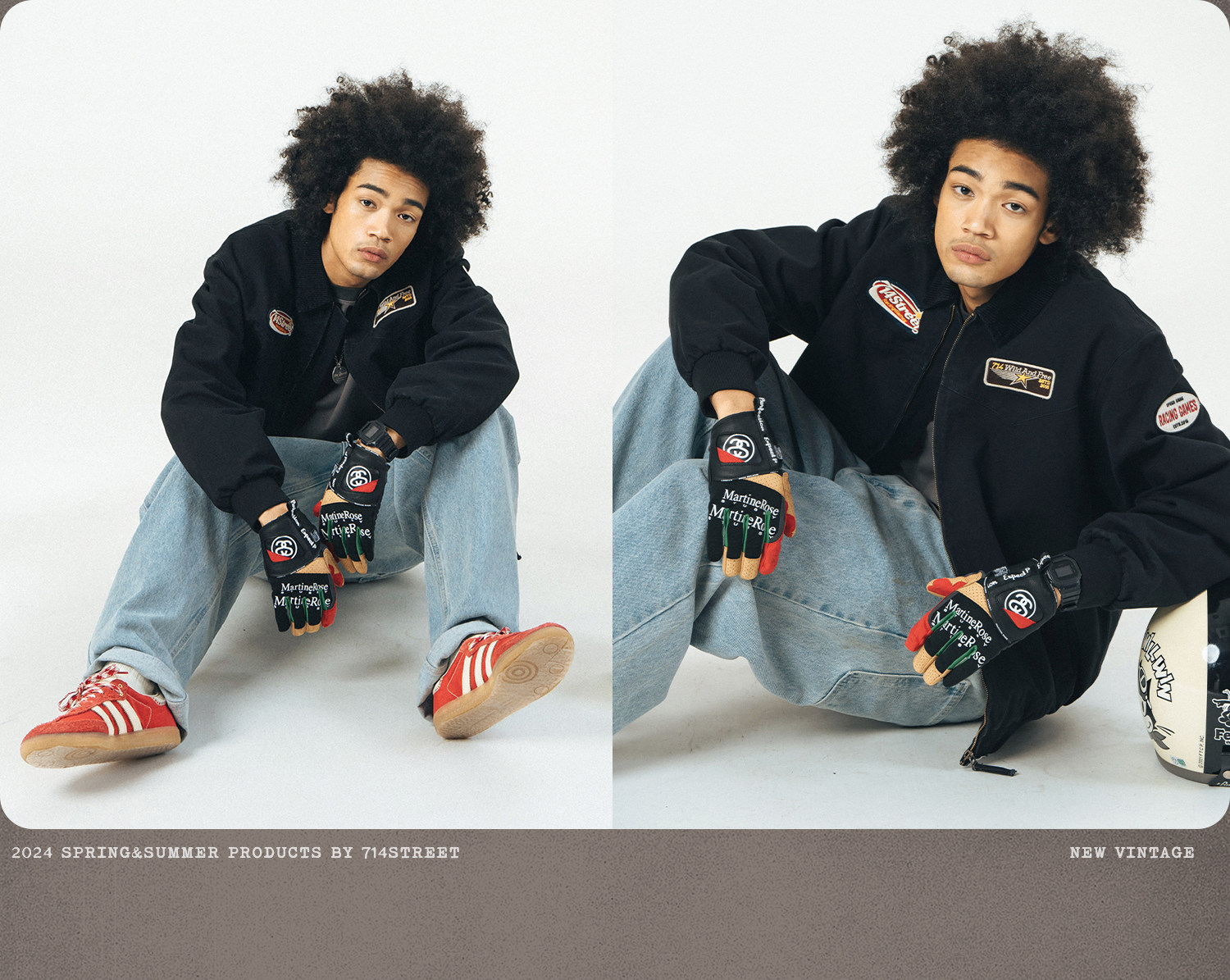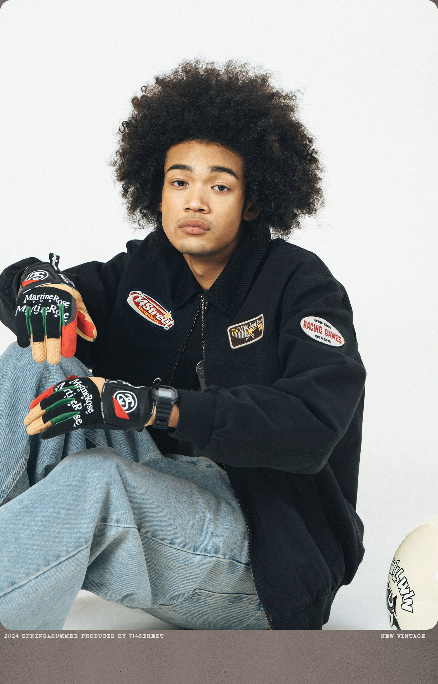 714street美式复古外套男春秋新款翻领上衣潮牌情侣装圣达菲夹克