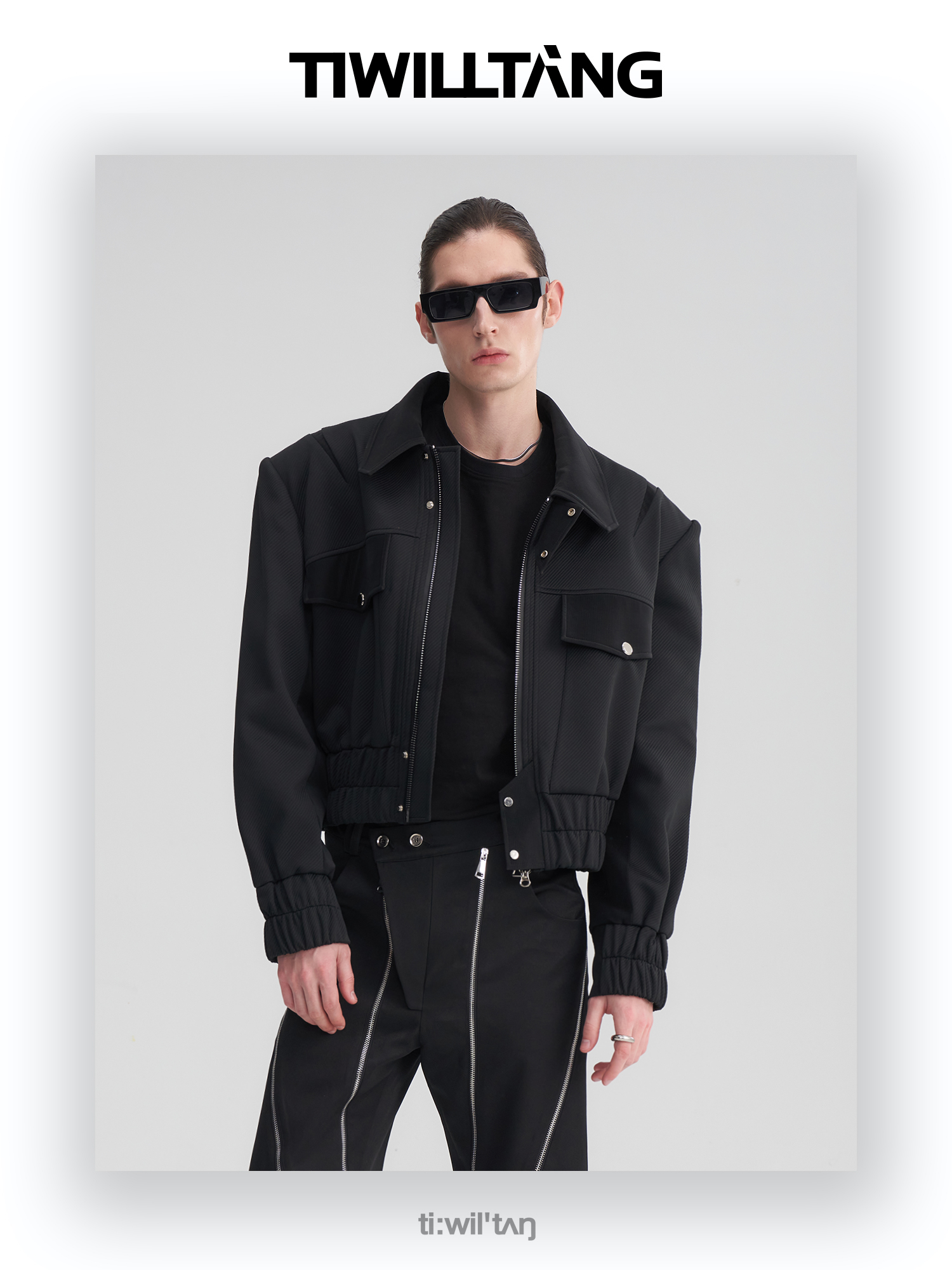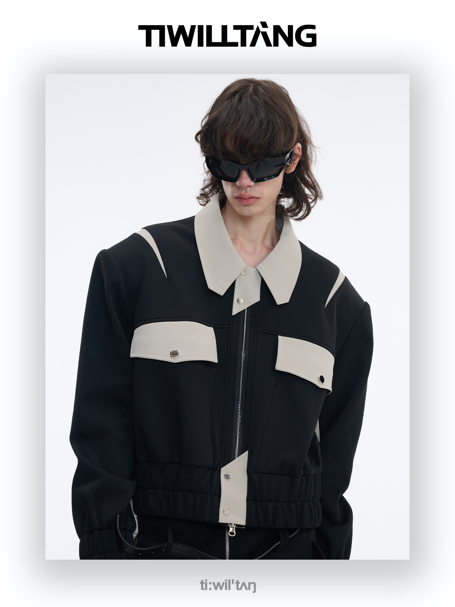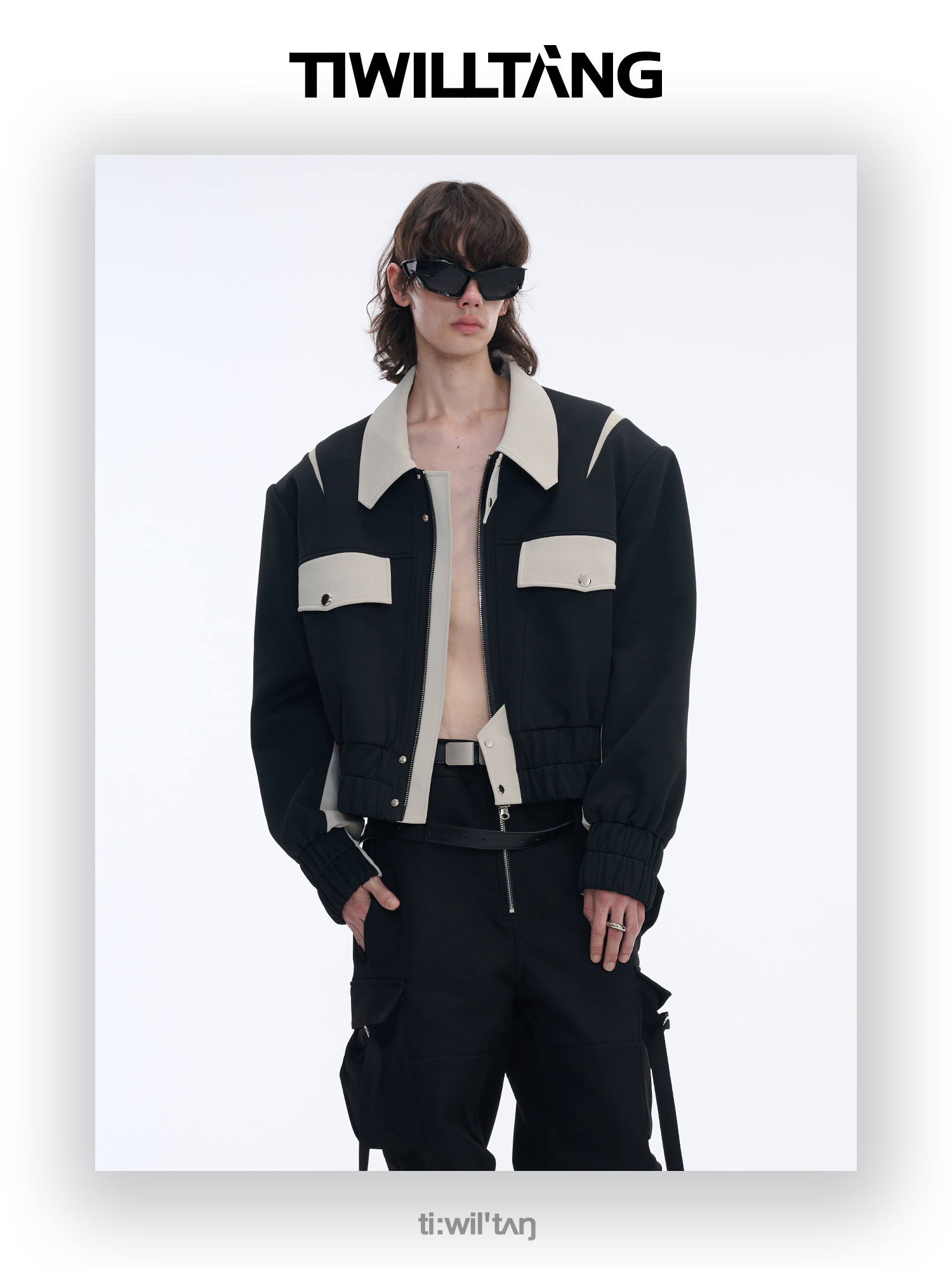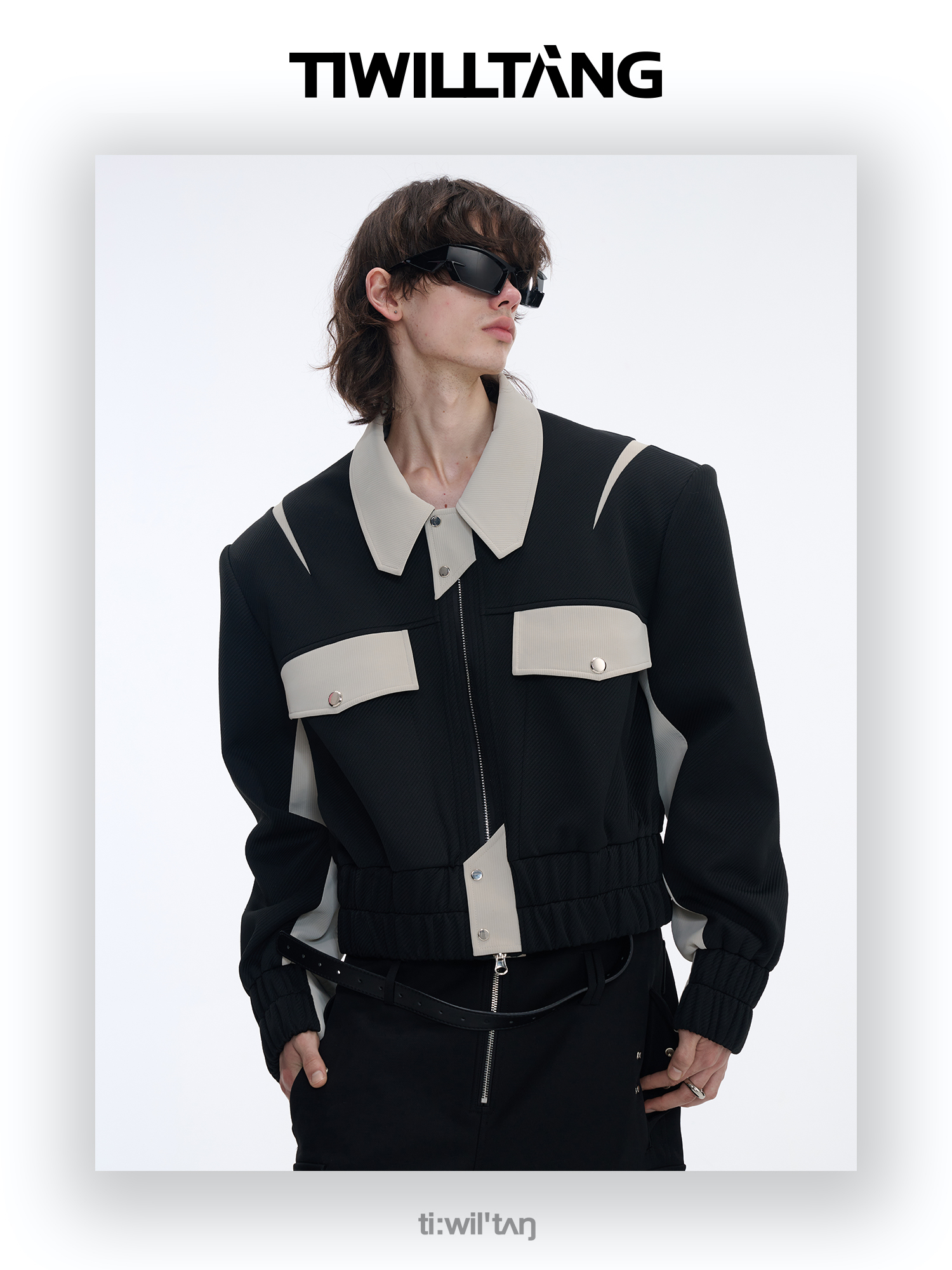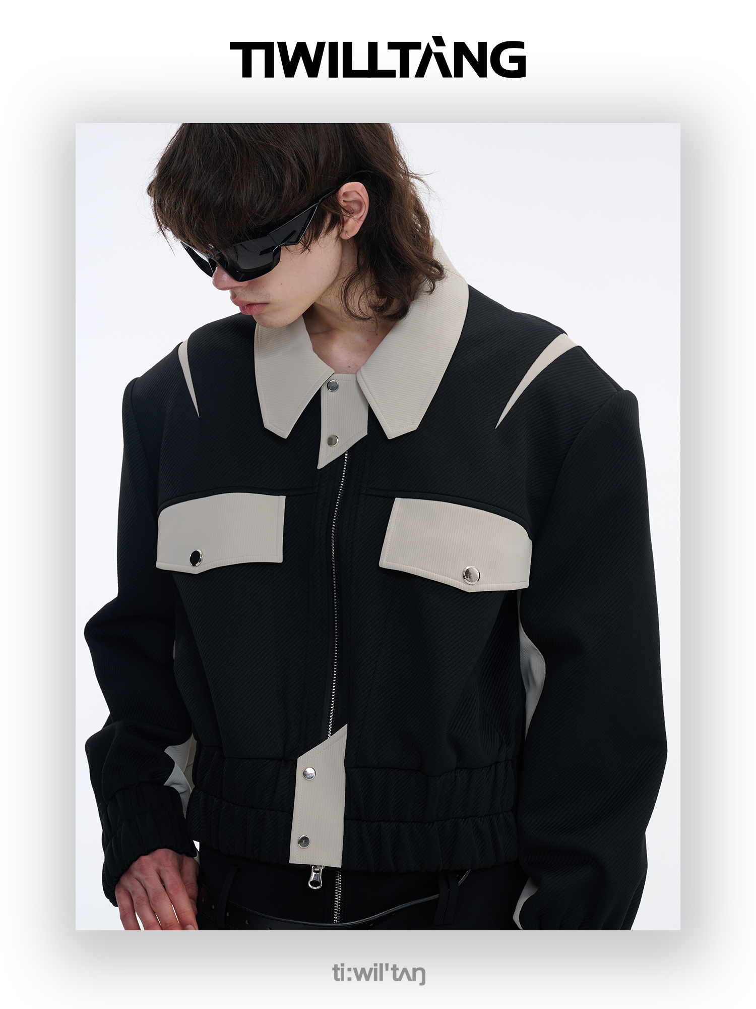 TIWILLTANG启世录“无始无极”先锋定制拼皮结构阔肩拉链夹克外套
