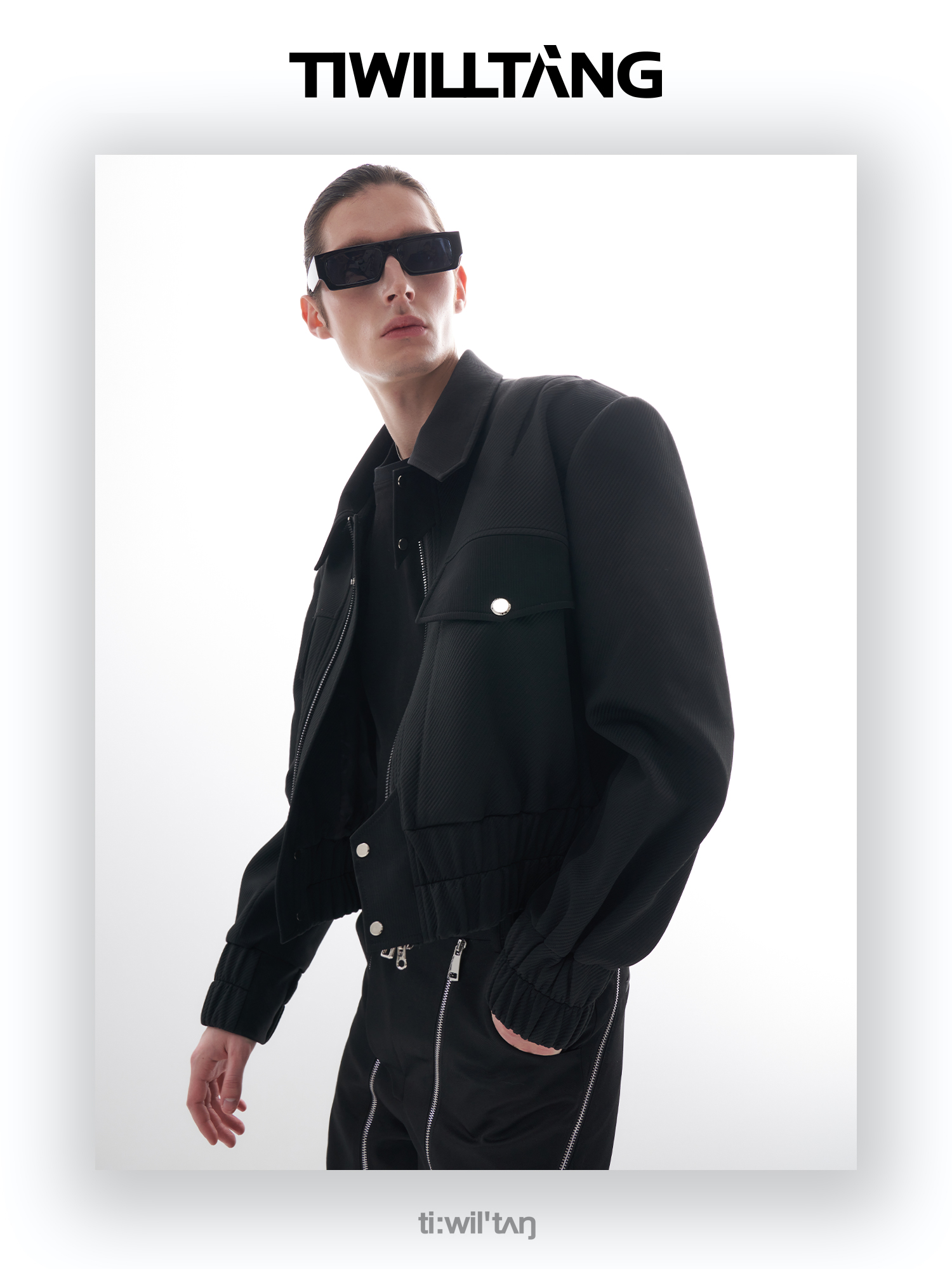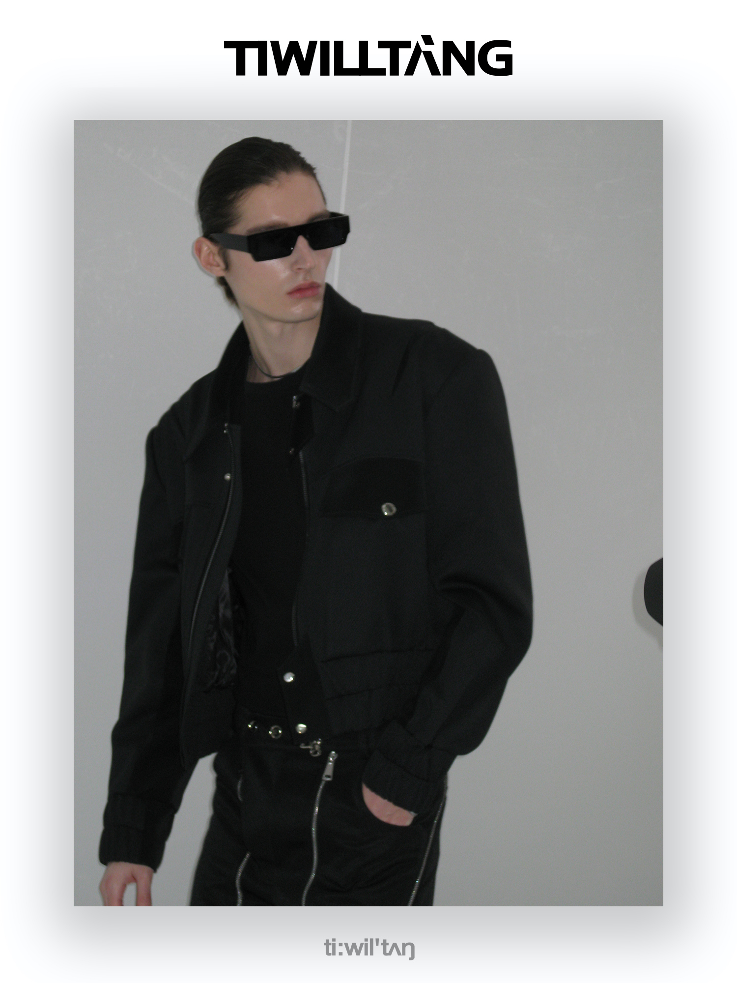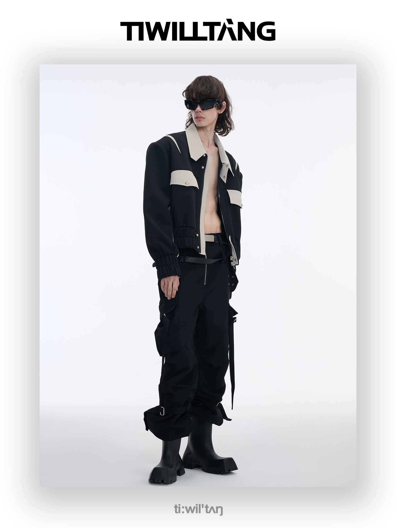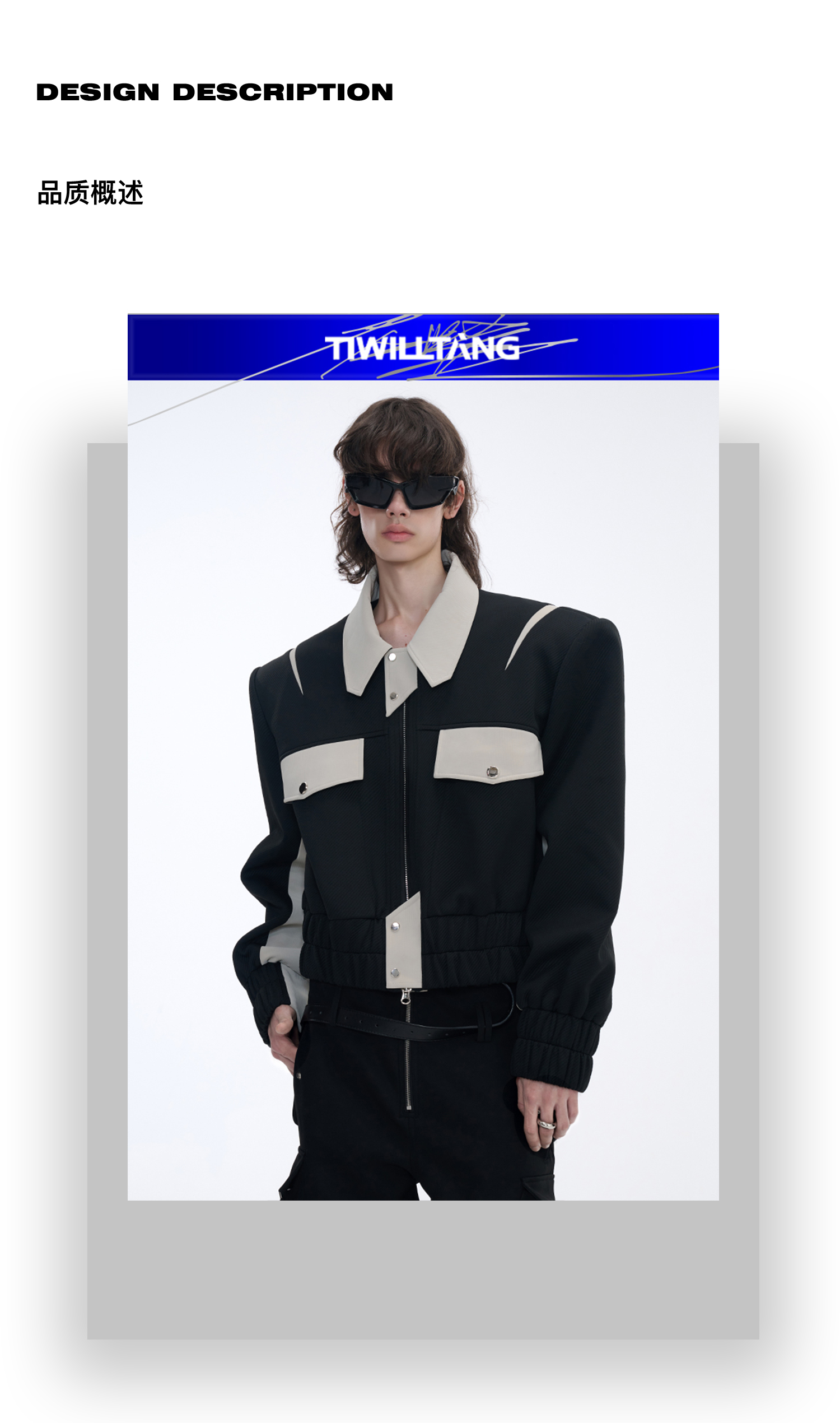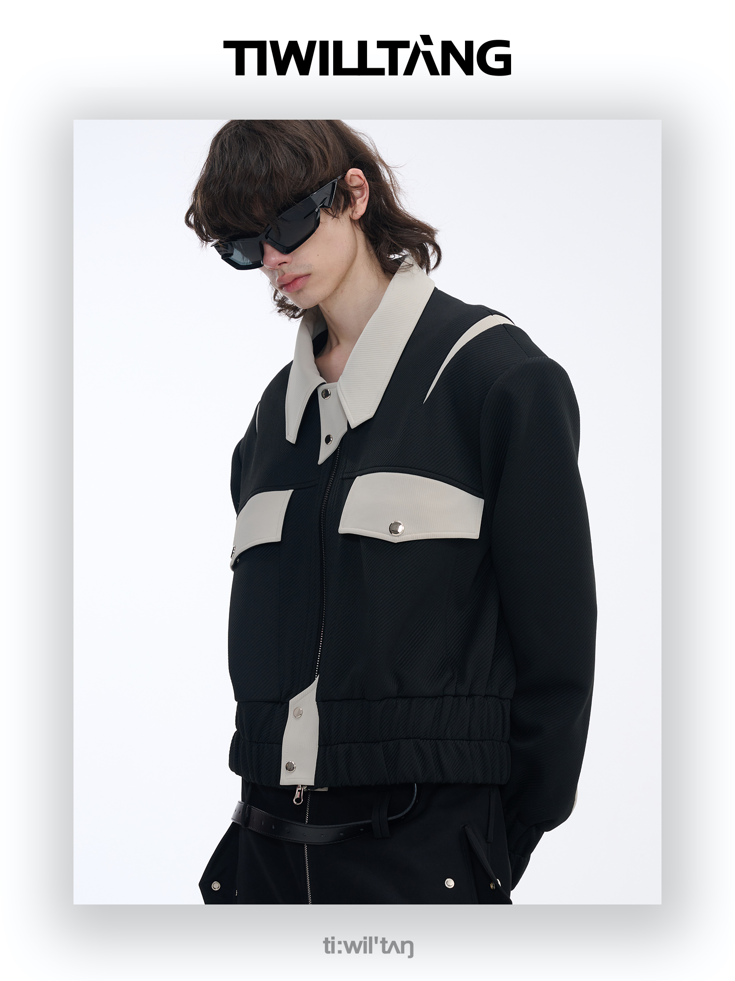 TIWILLTANG启世录“无始无极”先锋定制拼皮结构阔肩拉链夹克外套