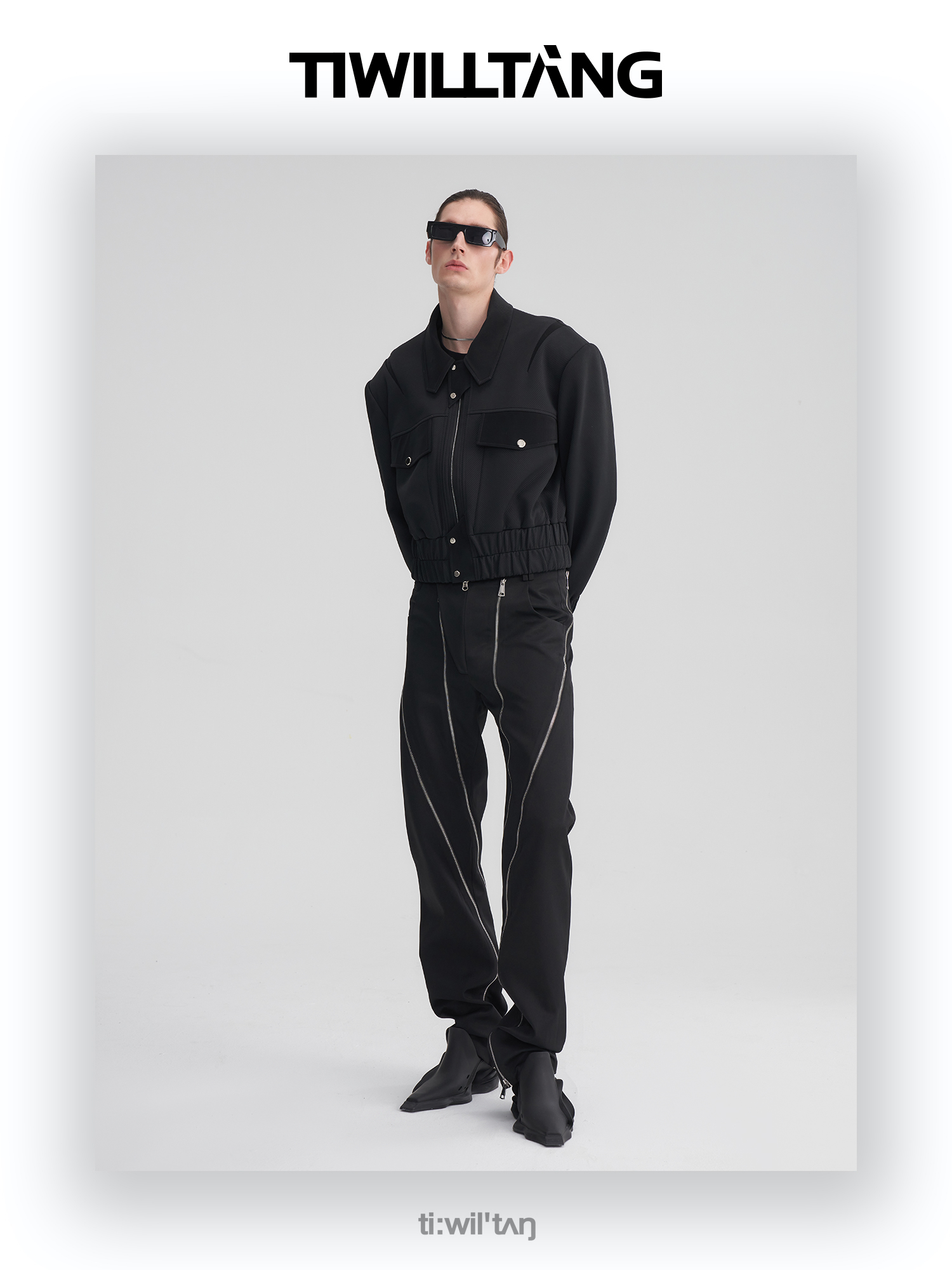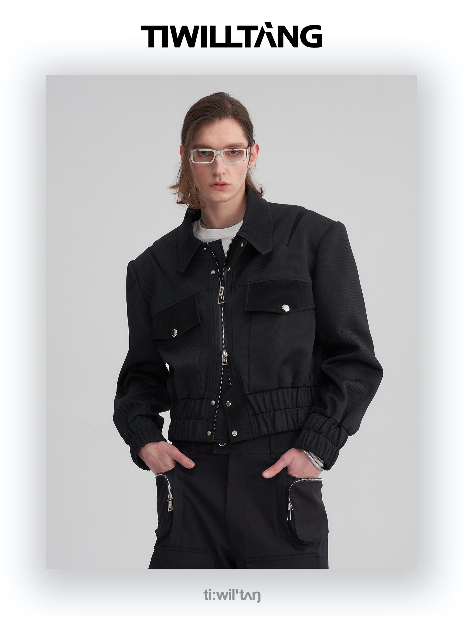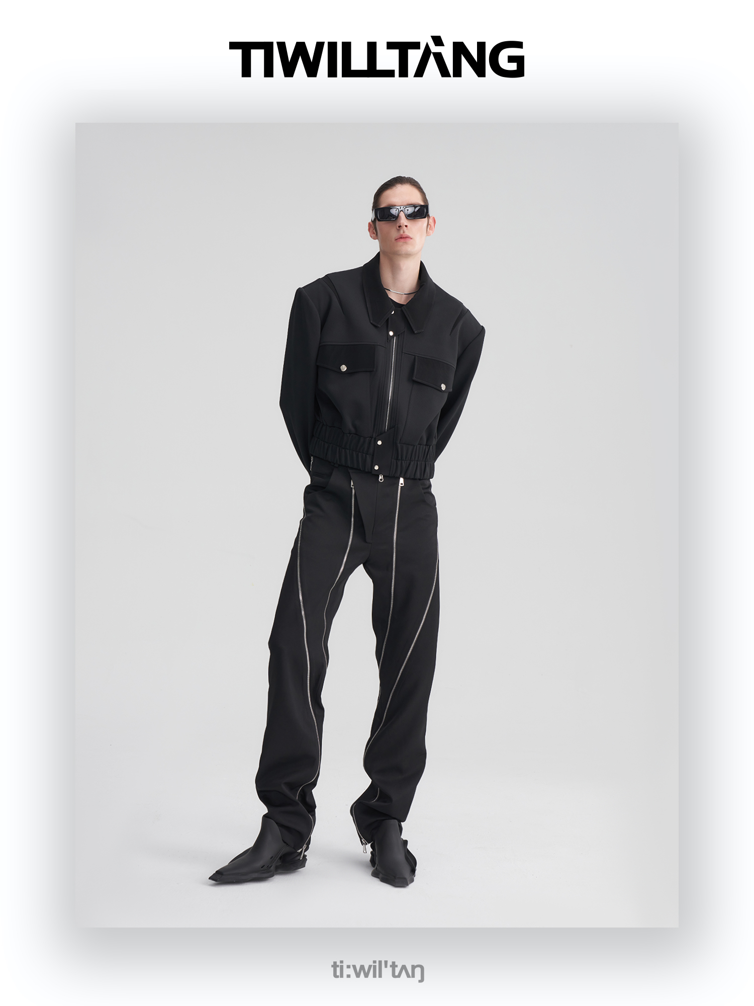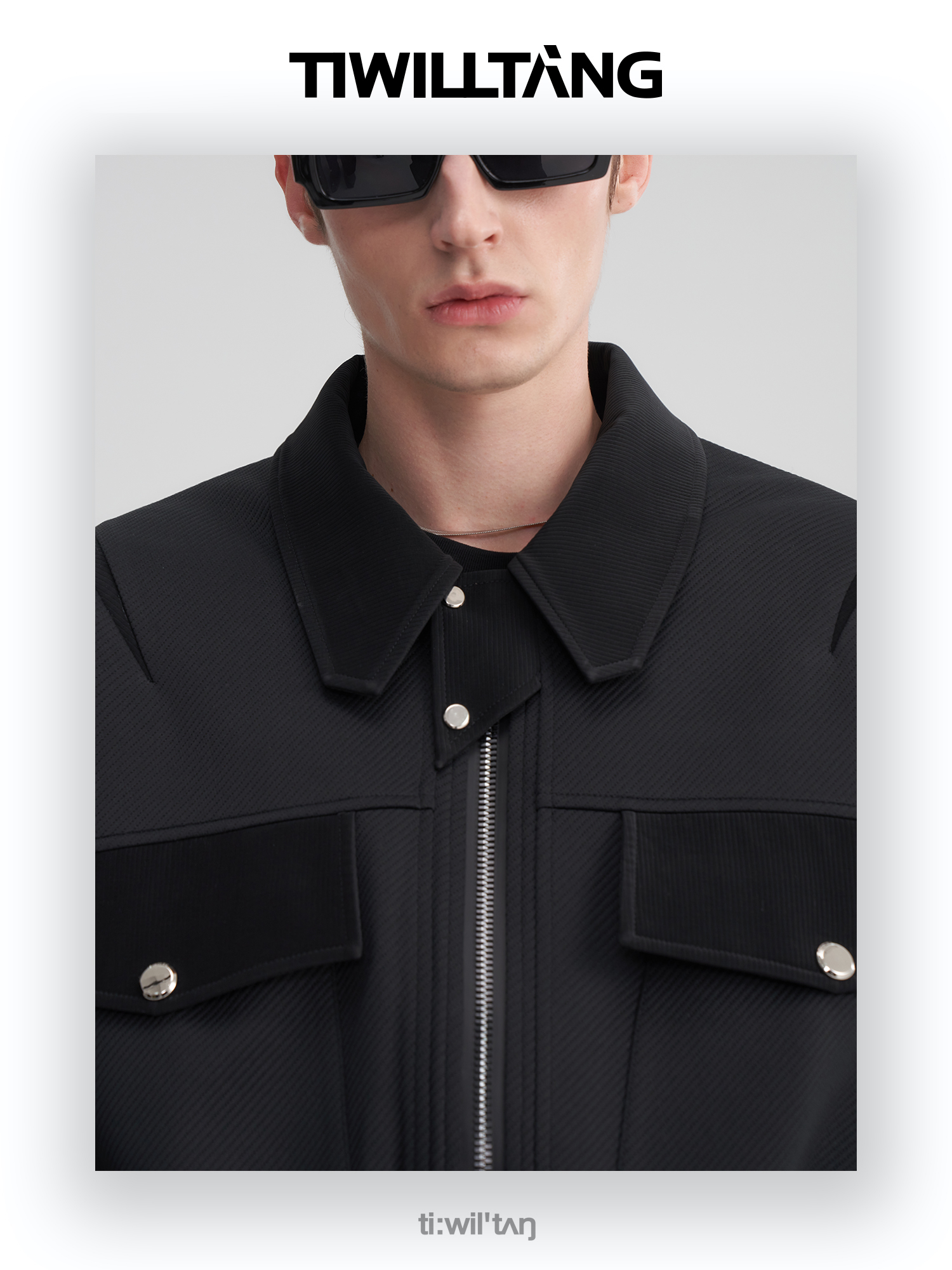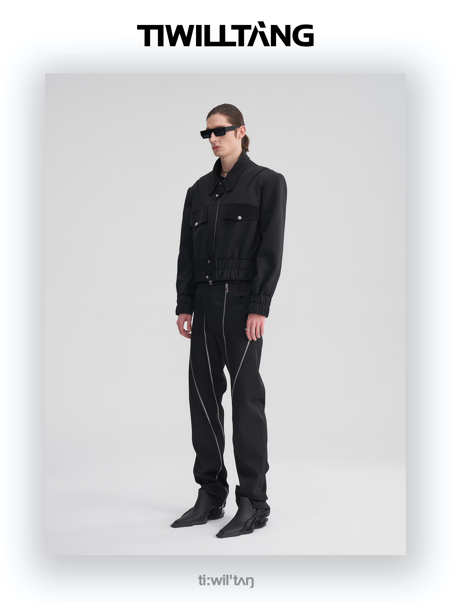 TIWILLTANG启世录“无始无极”先锋定制拼皮结构阔肩拉链夹克外套