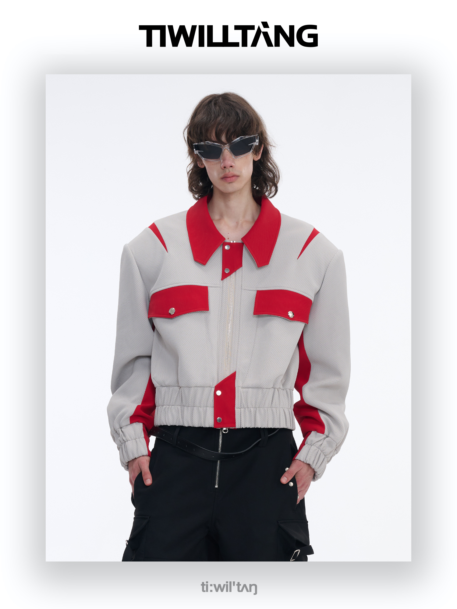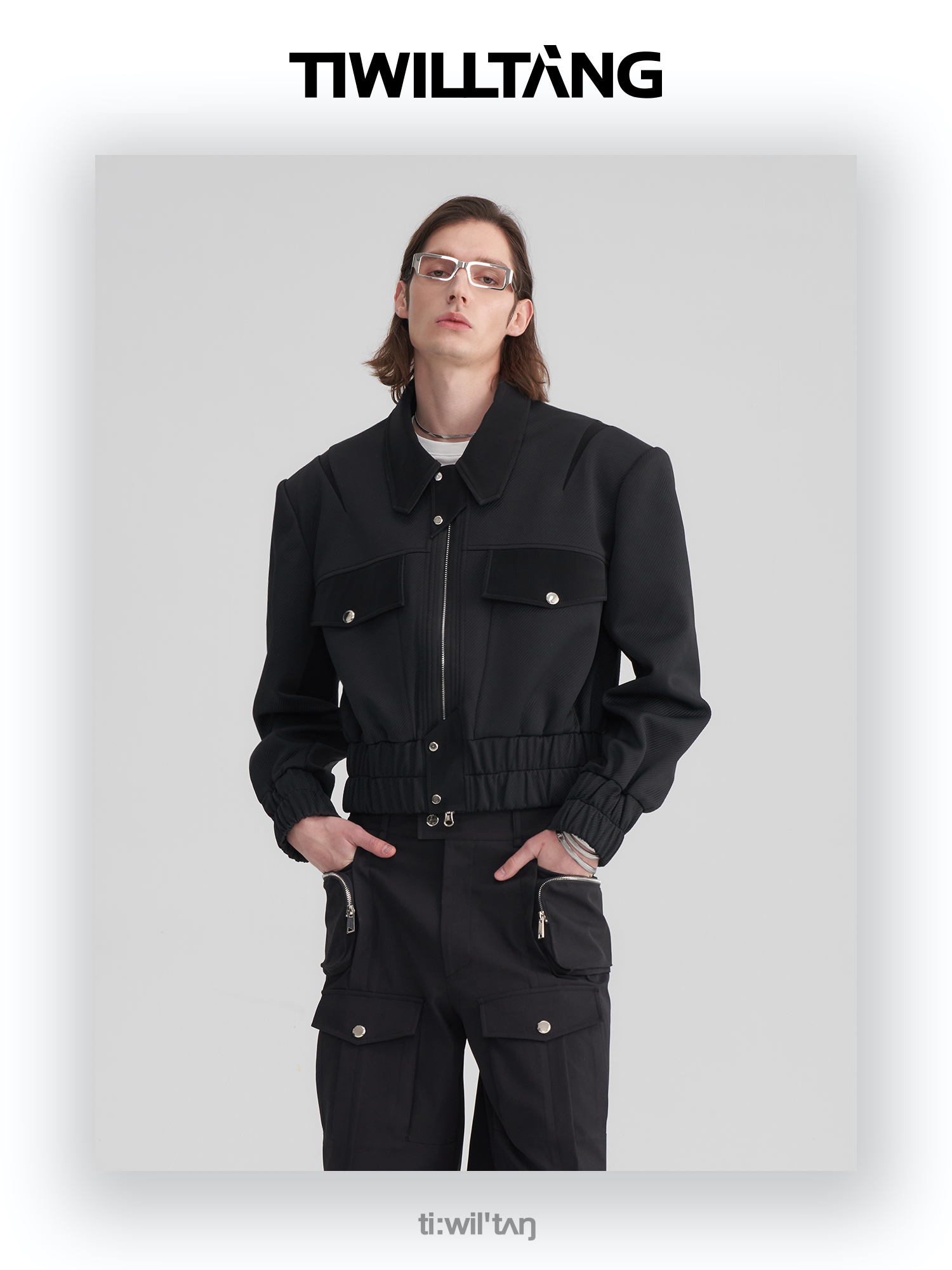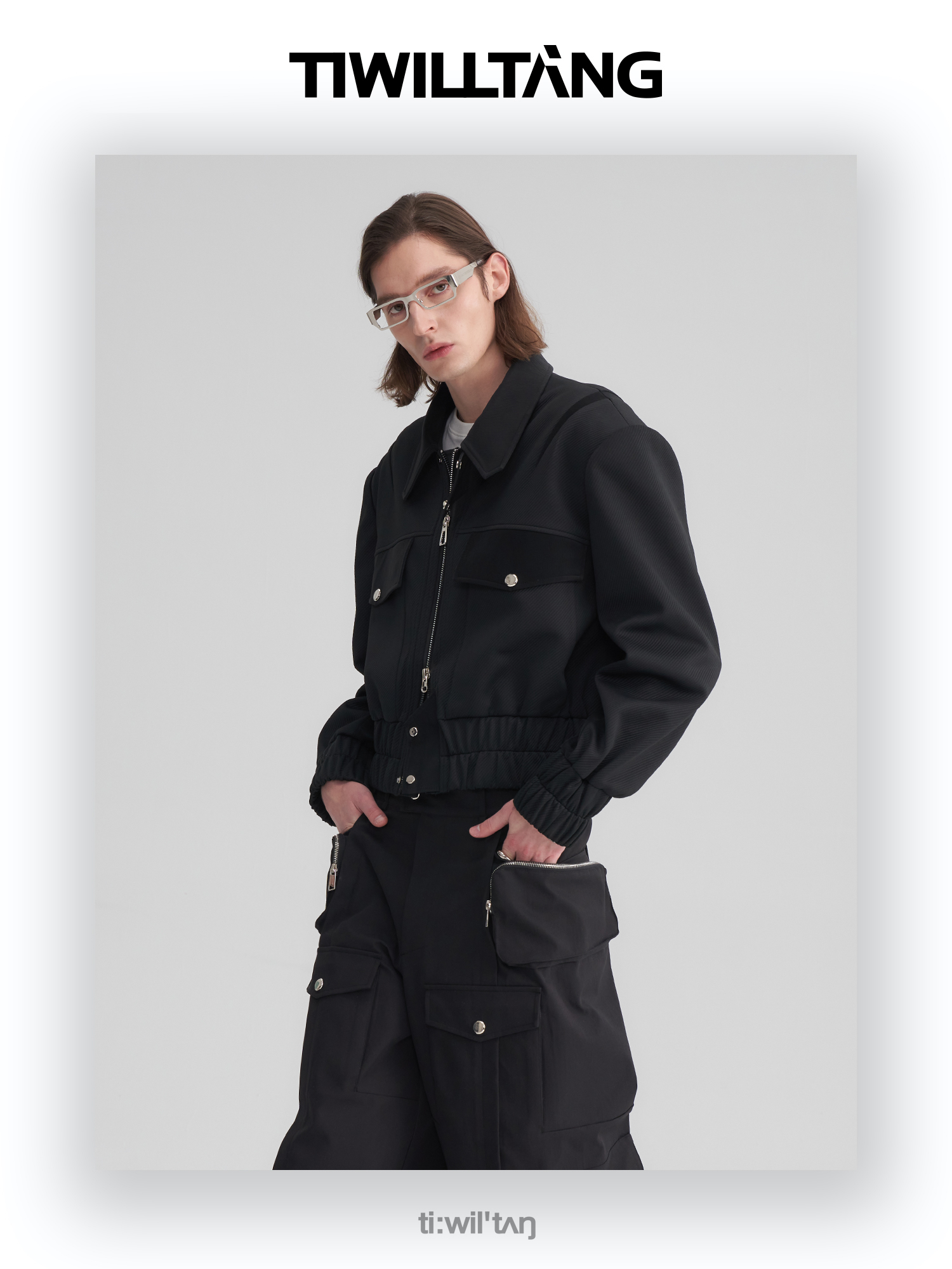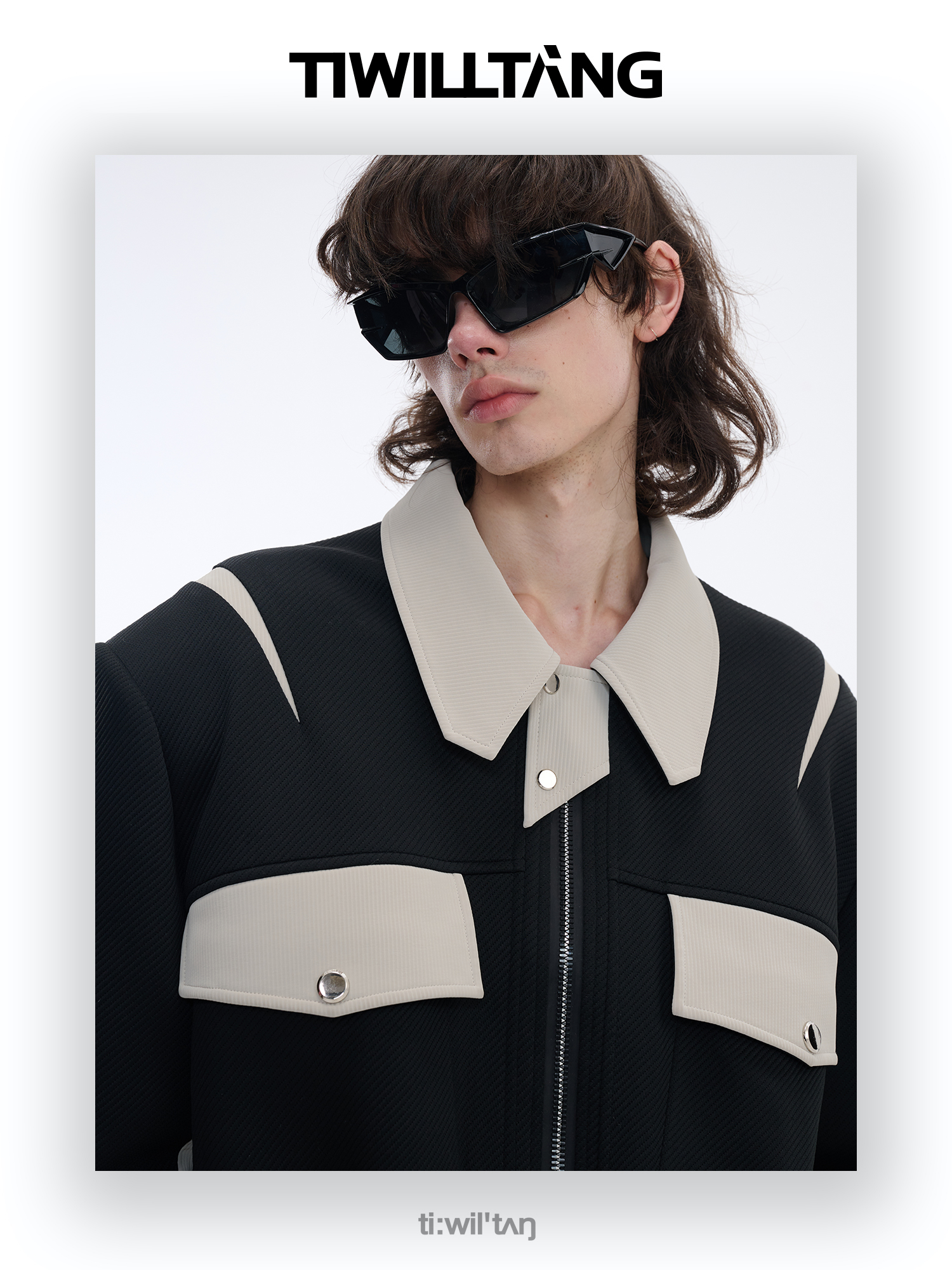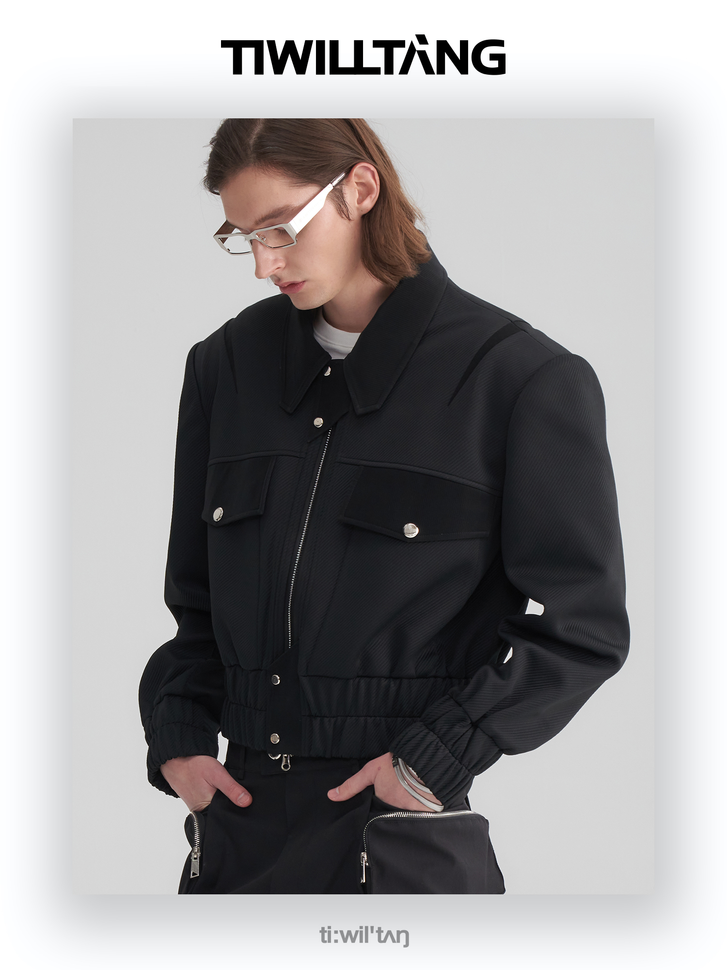 TIWILLTANG启世录“无始无极”先锋定制拼皮结构阔肩拉链夹克外套