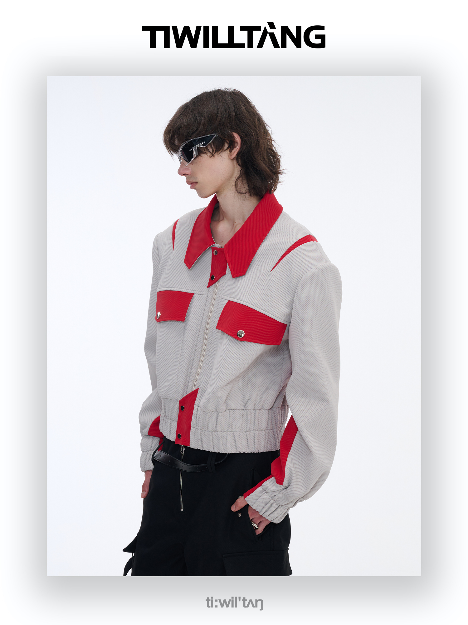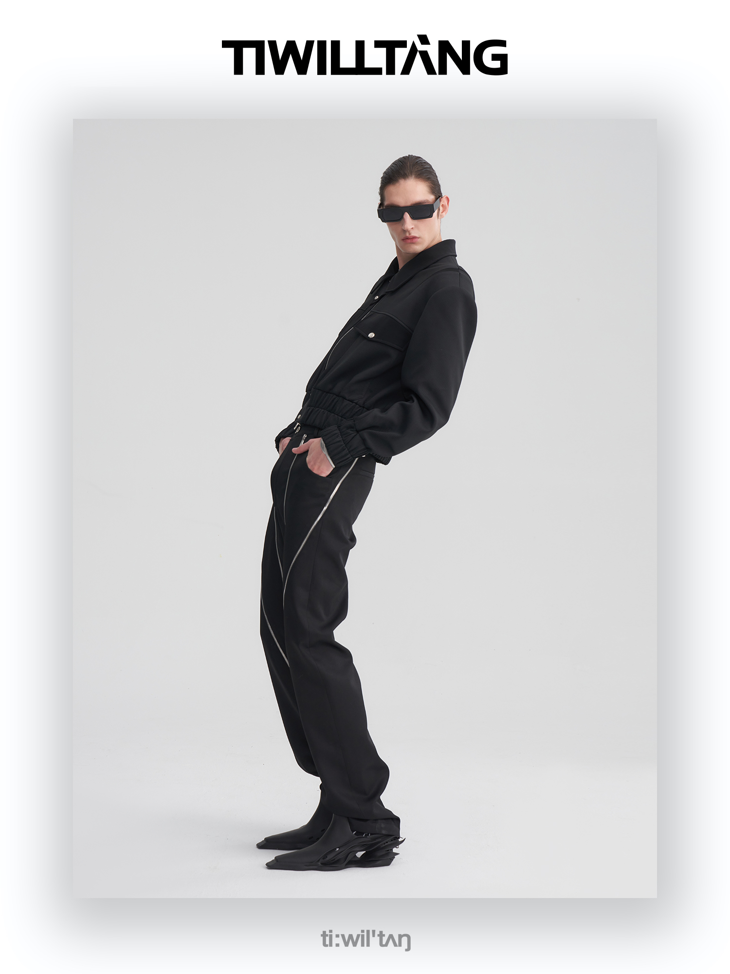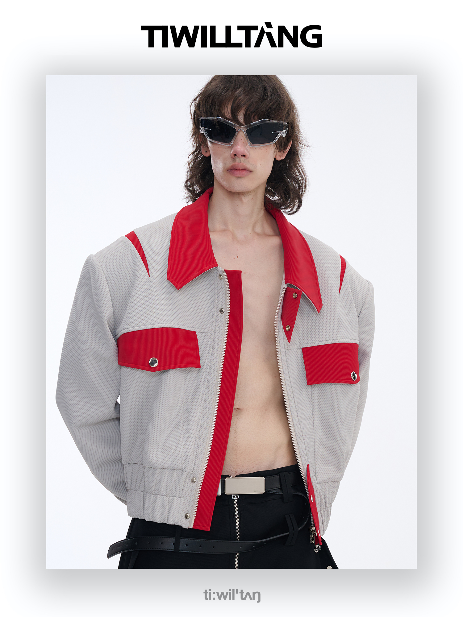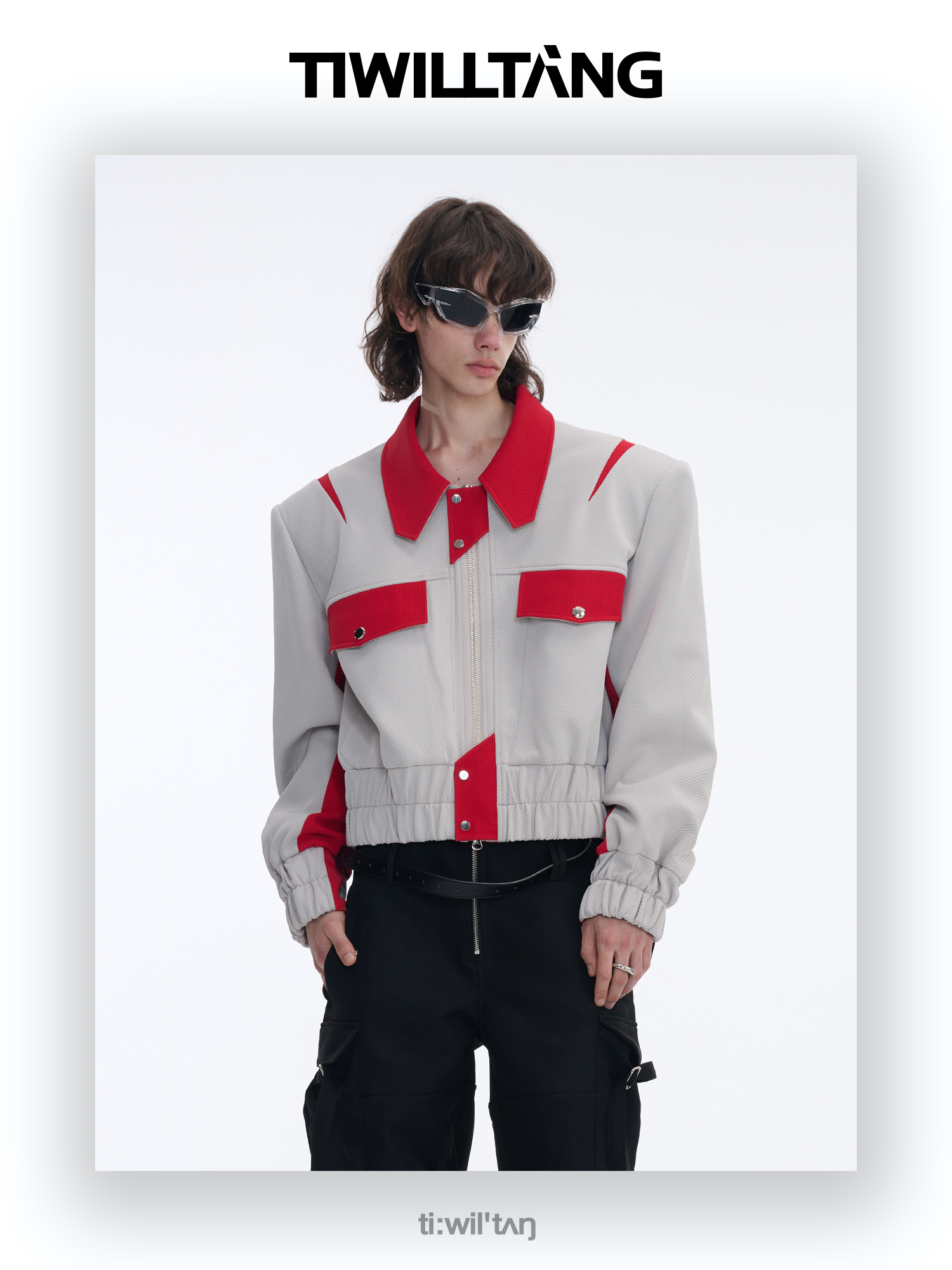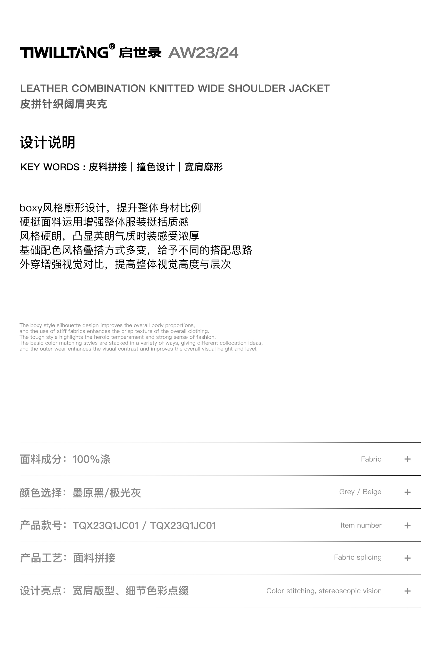 TIWILLTANG启世录“无始无极”先锋定制拼皮结构阔肩拉链夹克外套