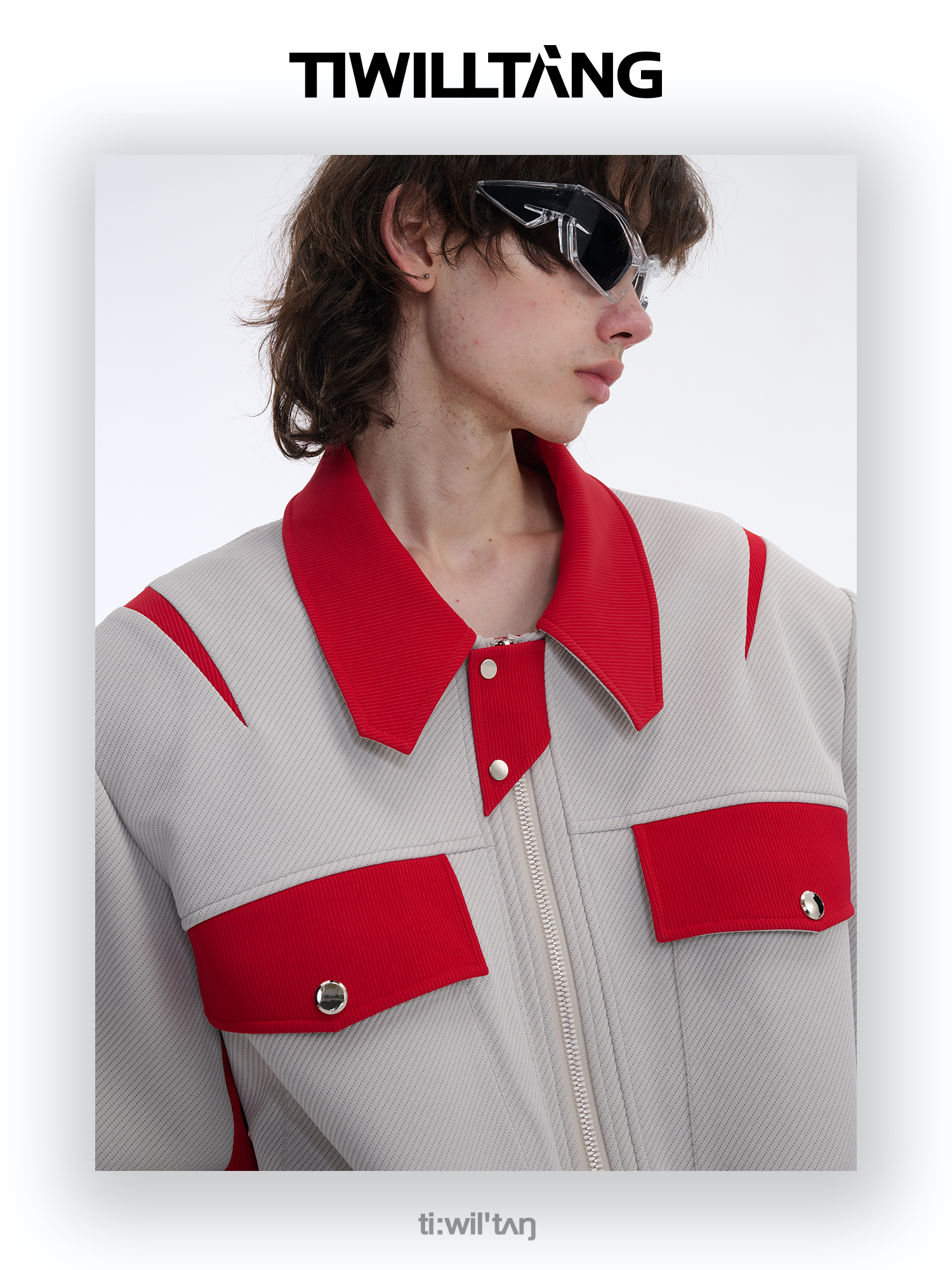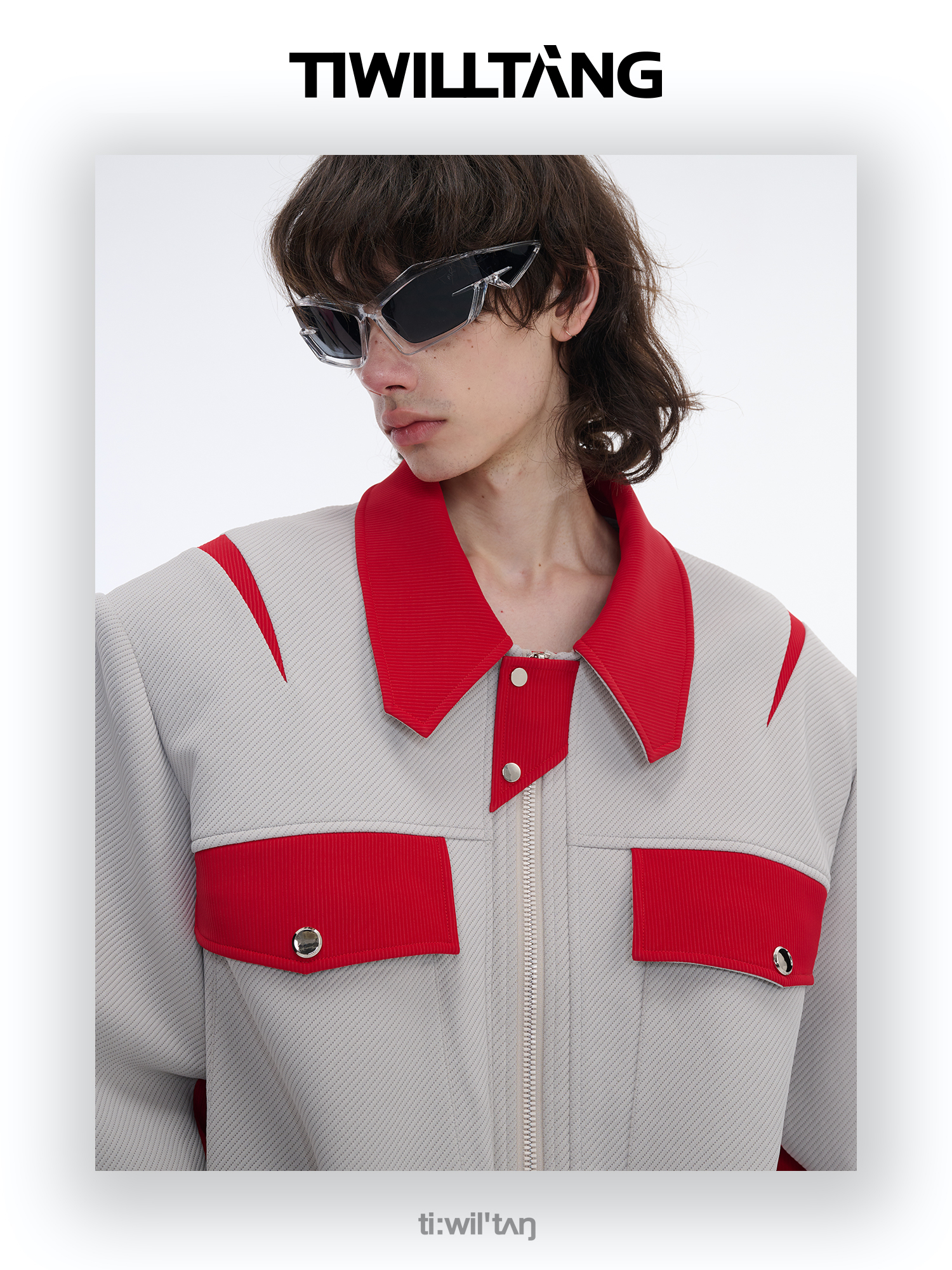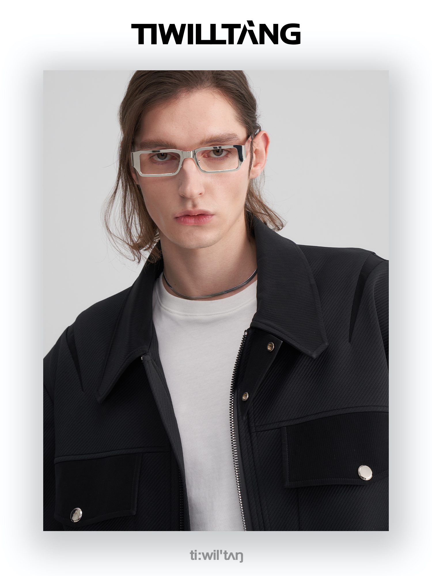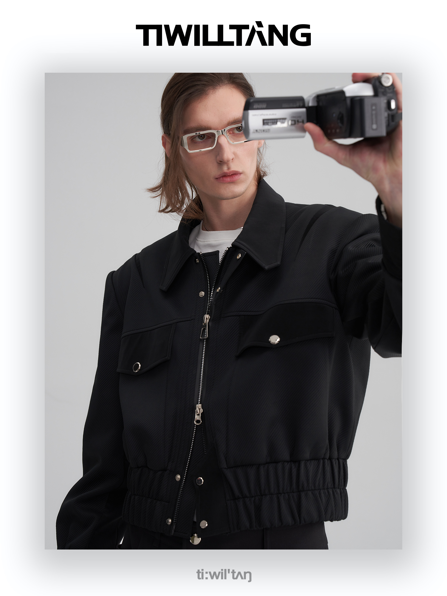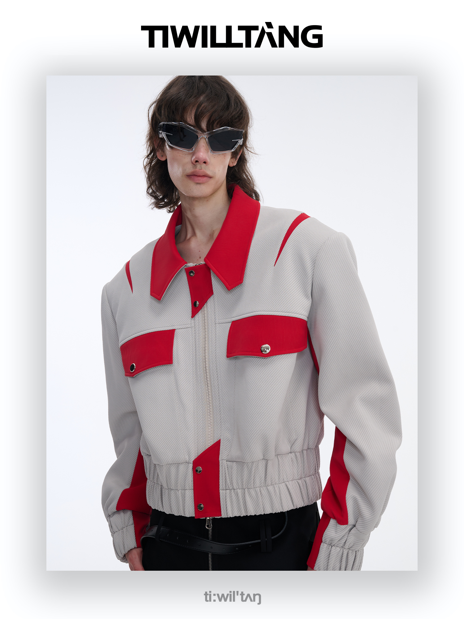 TIWILLTANG启世录“无始无极”先锋定制拼皮结构阔肩拉链夹克外套