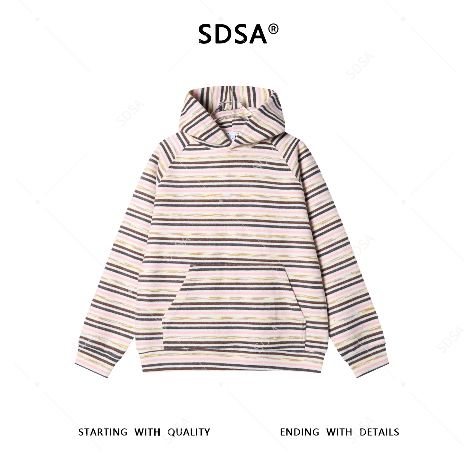 SDSA男士秋冬新款痞帅男装简约休闲植绒撞色条纹连帽卫衣百搭宽松