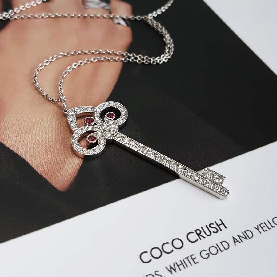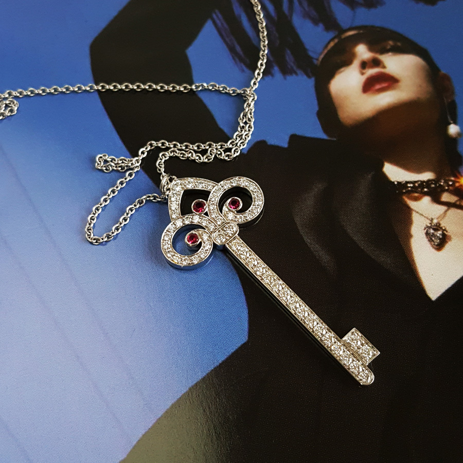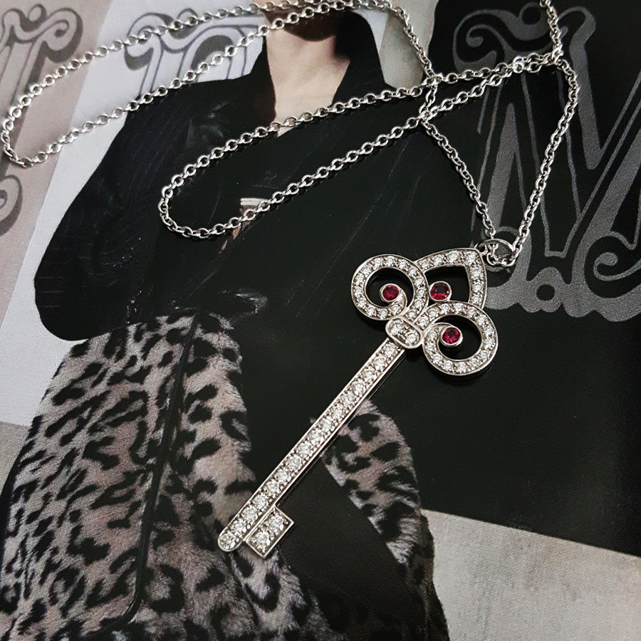 款式 | 大号铂金满钻镶红宝石鸢尾花Fleur de Lis钥匙项链 |