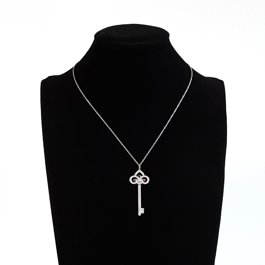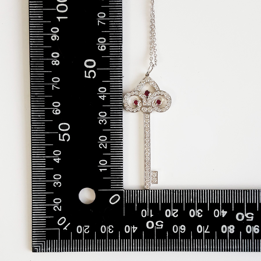 【95新】Tiffany & Co.蒂芙尼大号铂金满钻镶红宝石鸢尾花Fleur de Lis钥匙项链链长约46cm、吊坠长约4.85cm女士261025TJ05