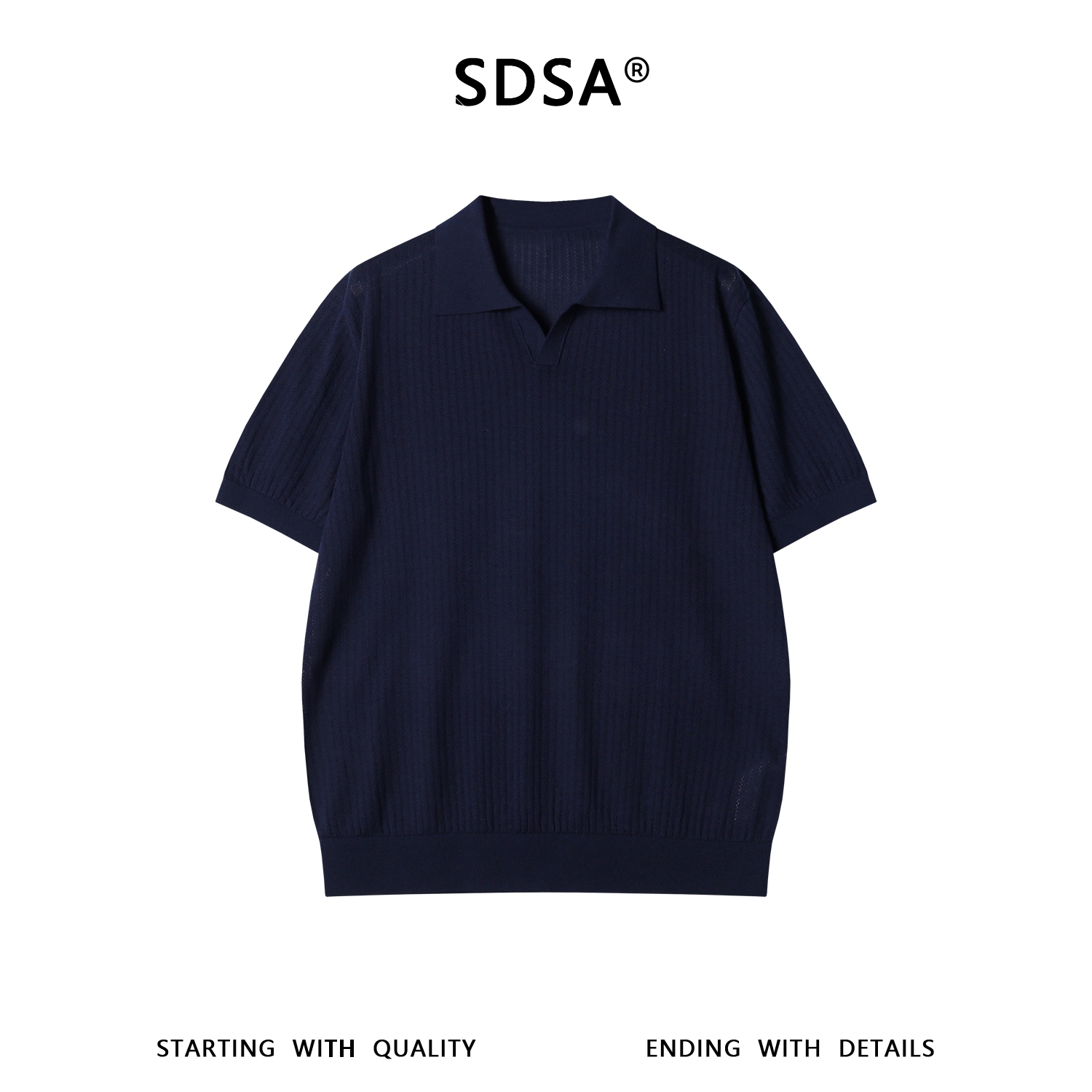 SDSA男装2026新款高贵轻奢简约纯色肌理海鸥领短袖T恤百搭休闲