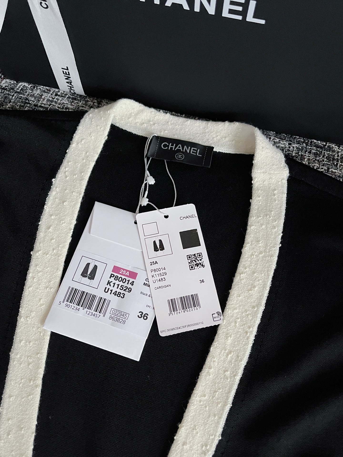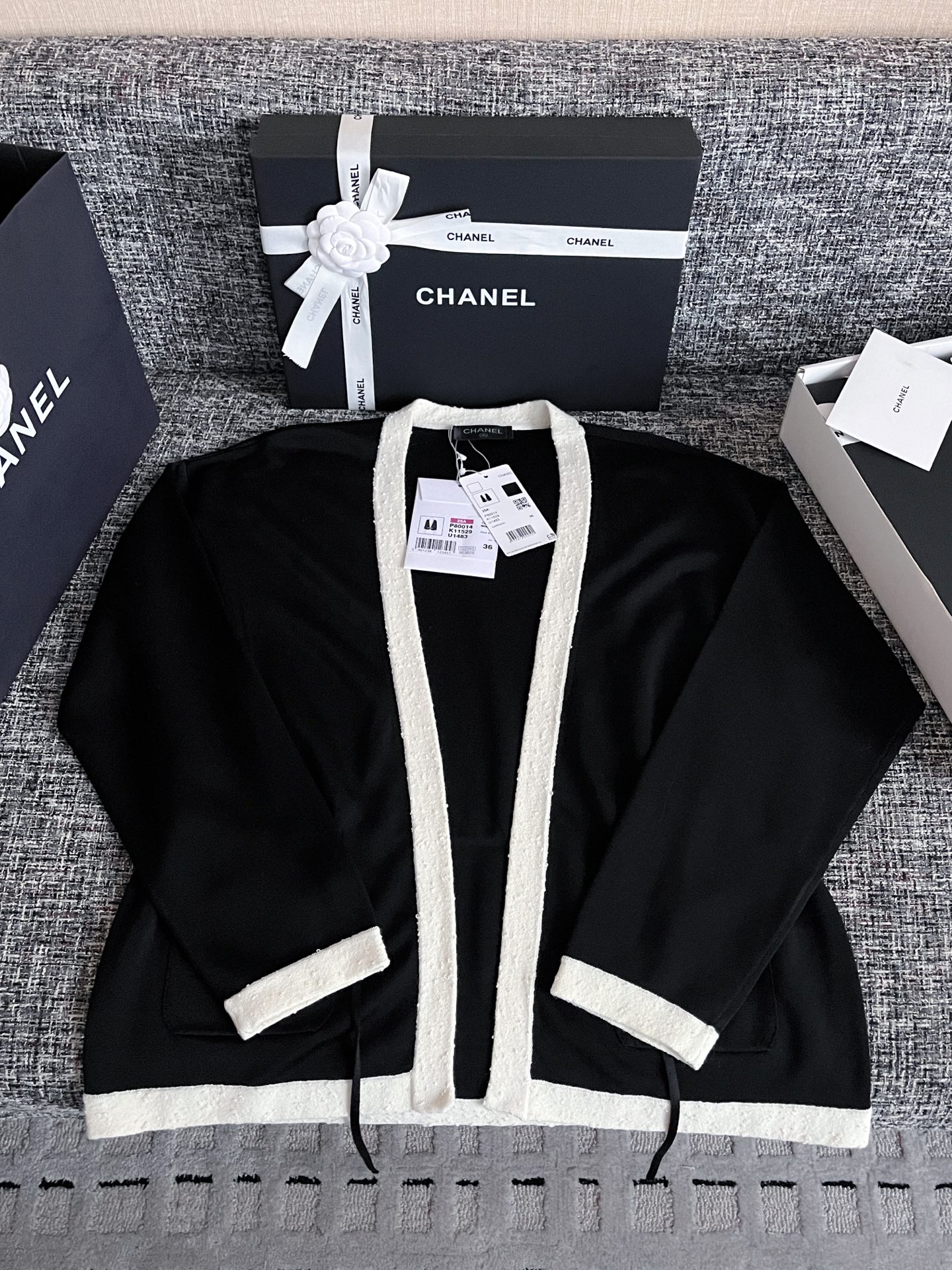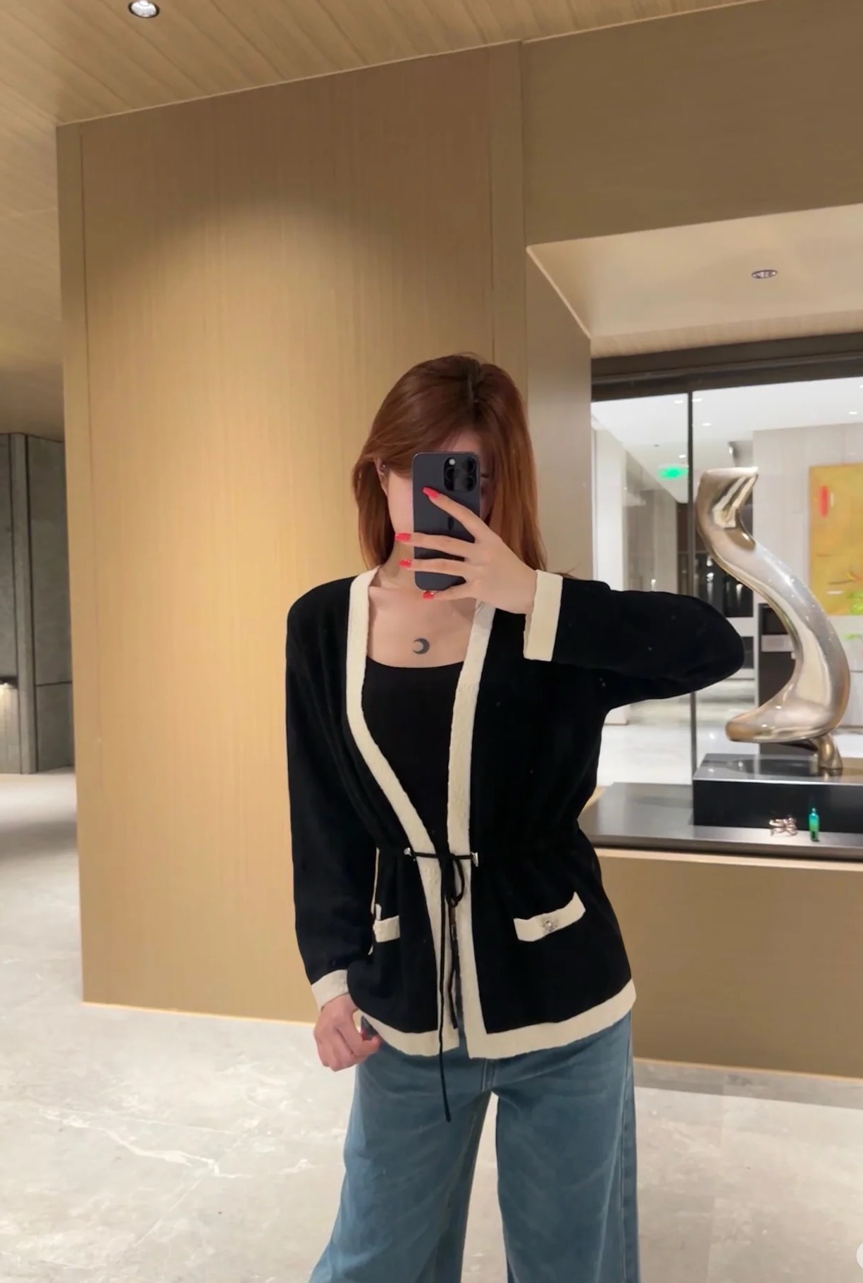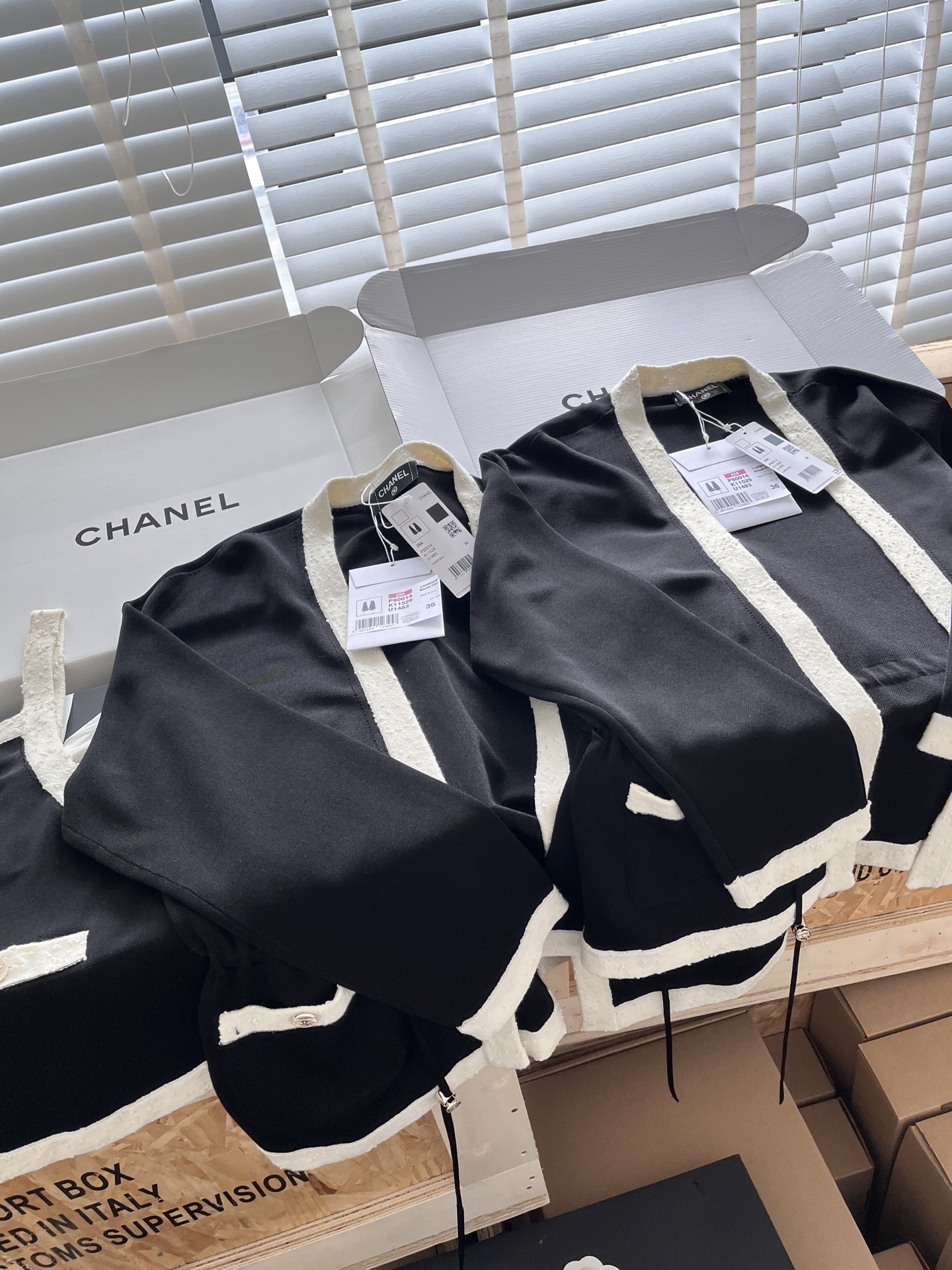 CHANEL 香奈儿25早秋新款手工坊系列拼色绑带开衫🐮46500购买Zp拆解打造,订织订染秘鲁特种面料🐮真正用到原版订织纱线做到对版出货💪工艺放大看细节除还原度接近98以上 做工也无敌了🔥真正做到1:1还原 直接闭着眼购买👀码数:S M L