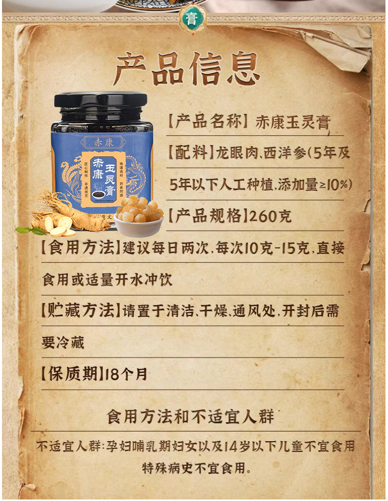 赤康玉灵膏蒸桂圆蒸桂膏赤康家西洋参玉灵膏赤康官方旗舰店正品