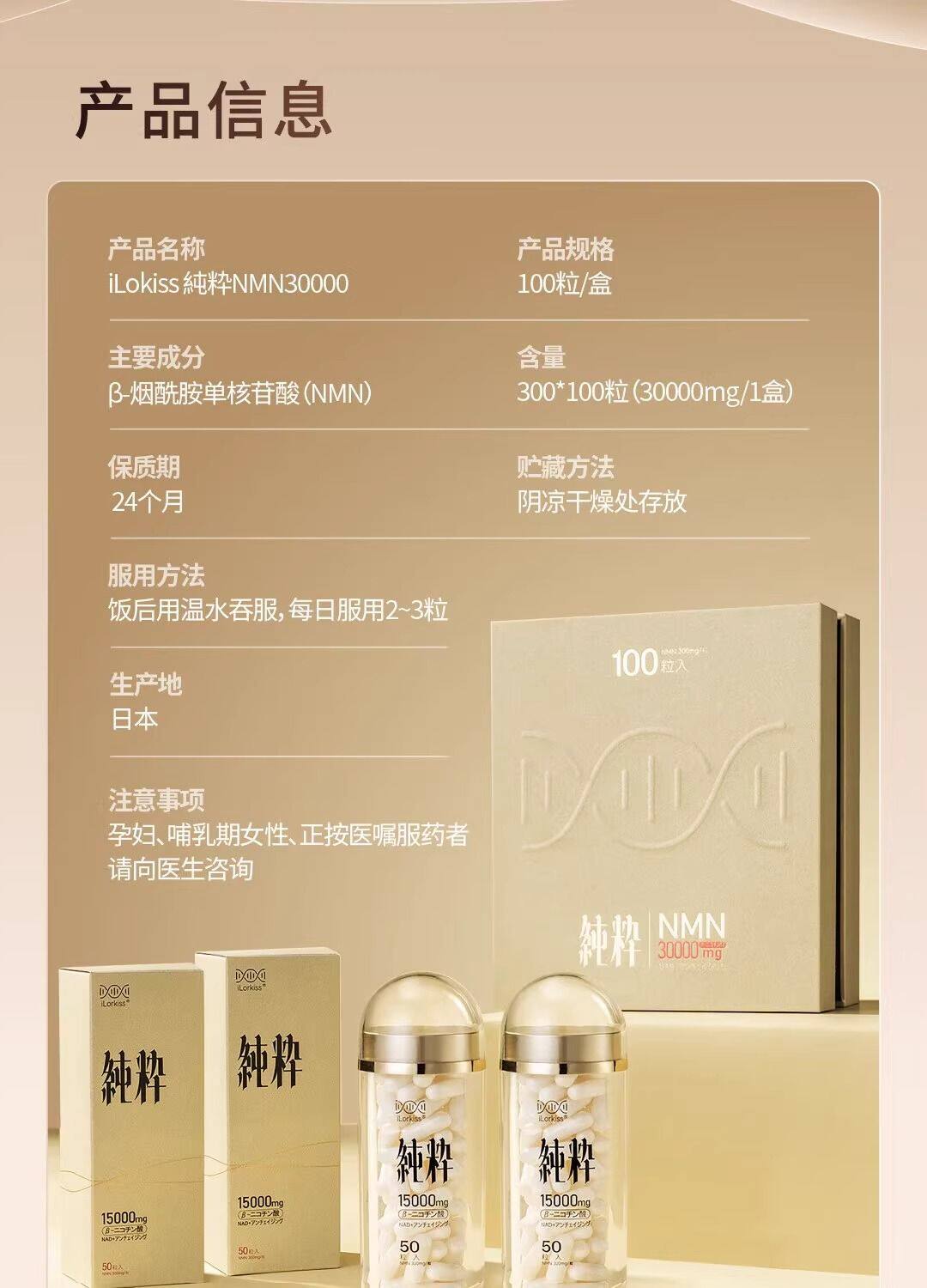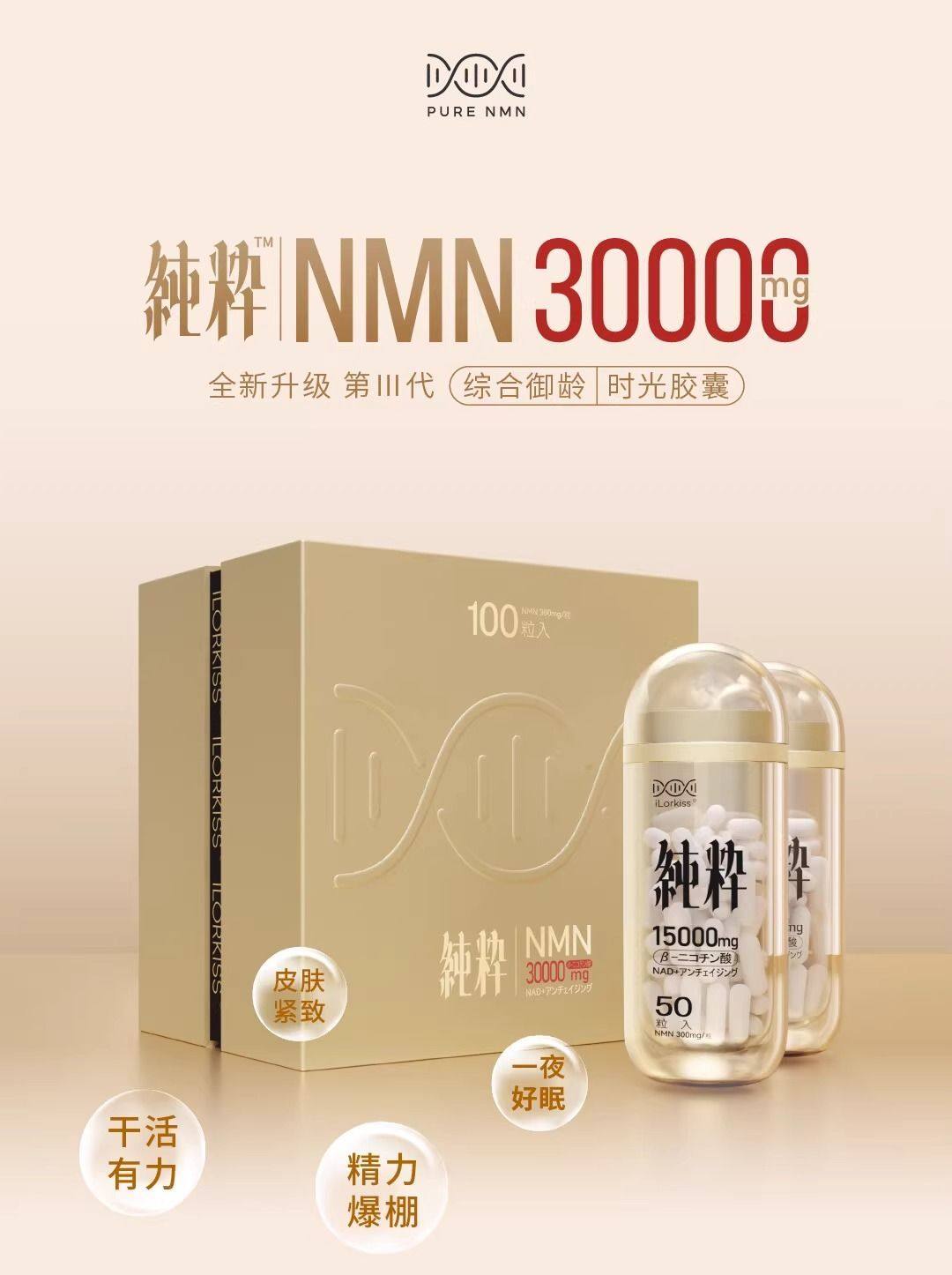 纯粹时光瓶iLorkiss日本进口NMN3000胶囊抗NAD+衰老原装正品100粒
