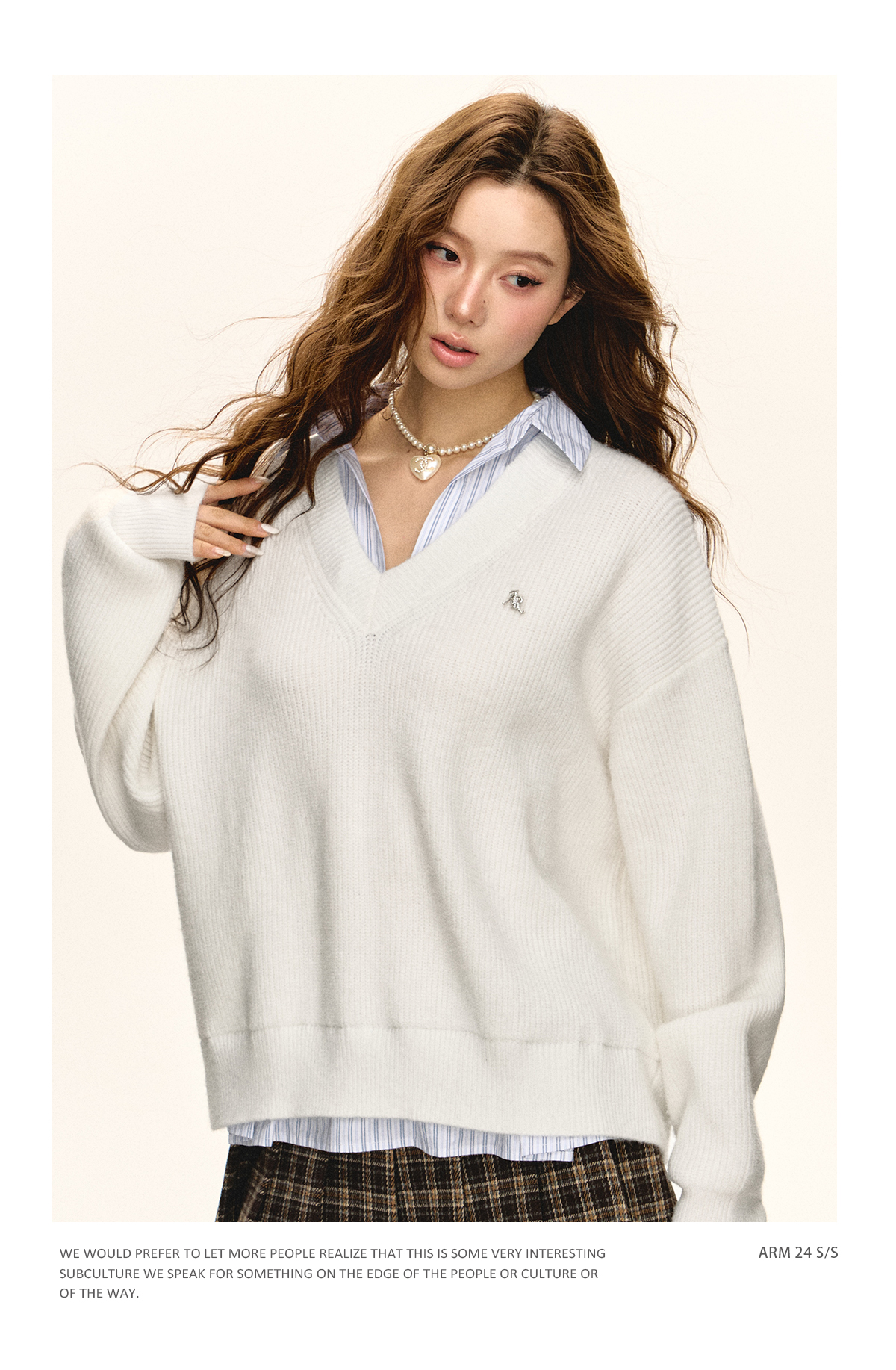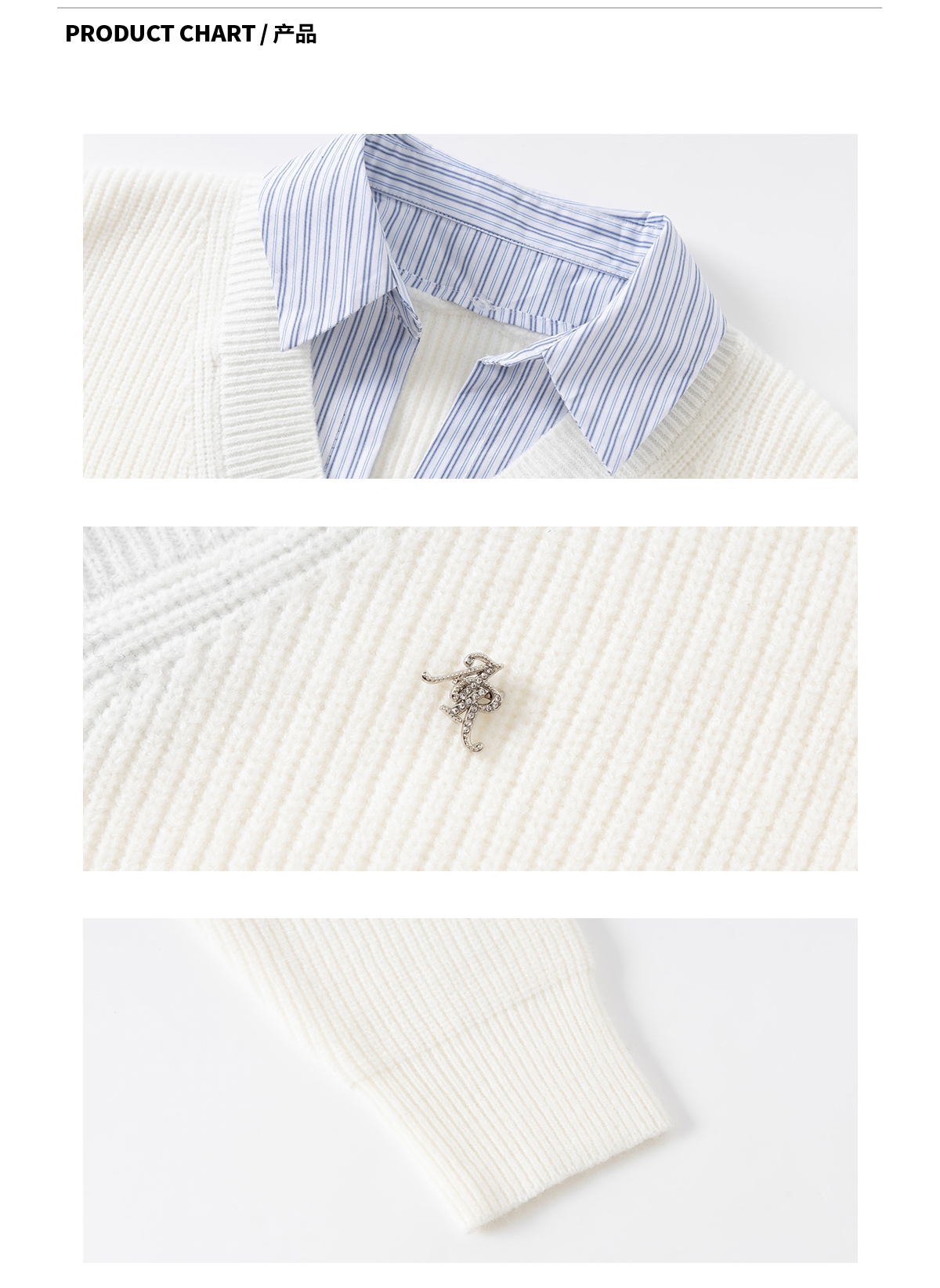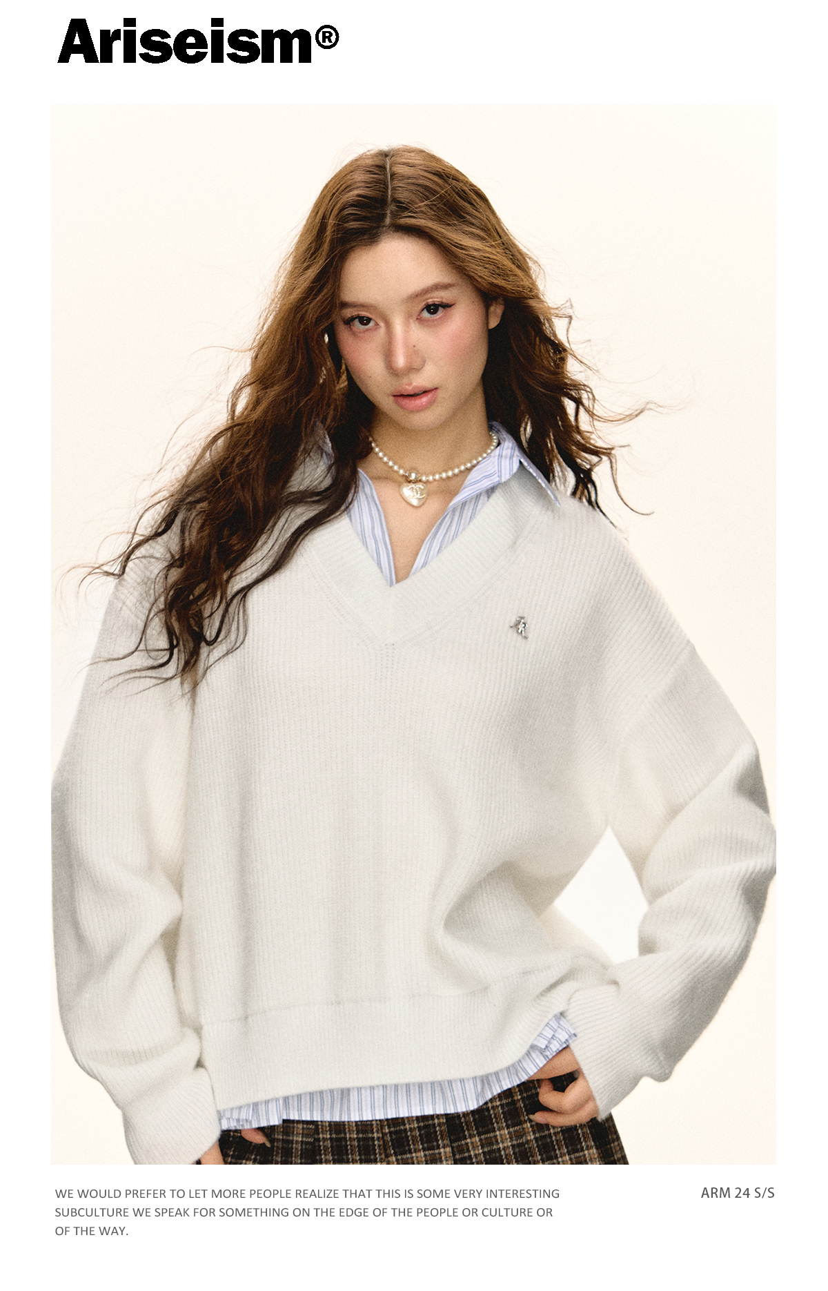 Ariseism 美式复古设计感假两件毛衣女春秋新款宽松上衣