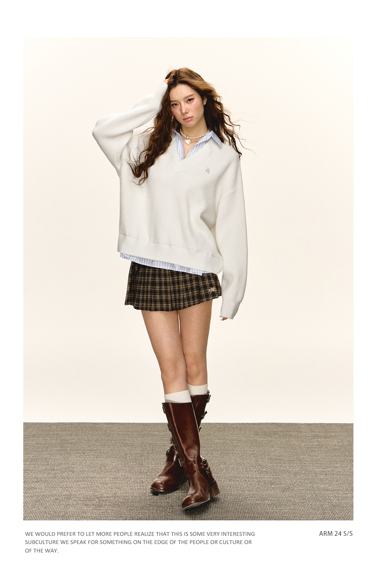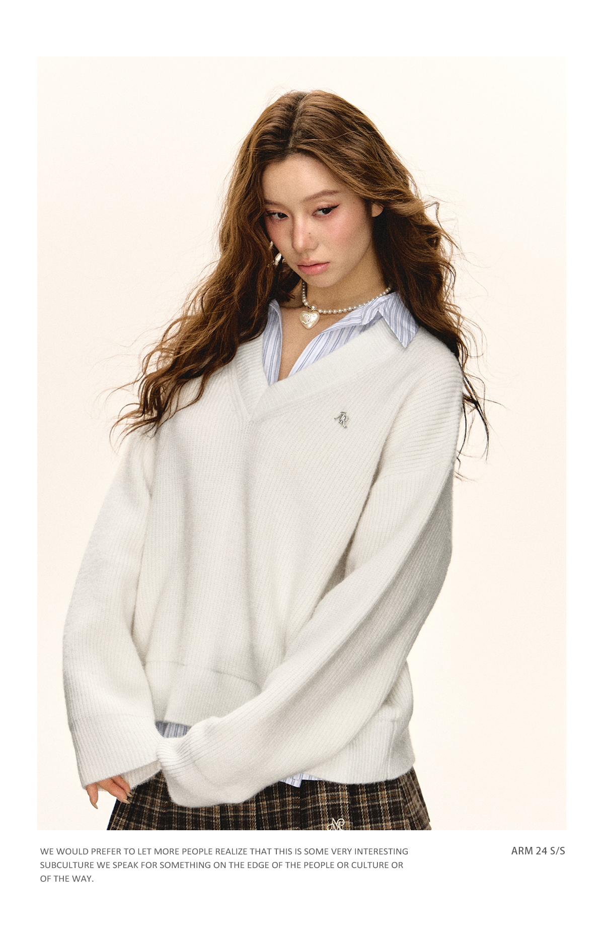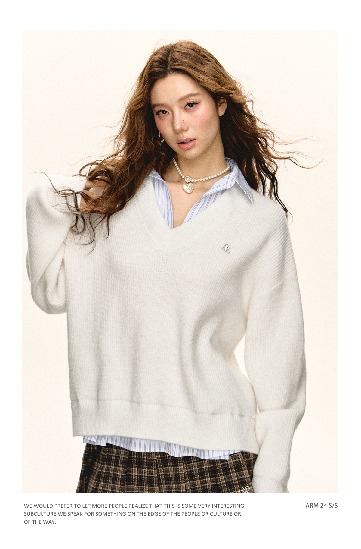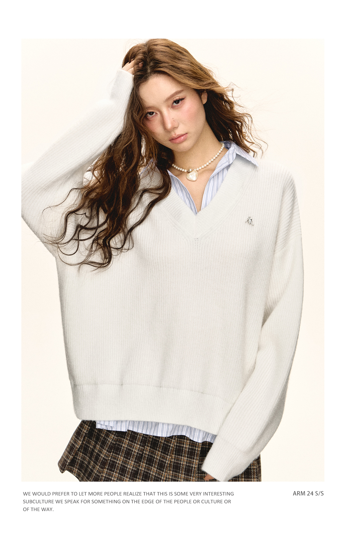 Ariseism 美式复古设计感假两件毛衣女春秋新款宽松上衣