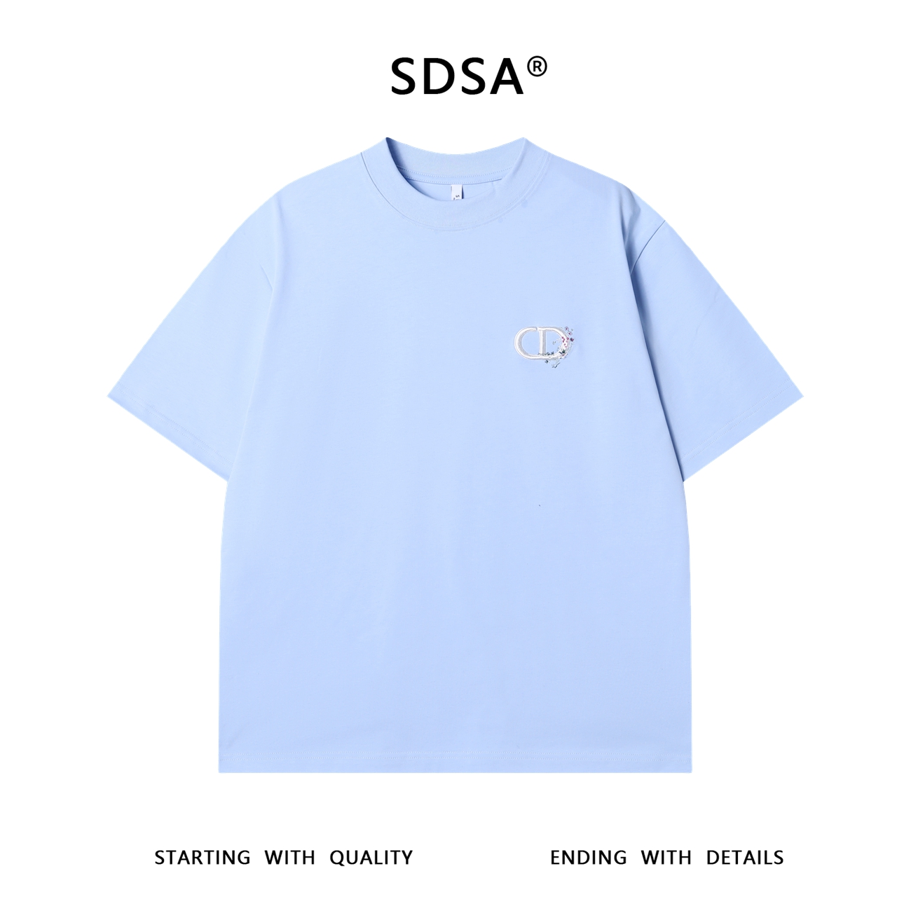 T3560夏季高级感新款韩版设计感刺绣字母圆领短袖T恤百搭宽松简约上衣