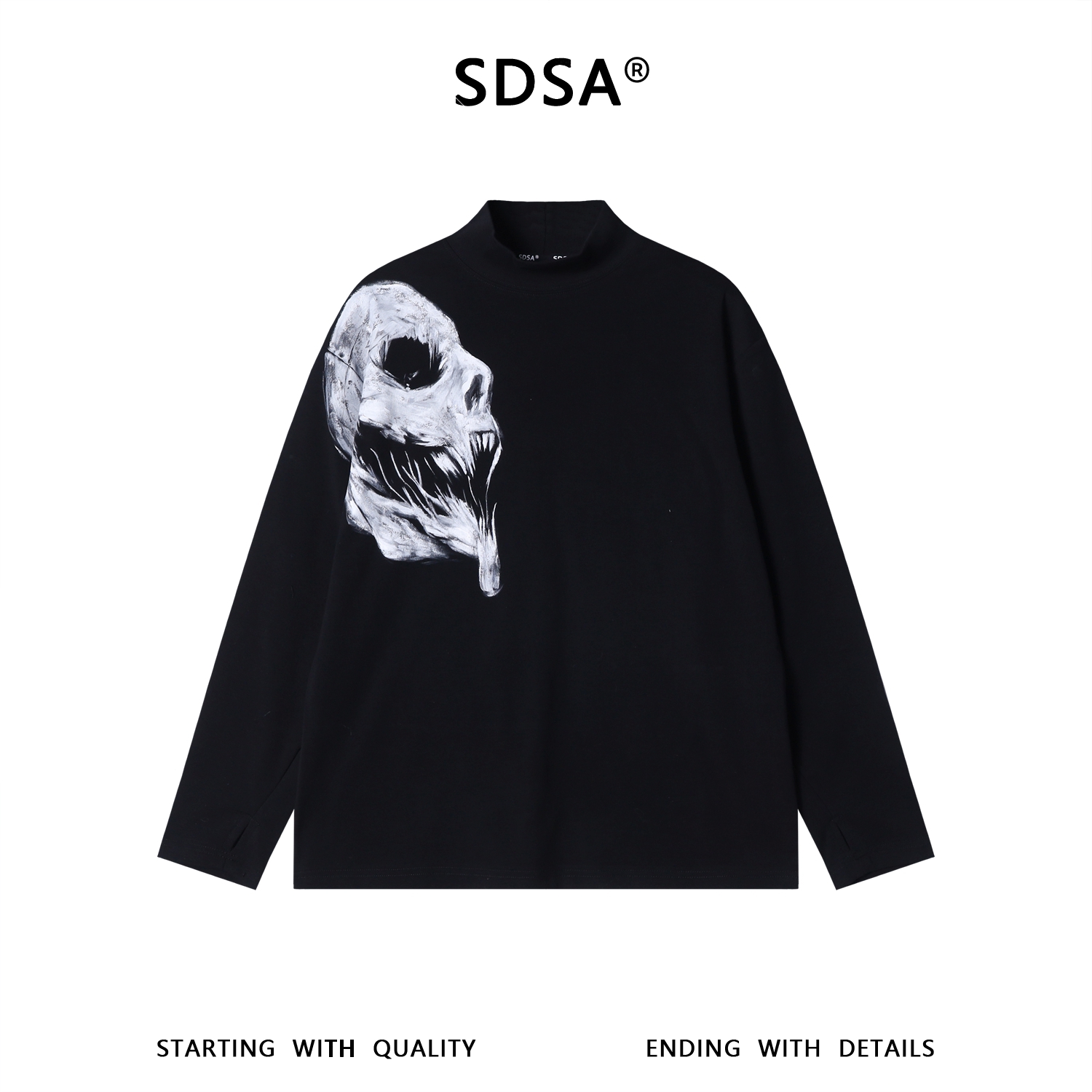 T5062SDSA男士秋冬新款痞帅男装美式嘻哈骷颅头印花立领长袖T恤百搭