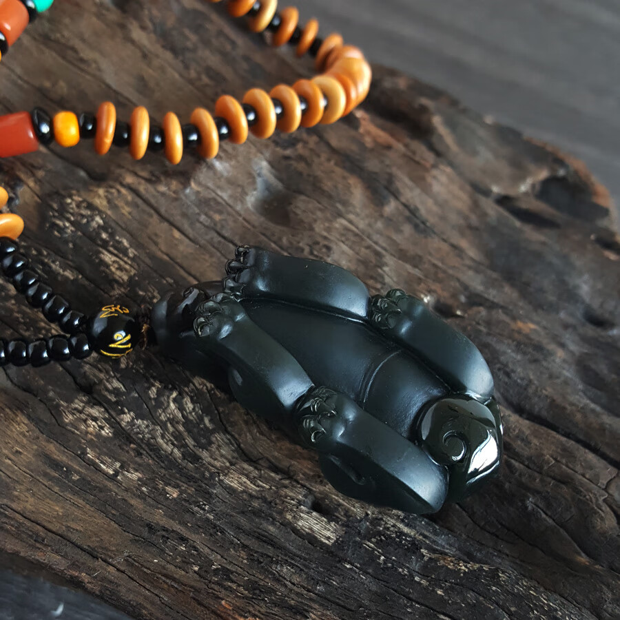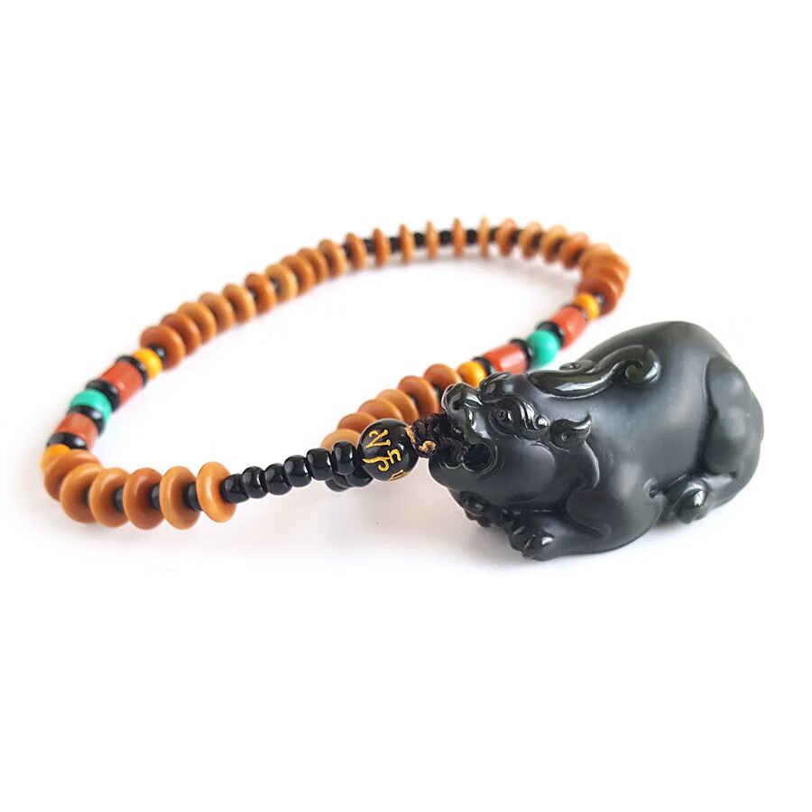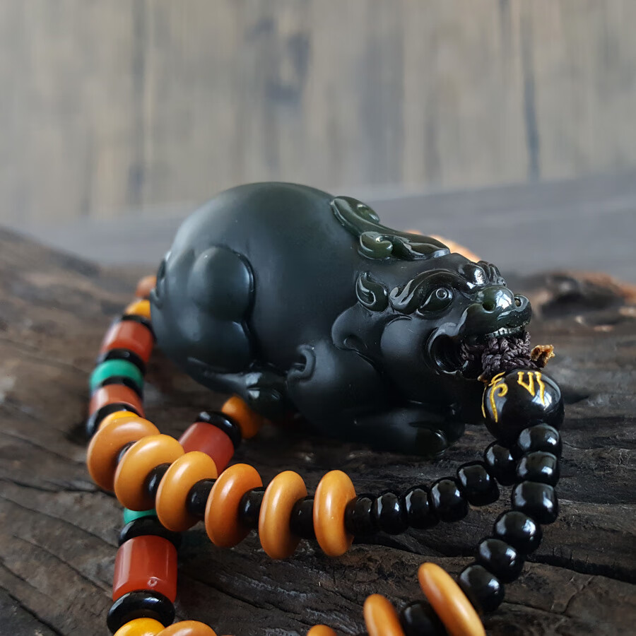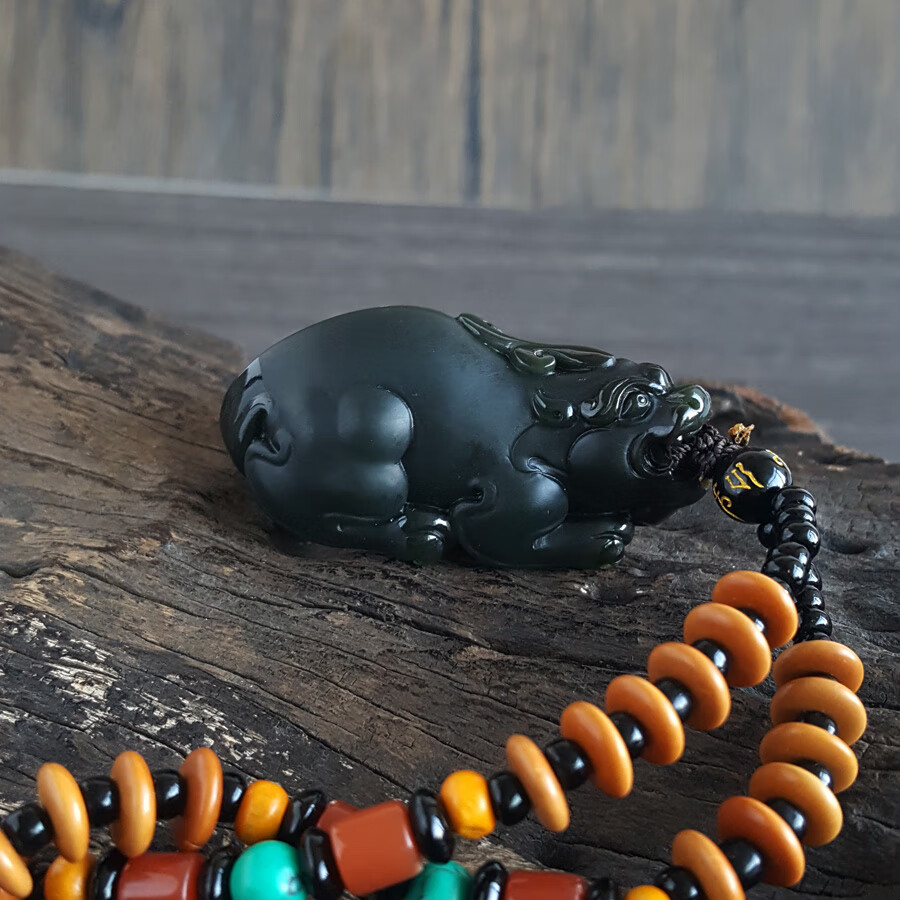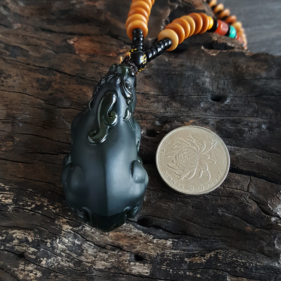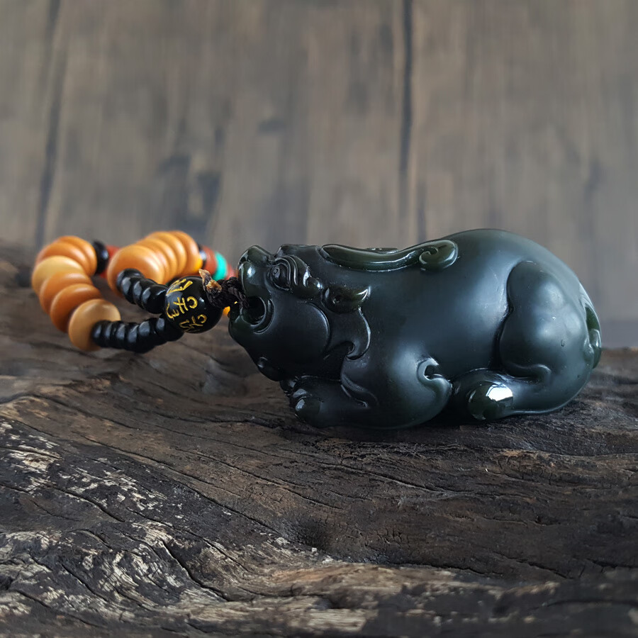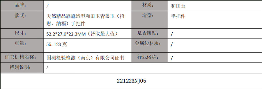 【天然正品】天然精品貔貅造型和田玉青墨玉(招财、纳福)手把件221223NJ05