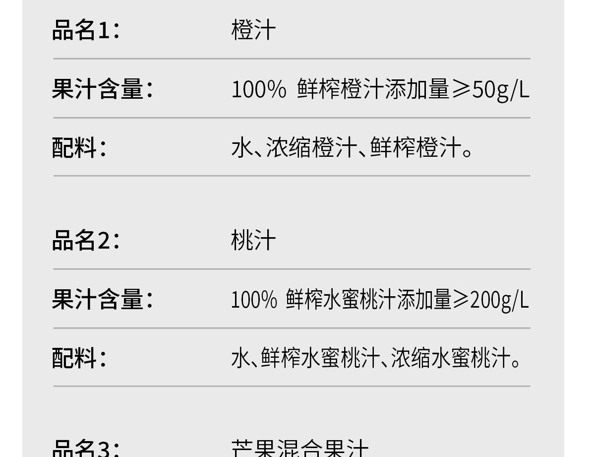 果蔬秘诀橙汁275ml*8瓶装水蜜桃汁芒果混合果汁营养水果包邮