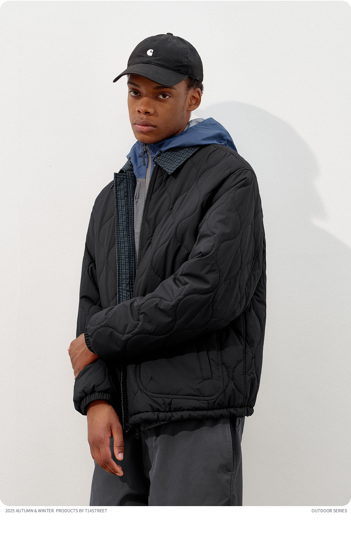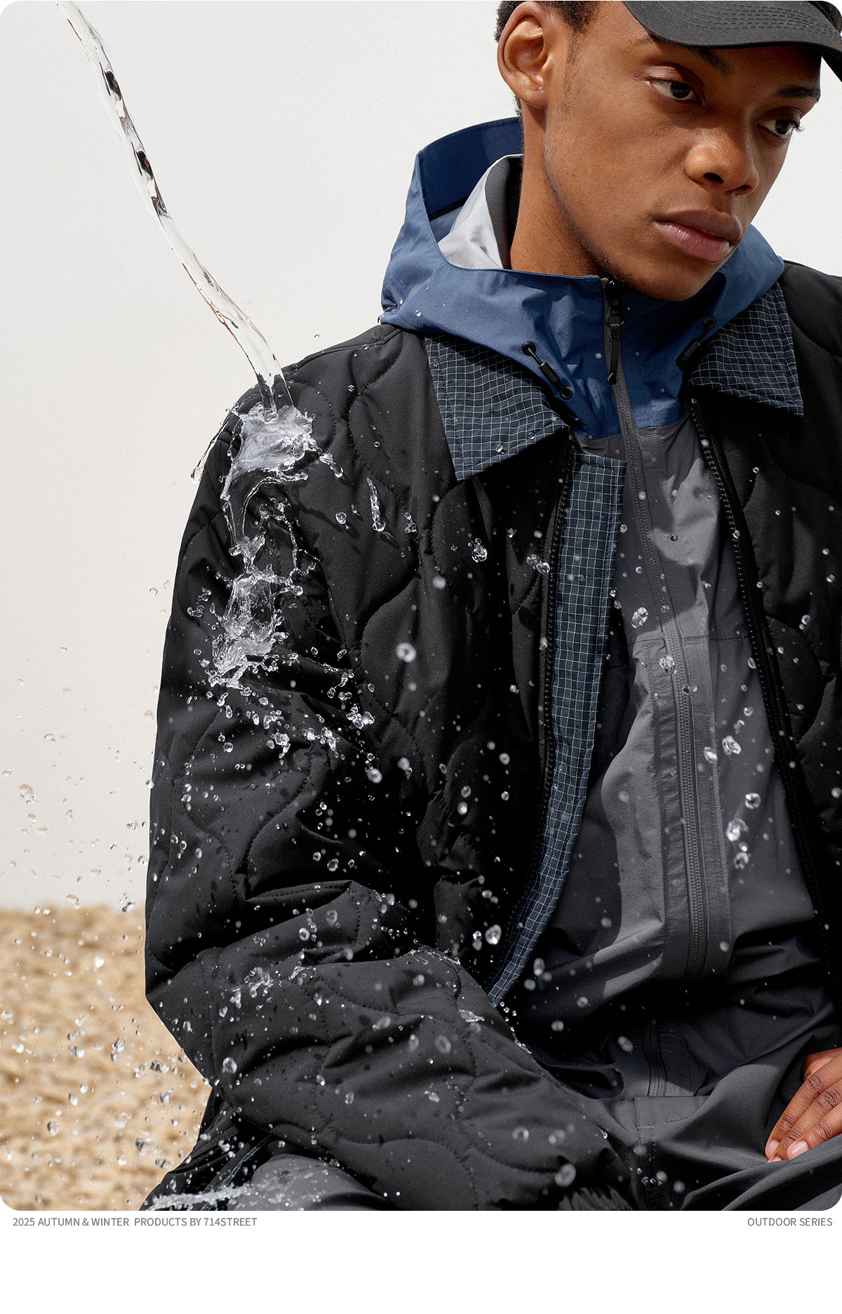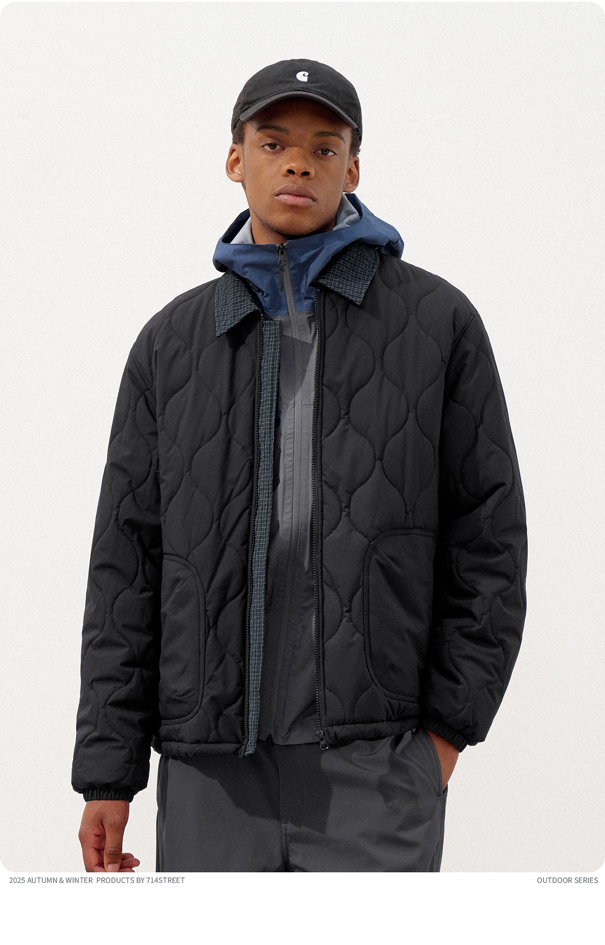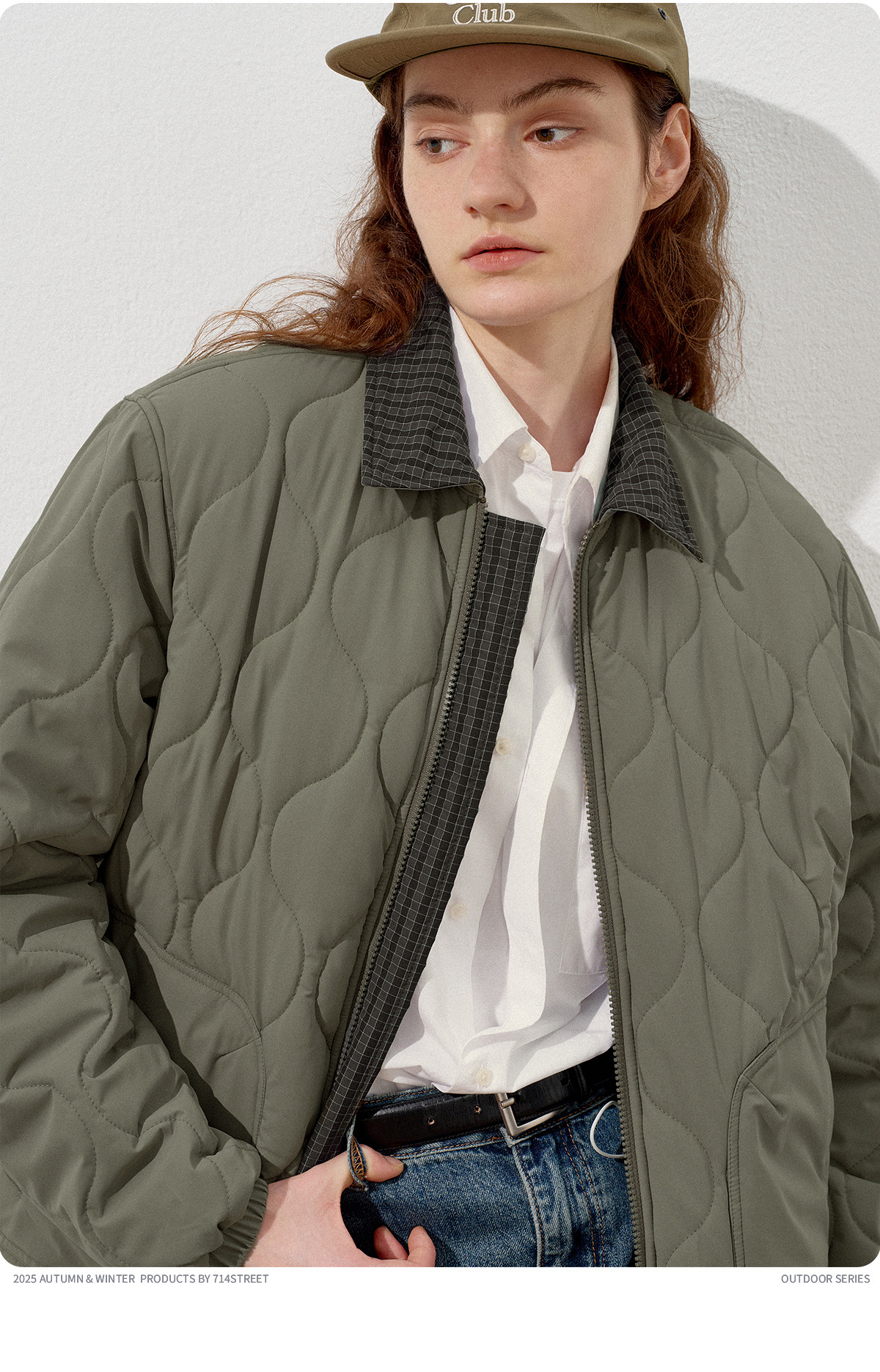 714street格子拼接翻领外套男2025冬季潮牌户外三防休闲保暖棉服