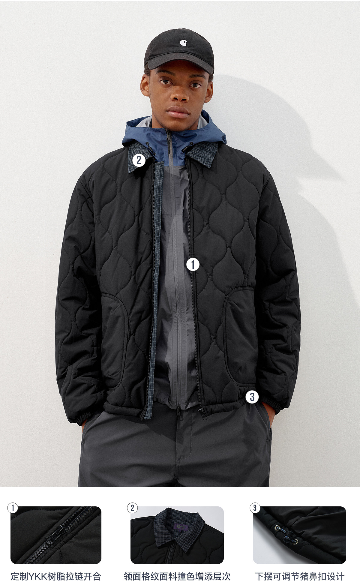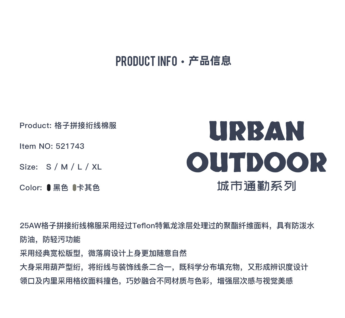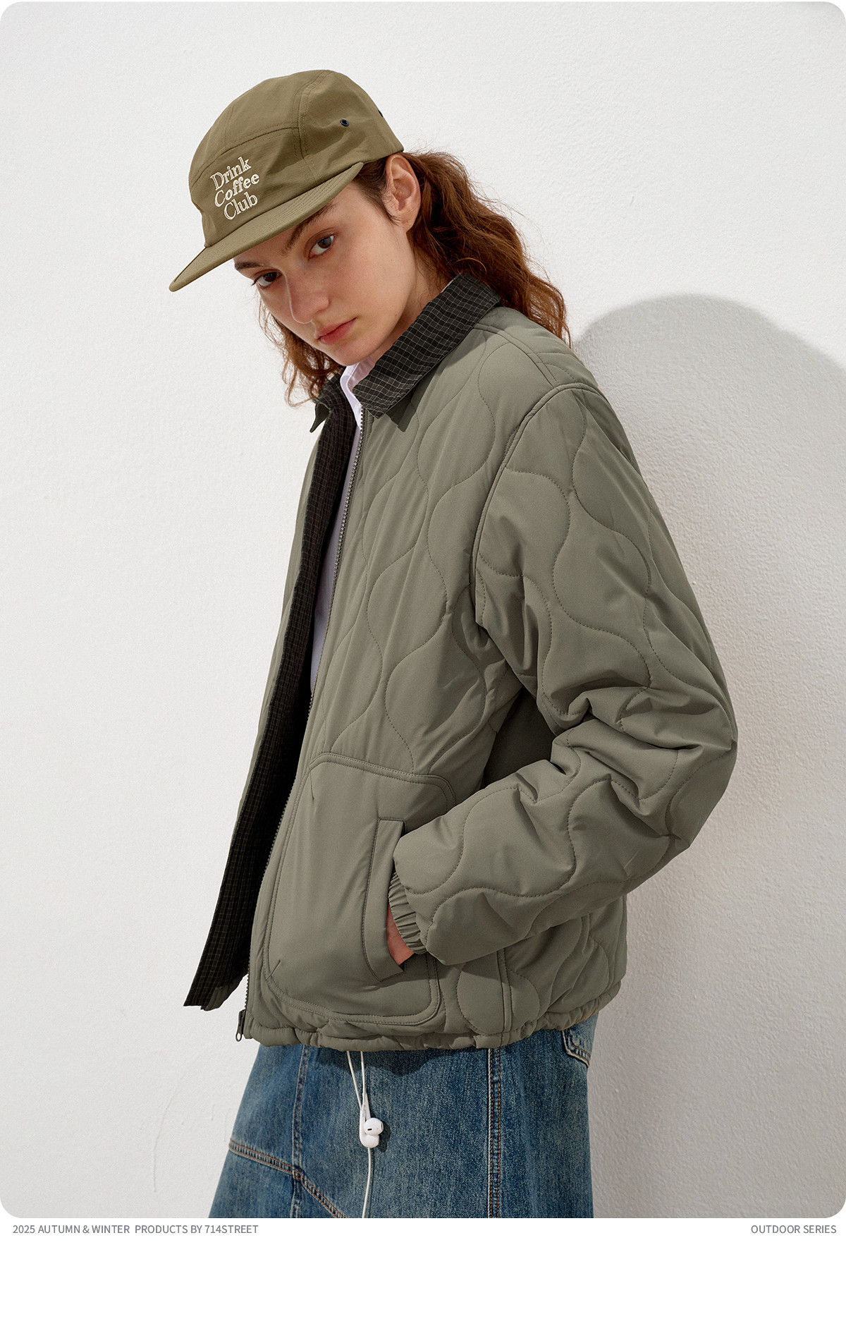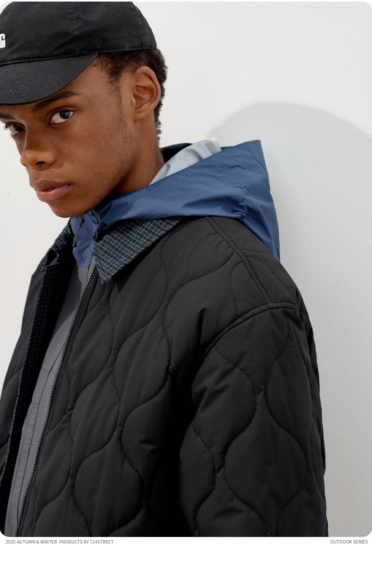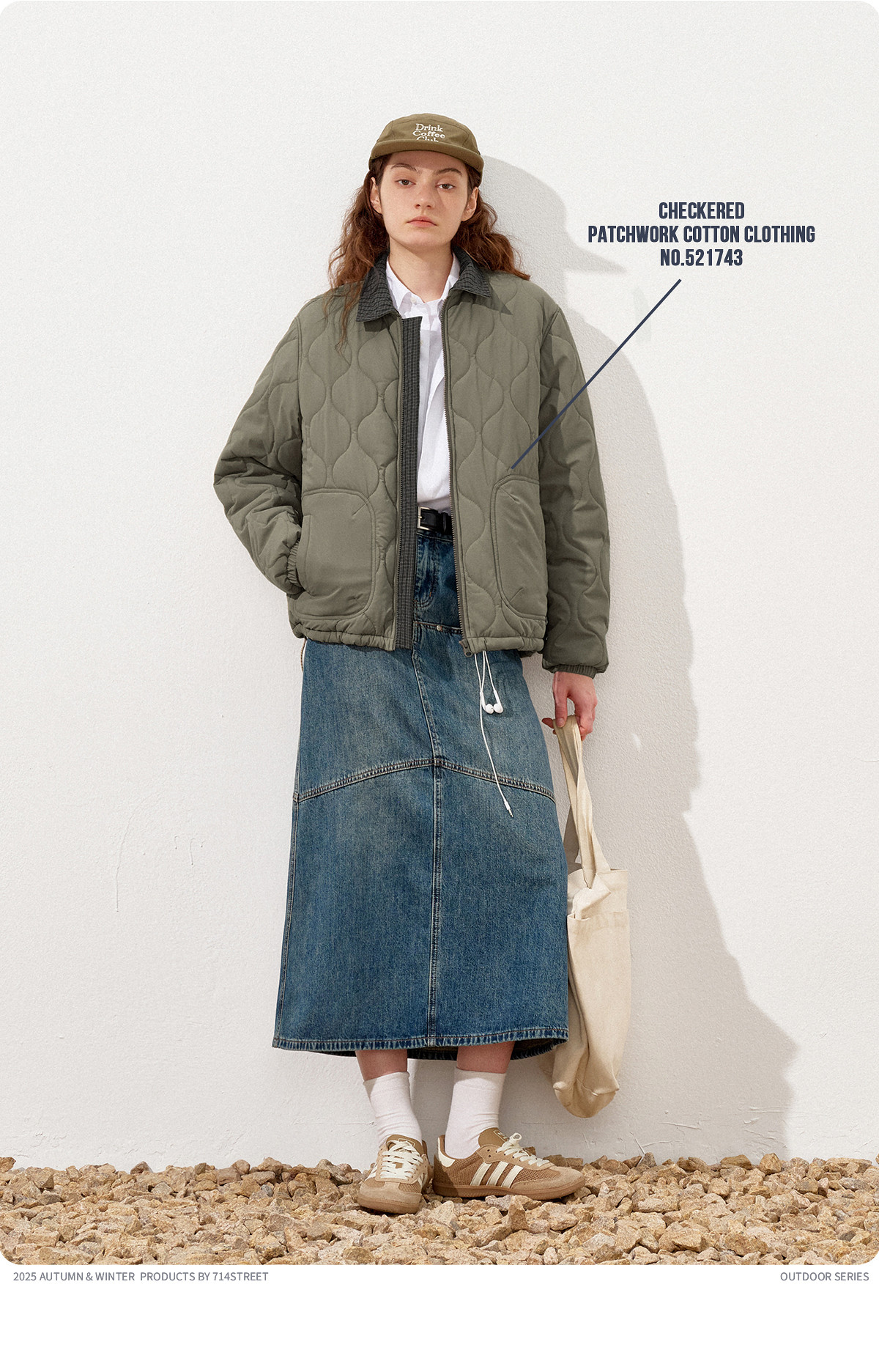 714street格子拼接翻领外套男2025冬季潮牌户外三防休闲保暖棉服