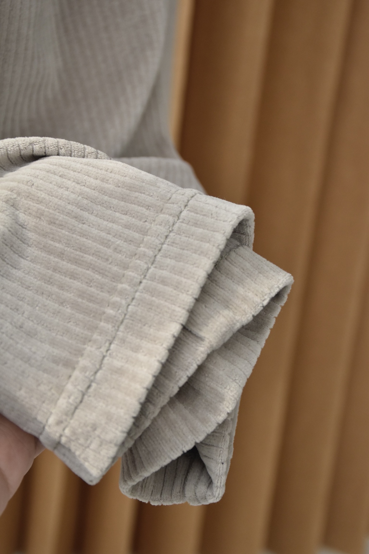 面料真的是太舒服了,含棉量高达67%的色织灯芯绒,面料不是那种厚重硬挺的感觉,而是很垂顺,很柔软,质地细腻!
