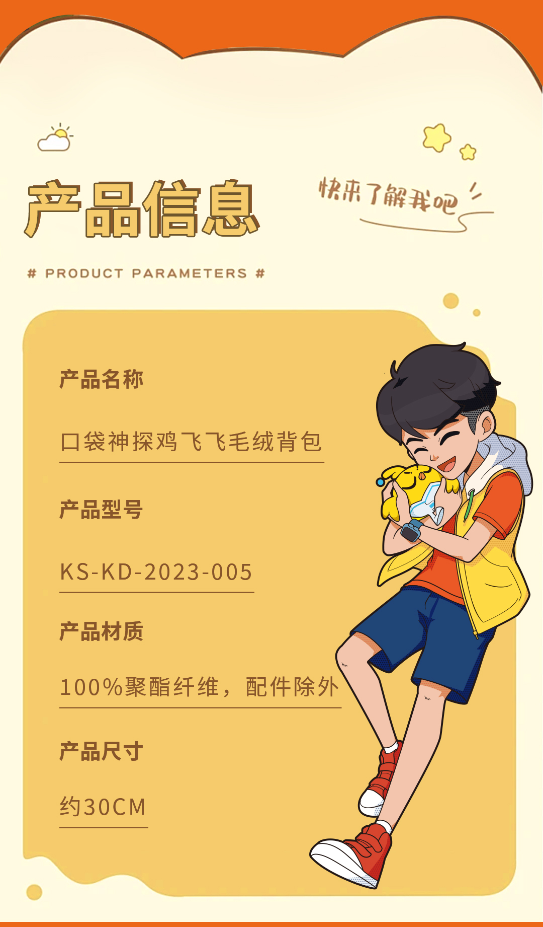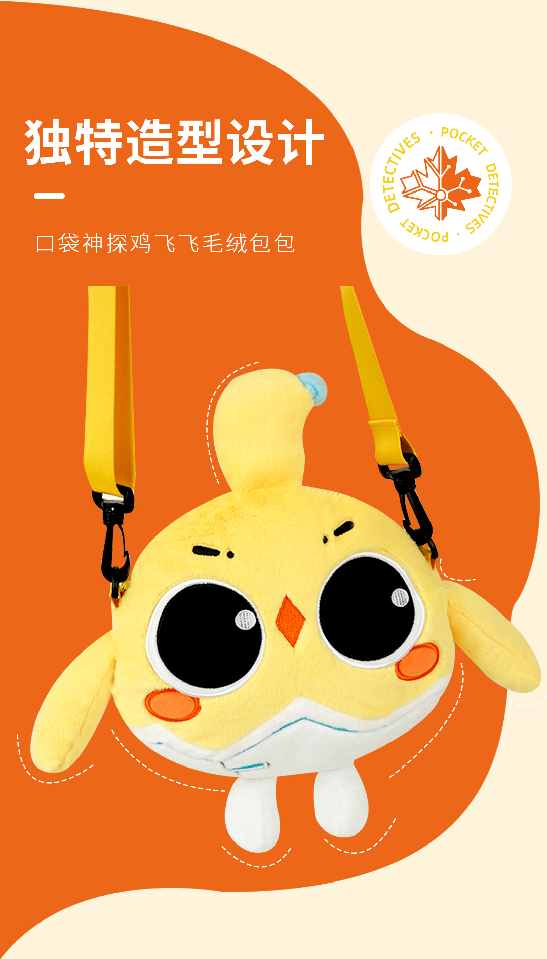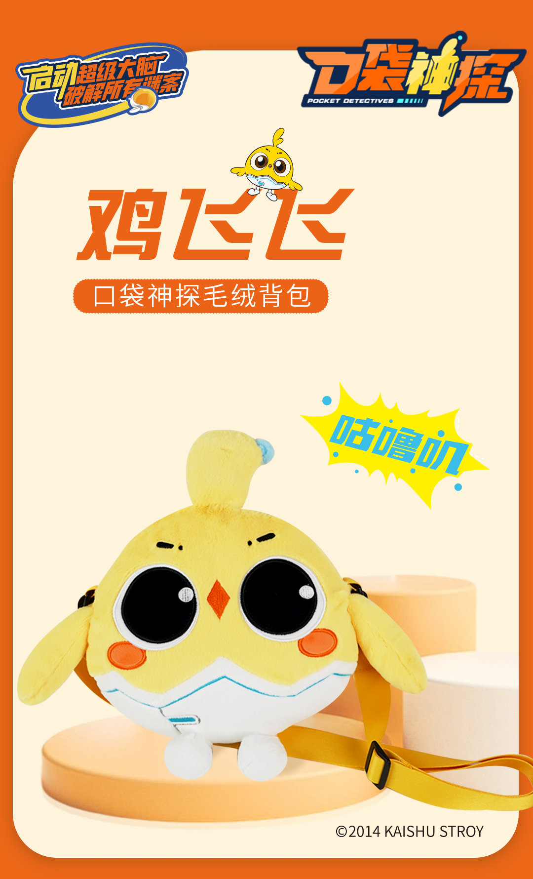 口袋神探鸡飞飞毛绒背包