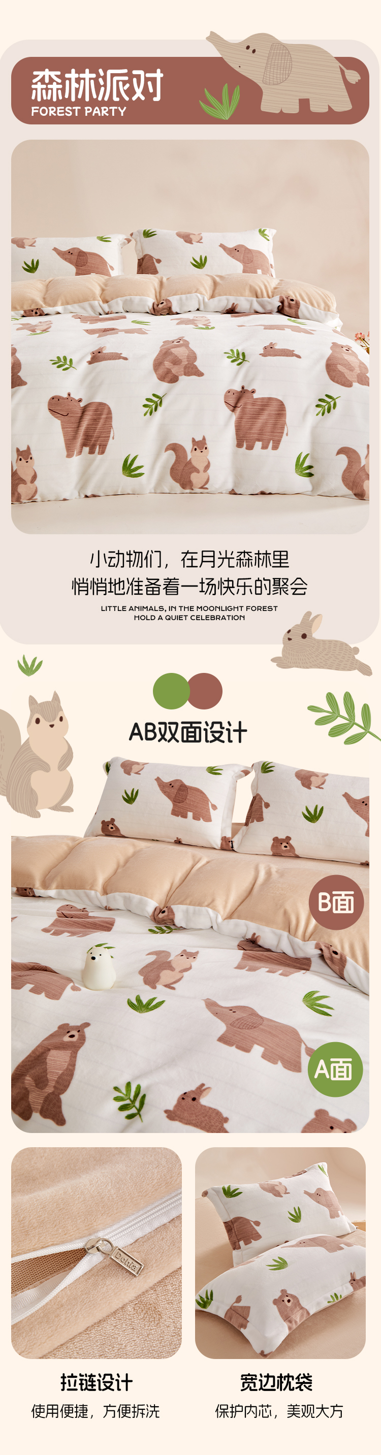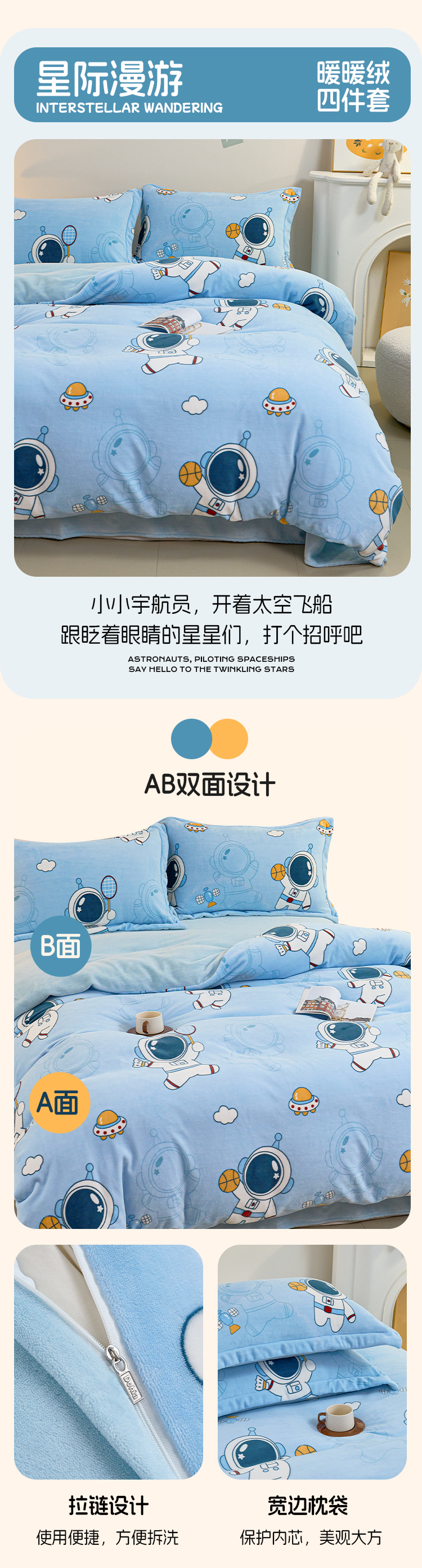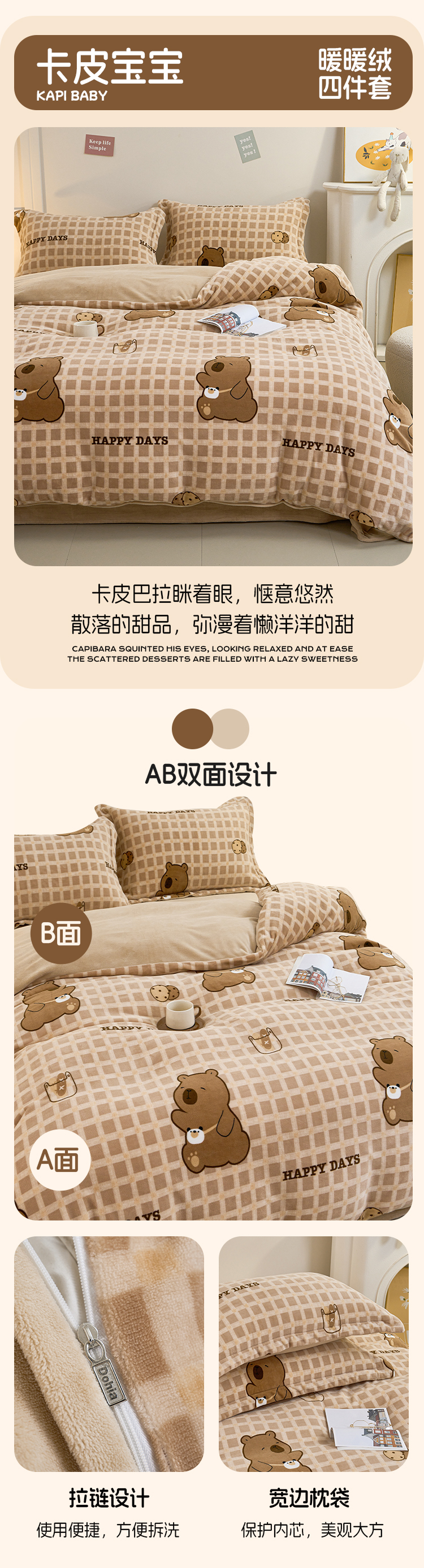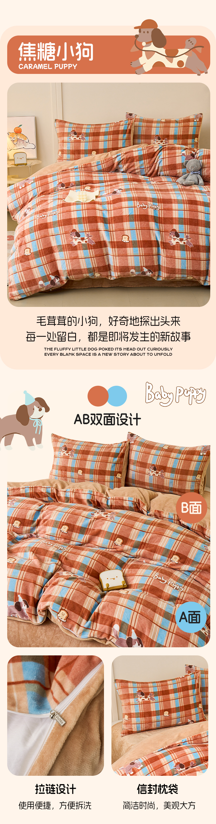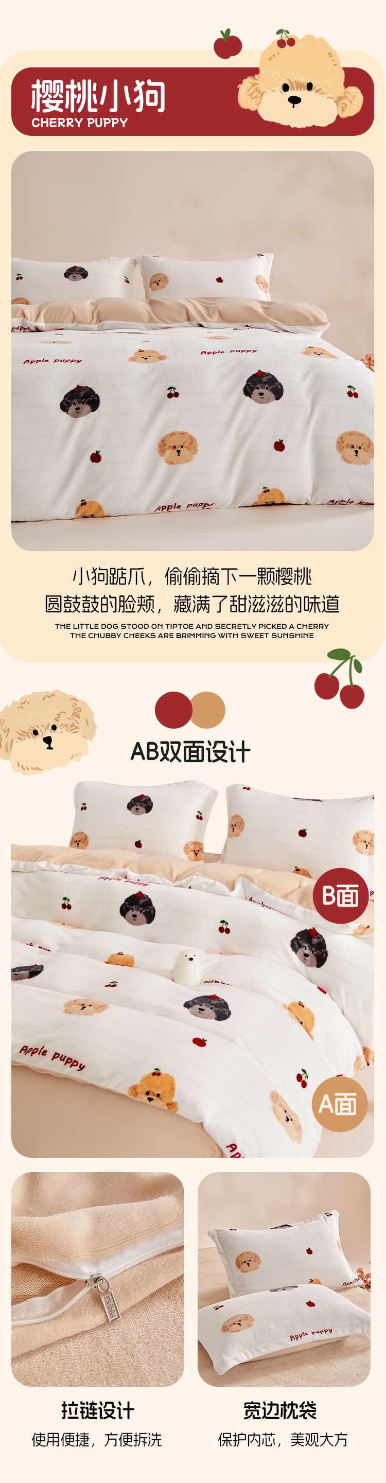 多喜爱 暖暖绒保暖四件套 卡皮宝宝/焦糖小狗/森林派对/星际漫游/樱桃小狗hl【高克重暖绒】【6.8度升温】【双面加厚】萌趣卡通 防静电 三款可选 拉链设计/FX