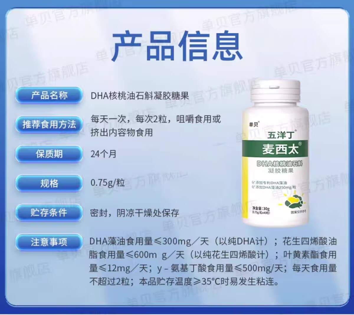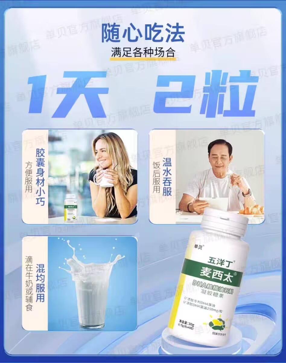 五洋丁可提高大脑功能。本品中的dha具有抗炎的作用,也能够帮助改善认知功能,因此可预防老年痴呆等退行性病变。dha对于情绪也有调节作用,因此适当补充能够预防抑郁症或者减少抑郁情绪。一般坚持使用本品可延缓大脑退化,也可以在某种程度上保持心情愉悦,对预防老年痴呆和抑郁症均有帮助。