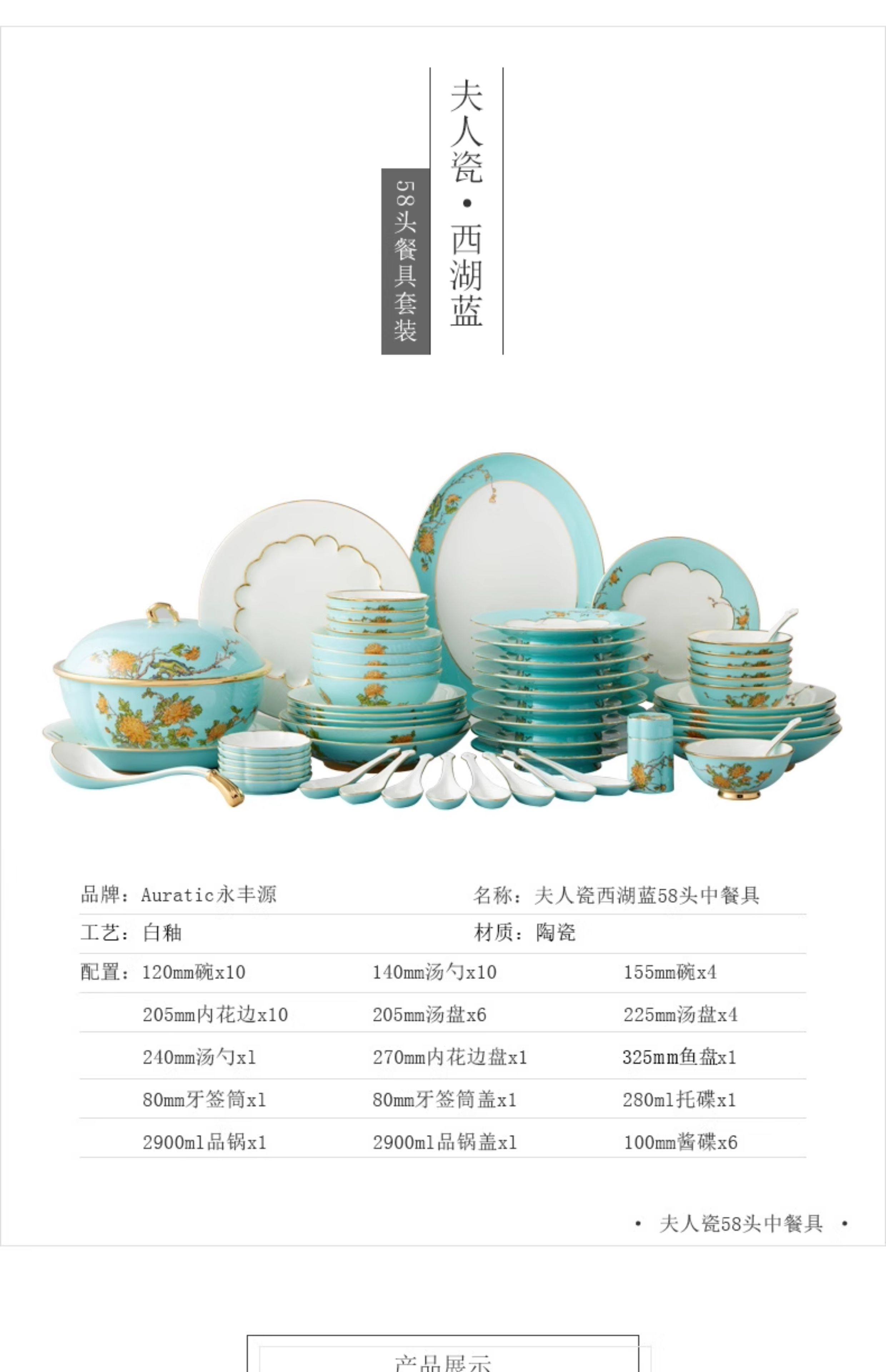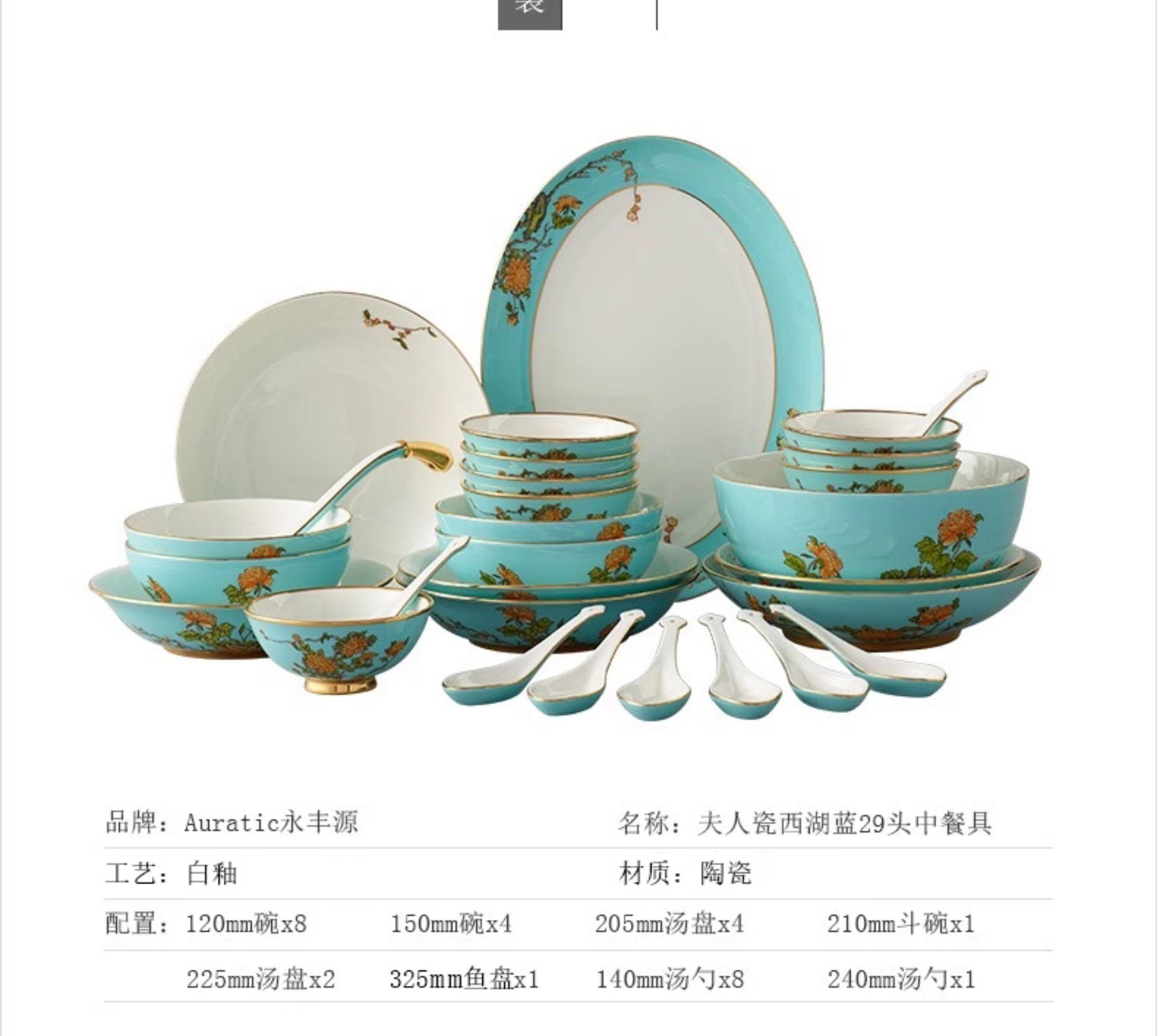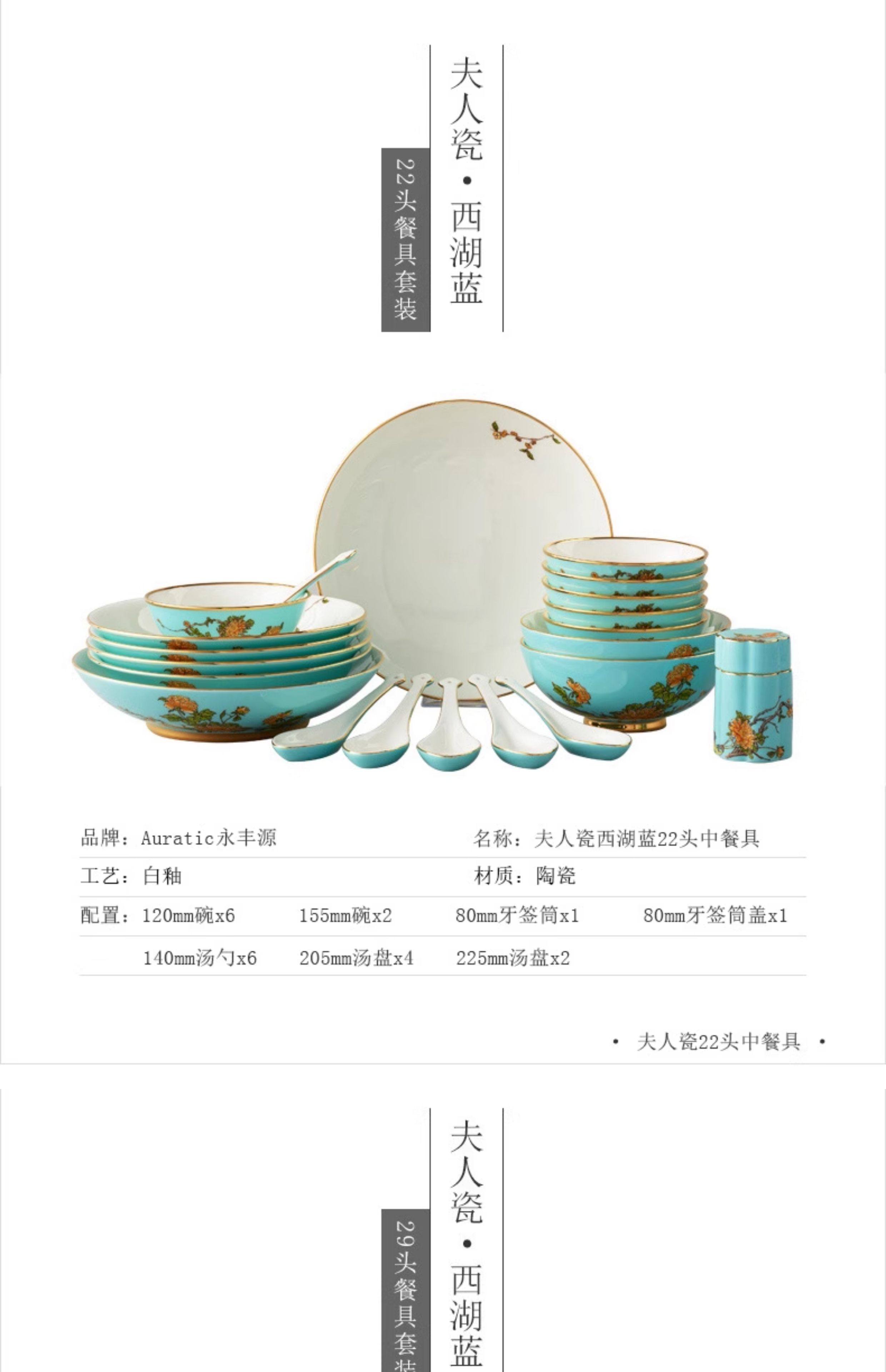 永丰源西湖蓝22头29头陶瓷餐具套装中式碗碟新年礼品 瓷器产品不支持七天无理由