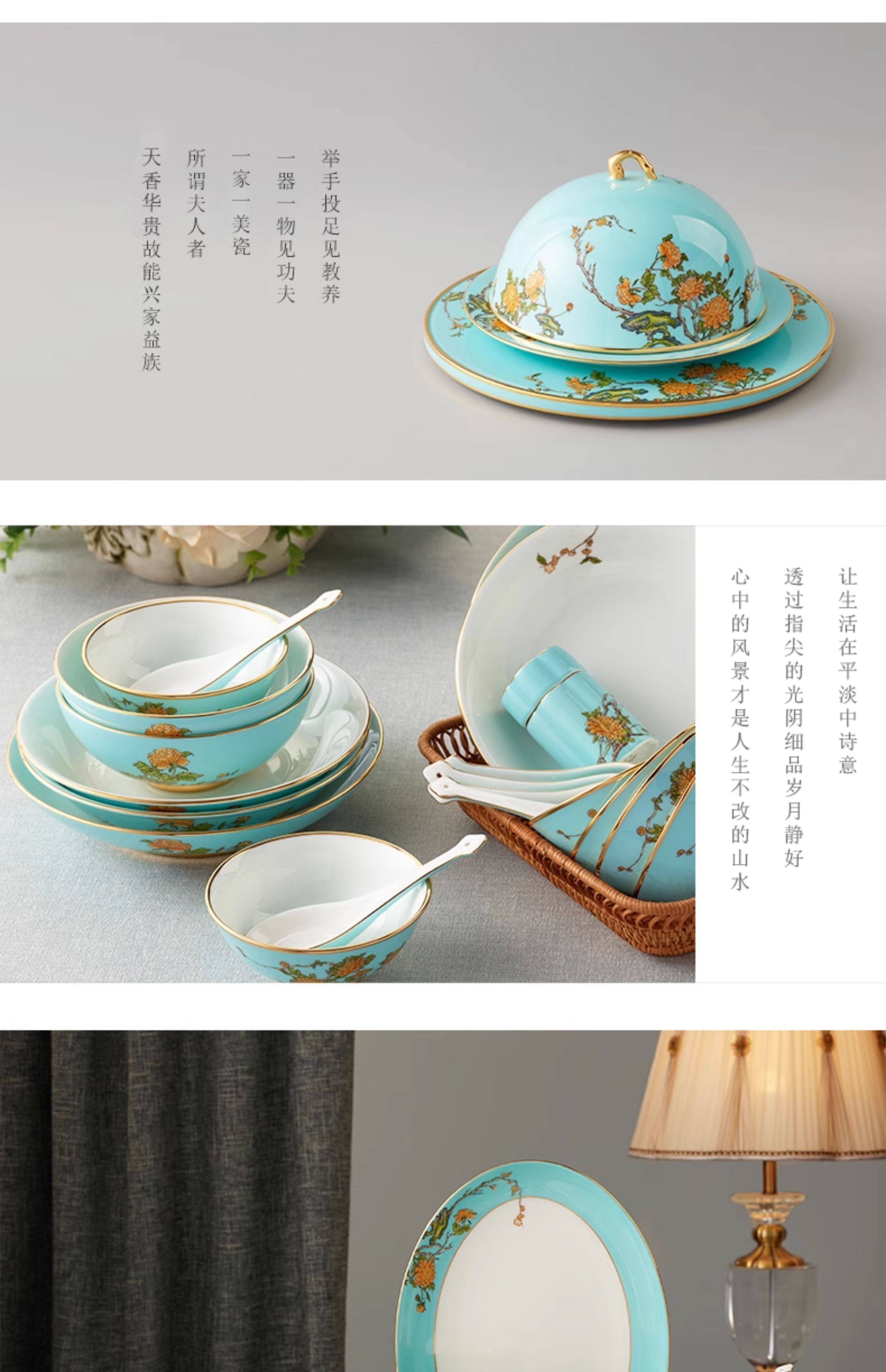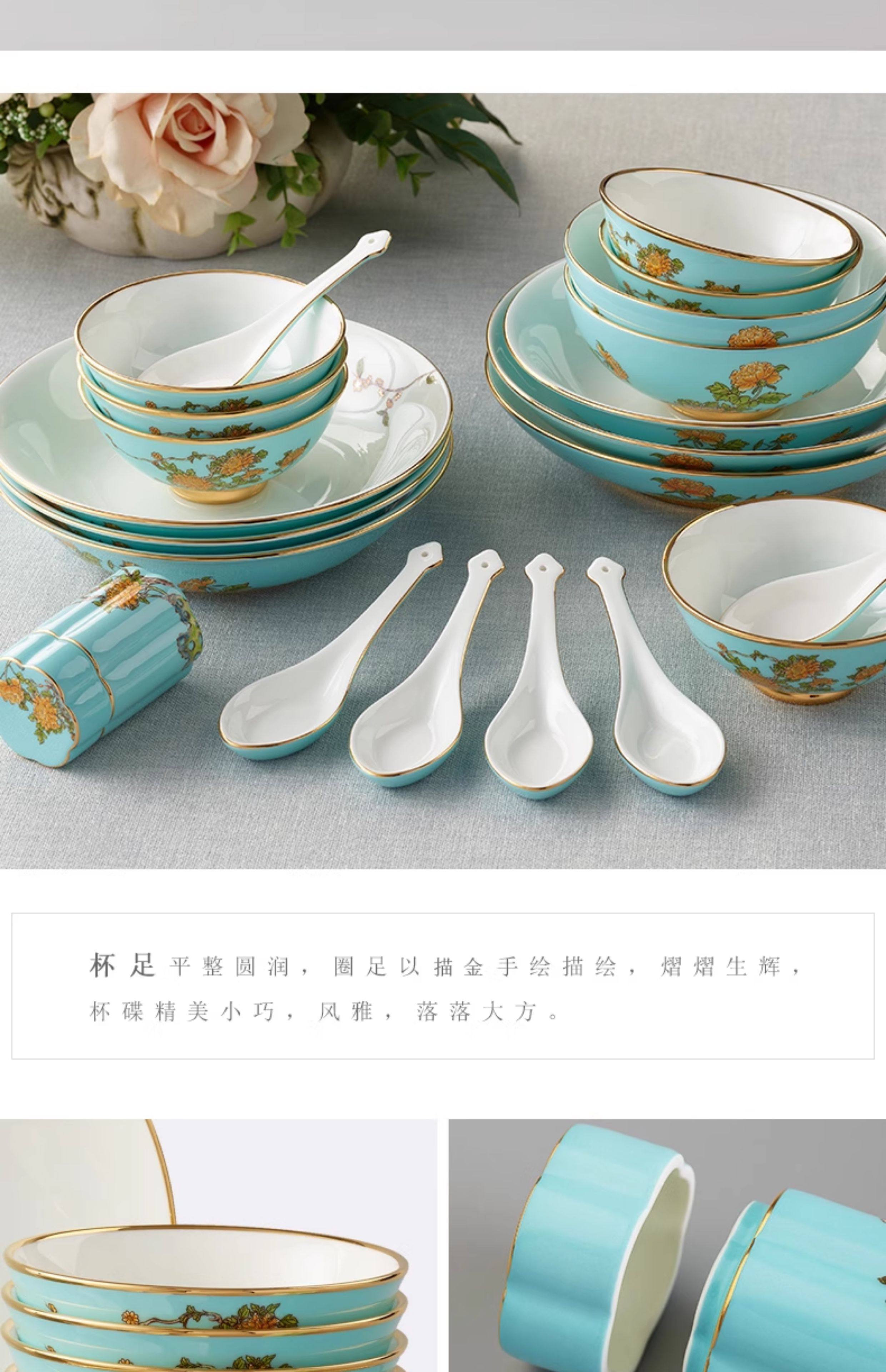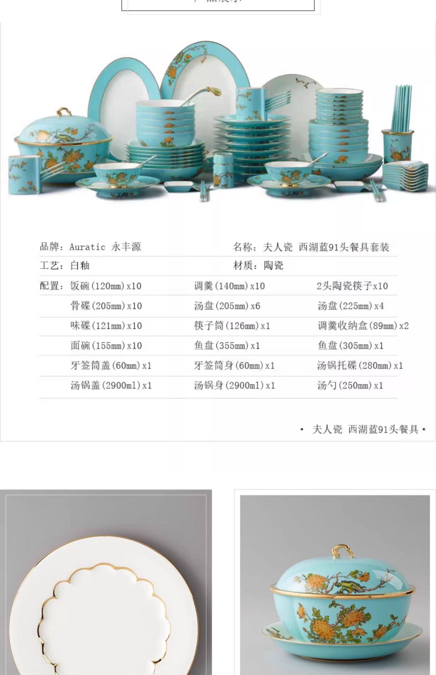 永丰源西湖蓝22头29头陶瓷餐具套装中式碗碟新年礼品 瓷器产品不支持七天无理由