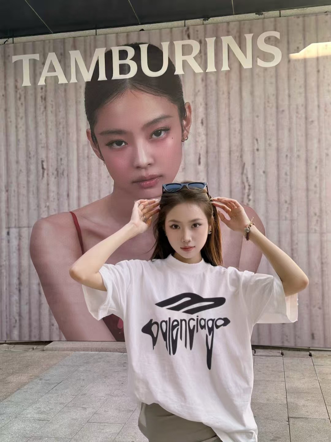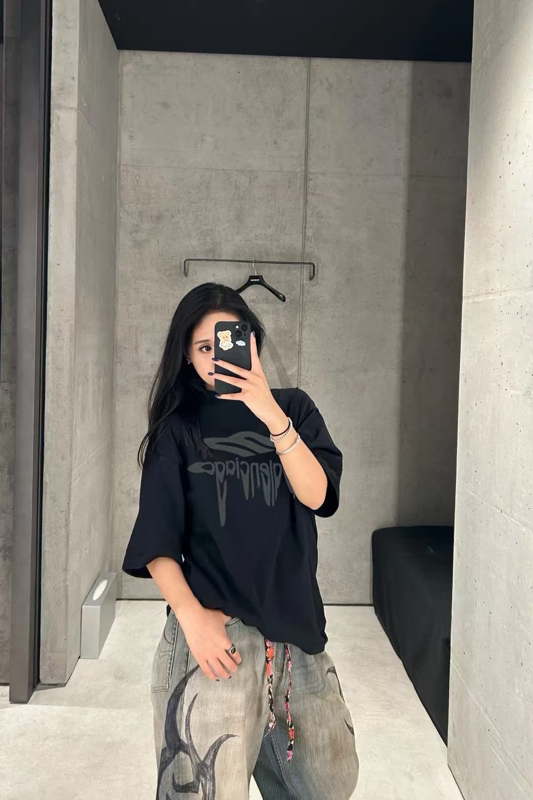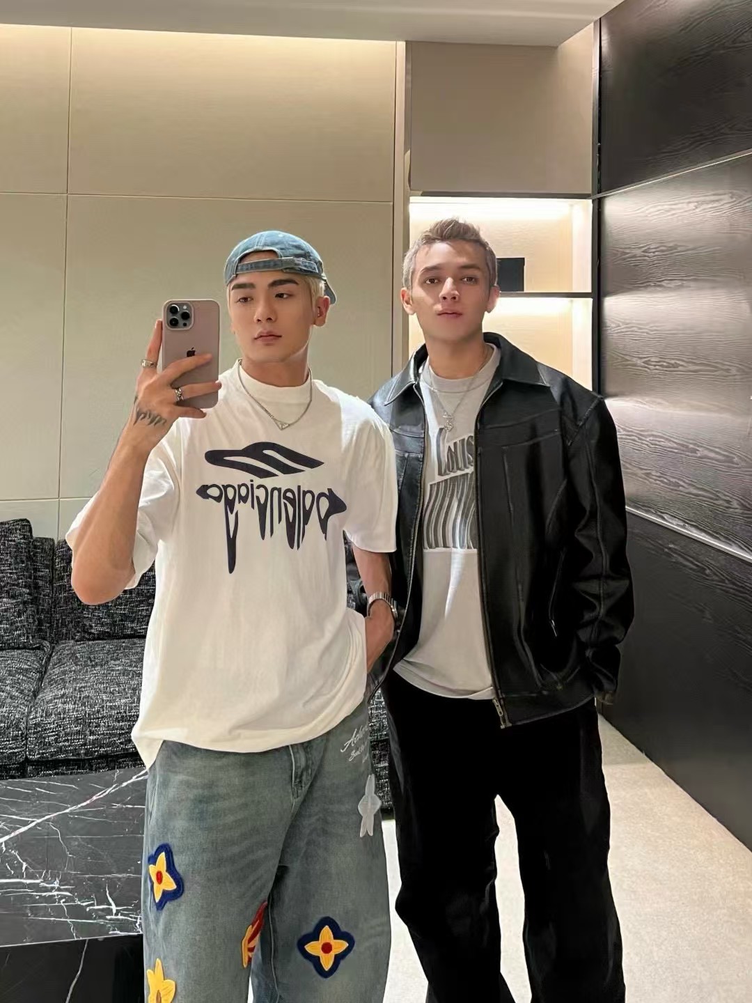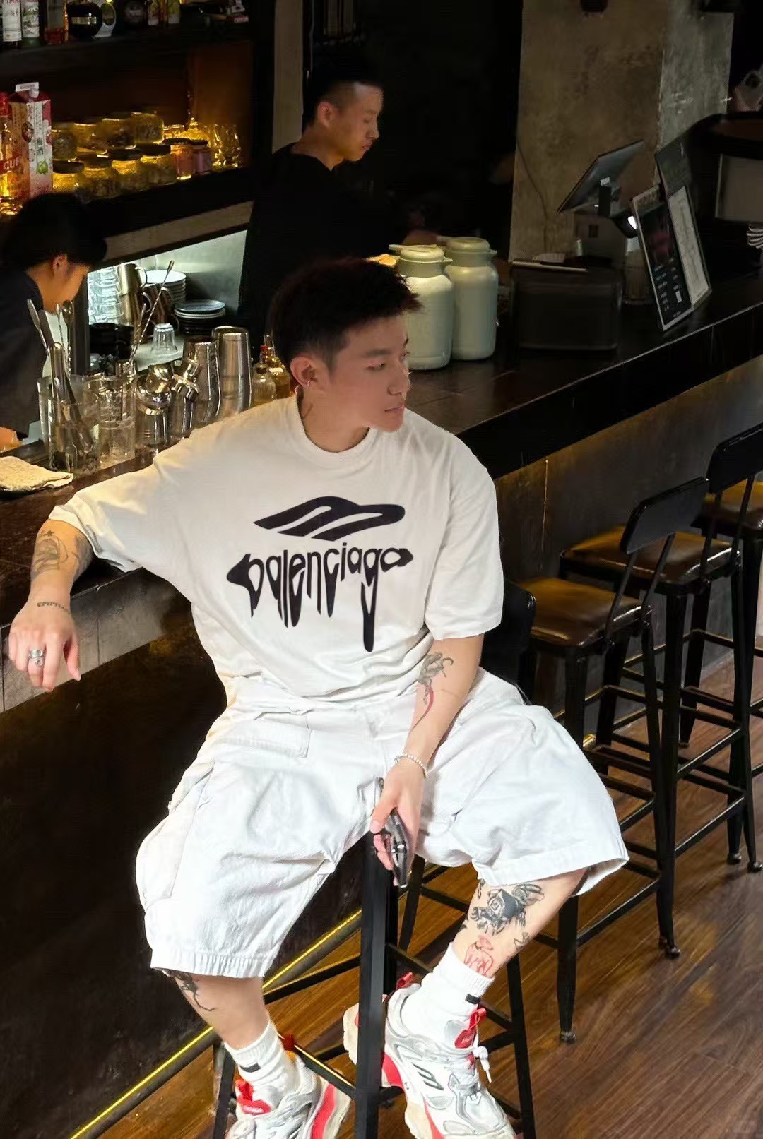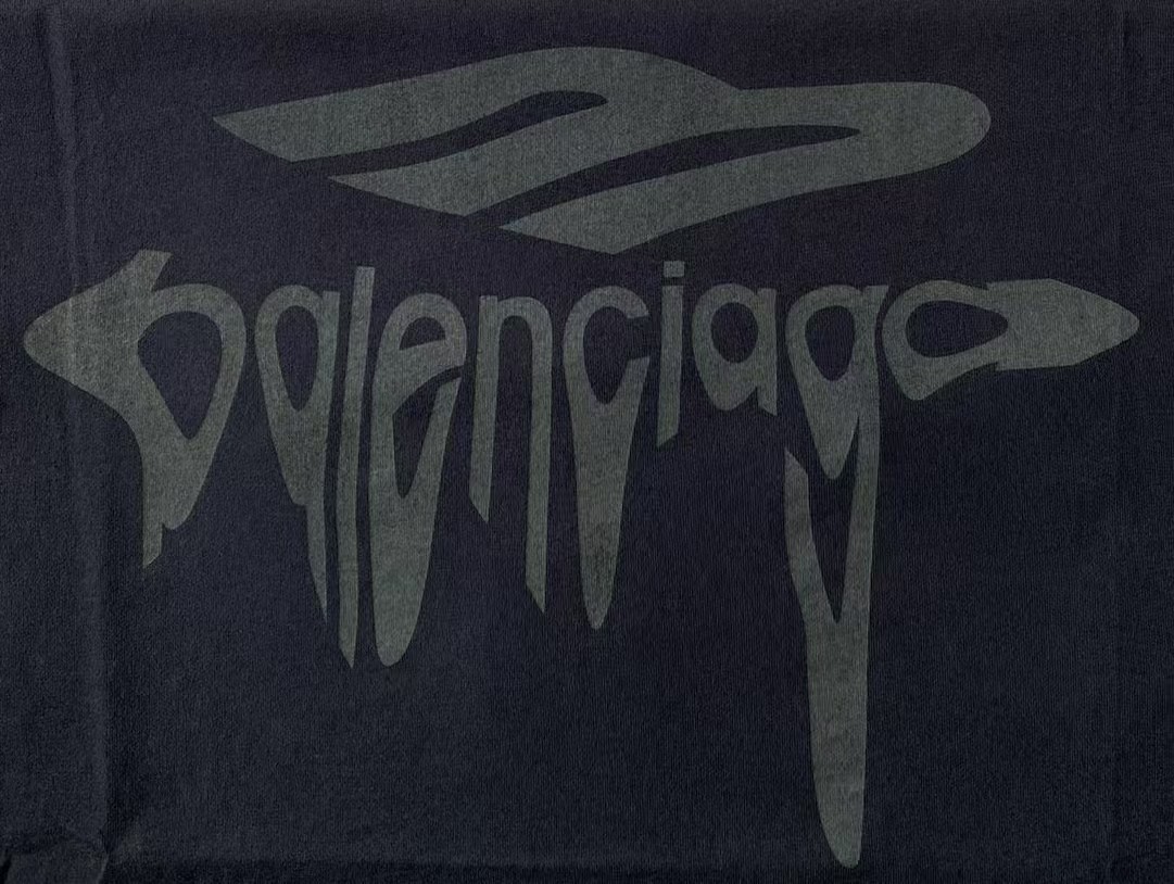高密度网点浆印花是一种独特且高级的印刷技术,网点的分布非常密集因此印刷出的图案具有极高的清晰度和分辨率。利用高密度网点浆印花技术在服装上印刷出各种复杂的图案和纹理,水墨涂鸦感字母印花通过这种技术印刷,具有独特的质感和立体感。同时,由于浆料的特殊性质,印刷后的图案具有一定的吸引力,视觉效果独特,而且触感细腻。