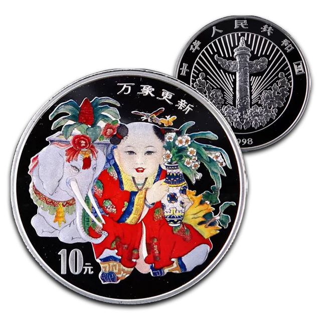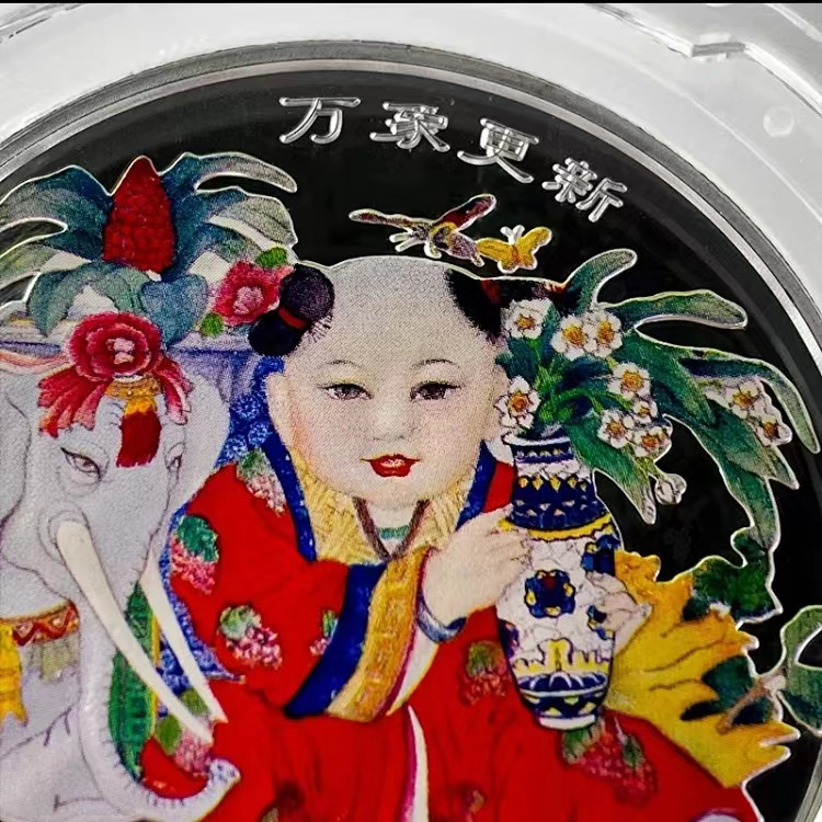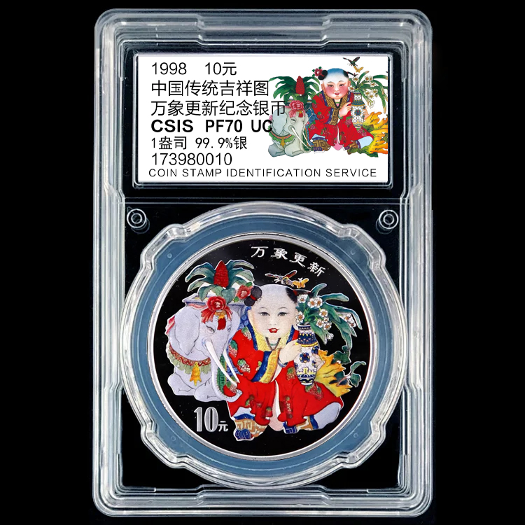 万象更新彩色纪念银币 封装评级带包装盒