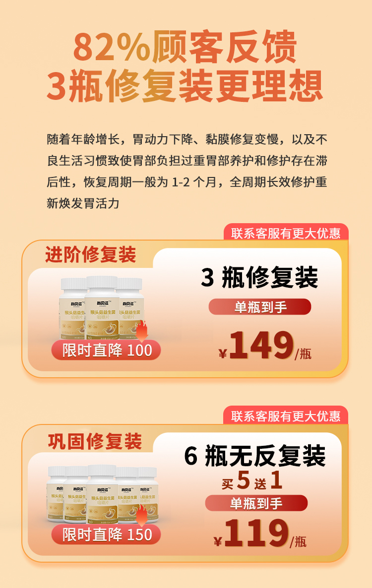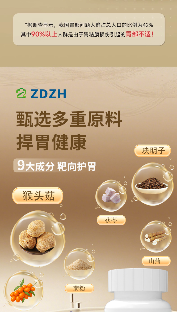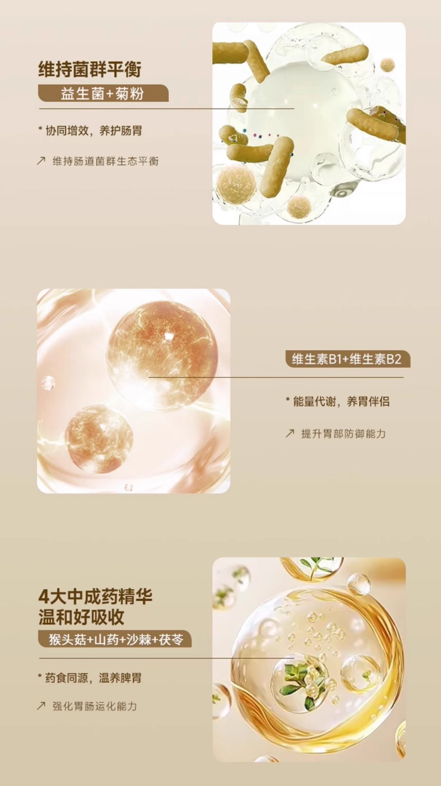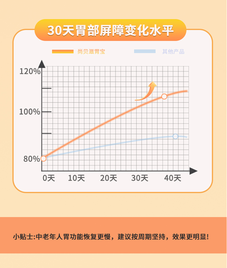 尚贝滋胃宝具有修复胃部黏膜的作用,可帮助改善胃炎或者胃溃疡等慢性胃部疾病。产品的核心成分有猴头菇和沙棘,里面含有黄酮类化合物以及抗氧化物质,可以修复胃部黏膜,促使胃上皮细胞增殖增强,胃部黏膜的屏障功能减少,胃酸或幽门螺杆菌对胃黏膜带来的伤害。猴头菇提取物可以让胃溃疡的愈合时间缩短,并且可以在某种程度上降低复发率。其次,沙棘具有抗氧化作用,能够减少炎症,因此对胃带来的伤害;茯苓能够减少胃酸过多引起的症状;山药可以在胃部表面形成保护膜,减少食物对胃的刺激。