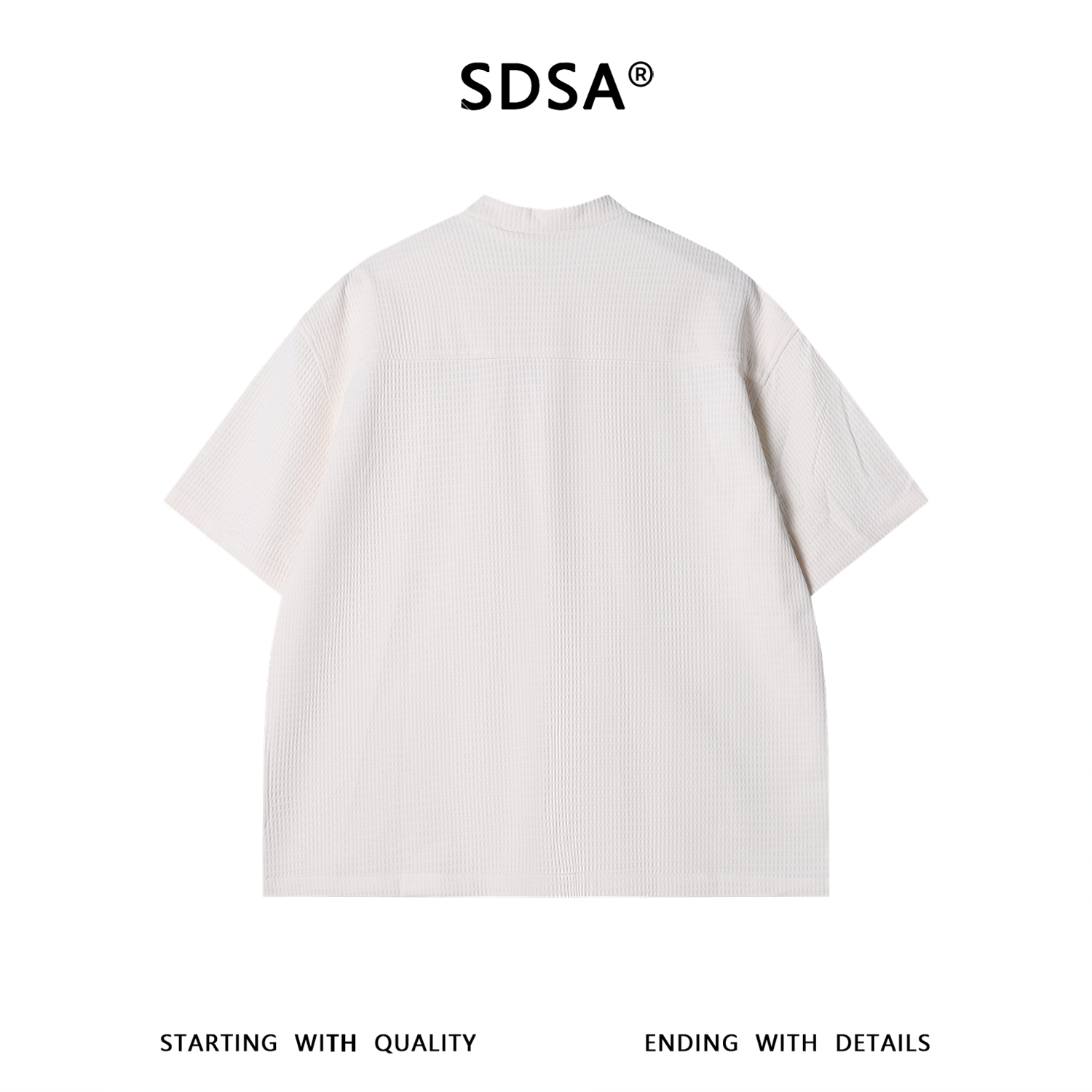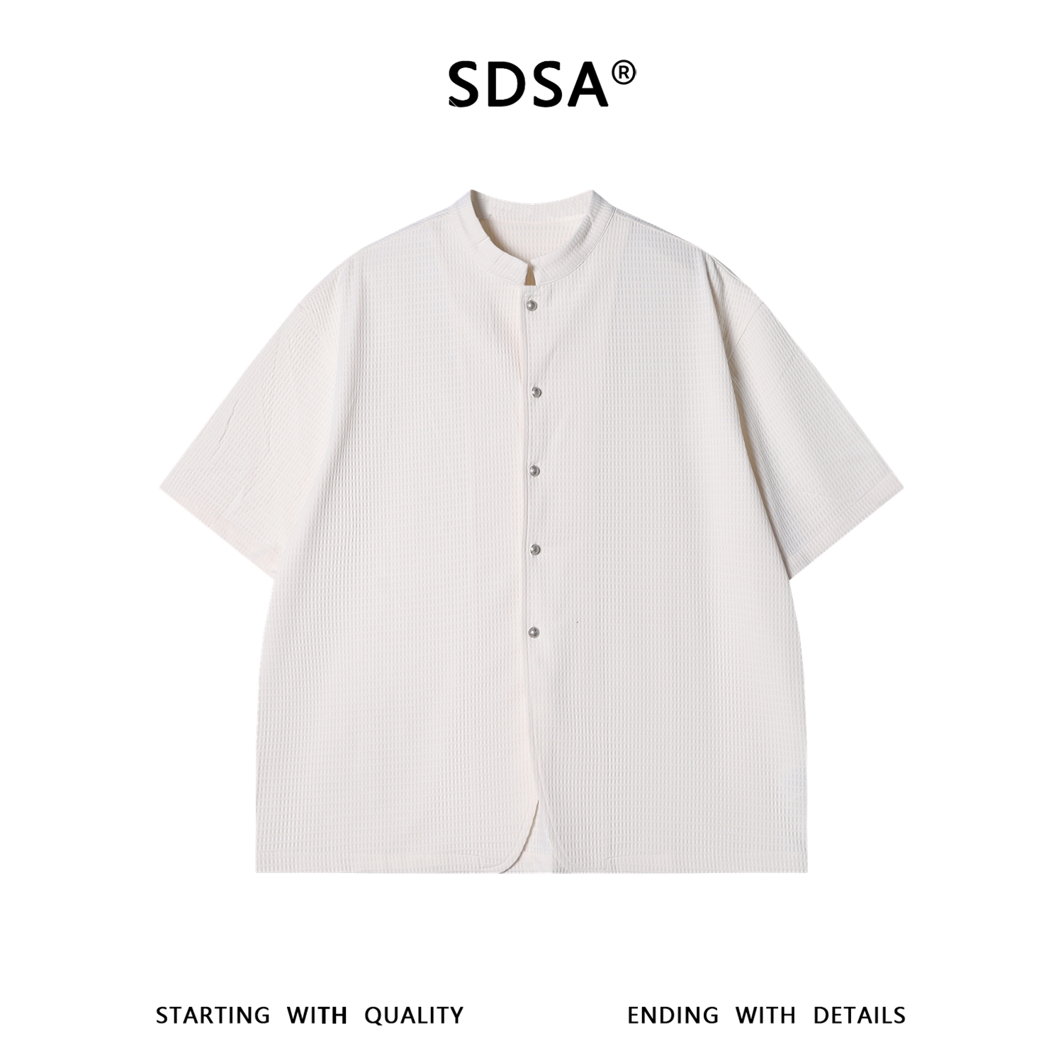 2878SDSA男装2026新款高贵轻奢极简风华夫格肌理立领短袖衬衫百搭休闲