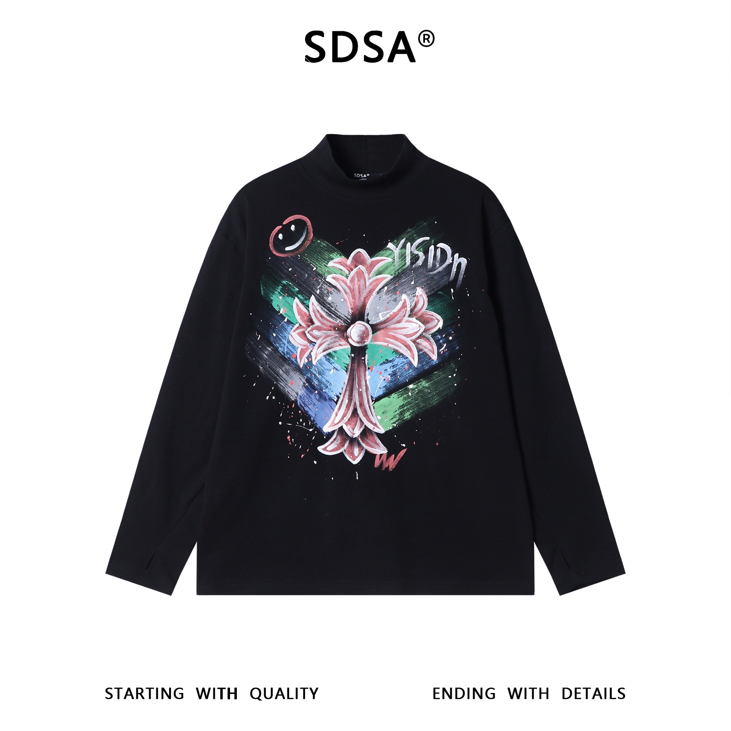 T5057SDSA男士秋冬新款痞帅男装简约彩色泼墨手绘字母立领长袖T恤百搭