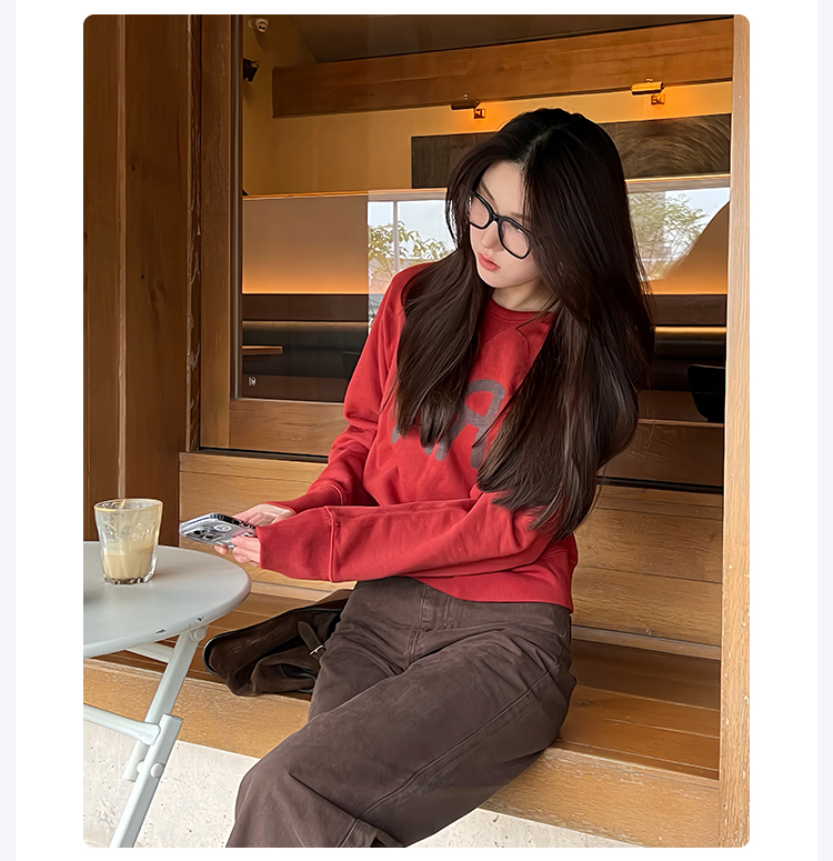 ROMI STUDIO“纽约美式" 高比例棉复古洗水印花圆领卫衣 23AWT921