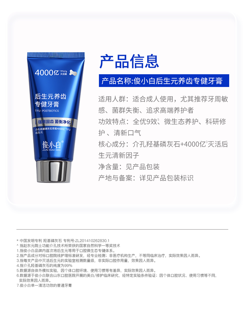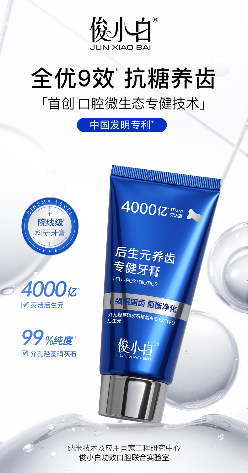 【抗糖养齿 全优9效】-俊小白后生元养齿专健牙膏