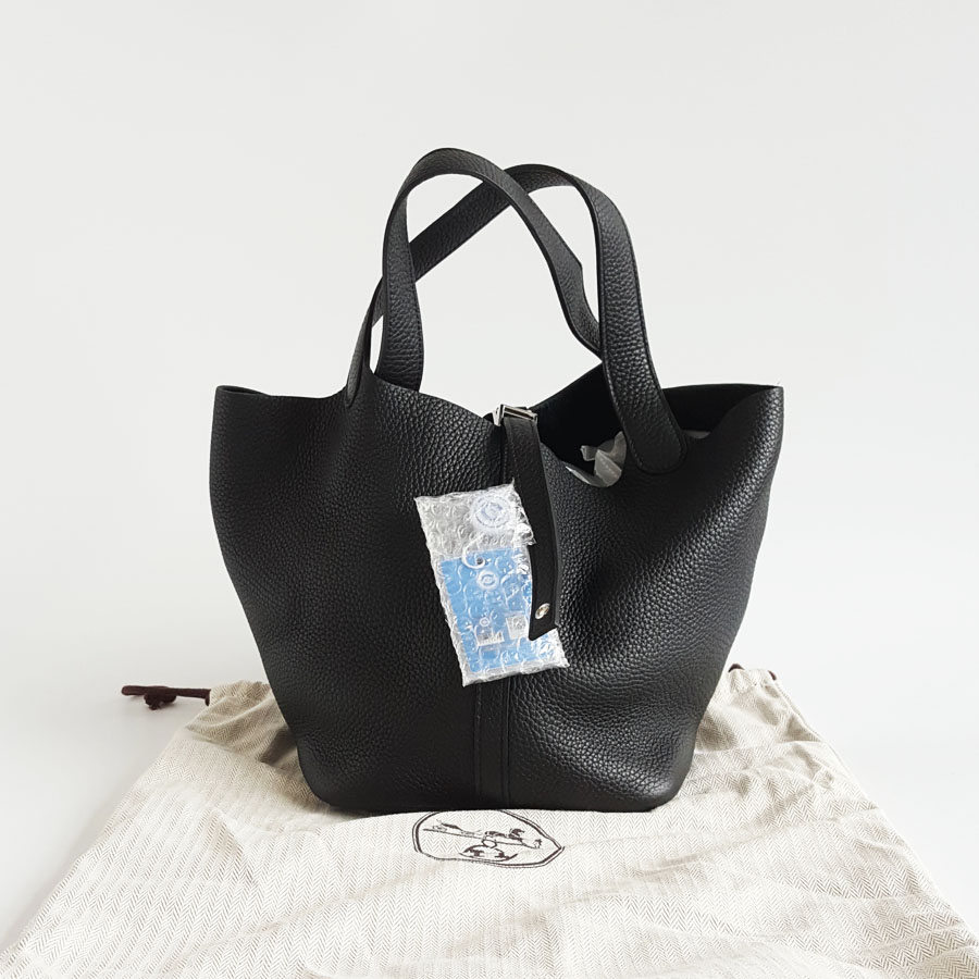 【98新】Hermes爱马仕黑银菜篮子Picotin 22女士手提包300925PM06 现售价:16500