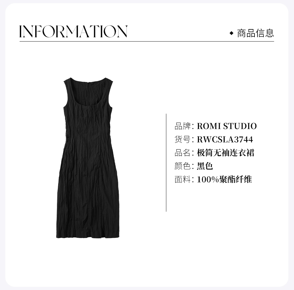 ROMI STUDIO“随性优雅”褶皱肌理感轻薄U领无袖连衣裙 RWCSLA3744