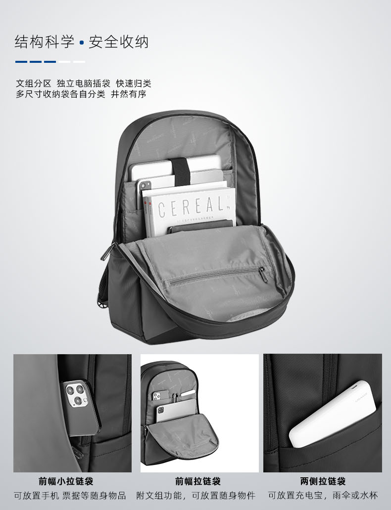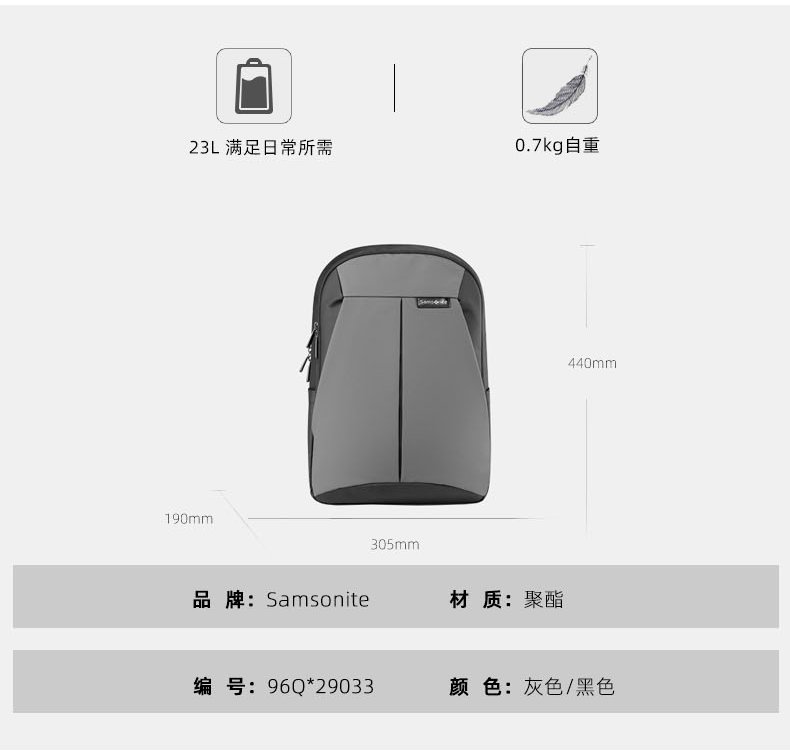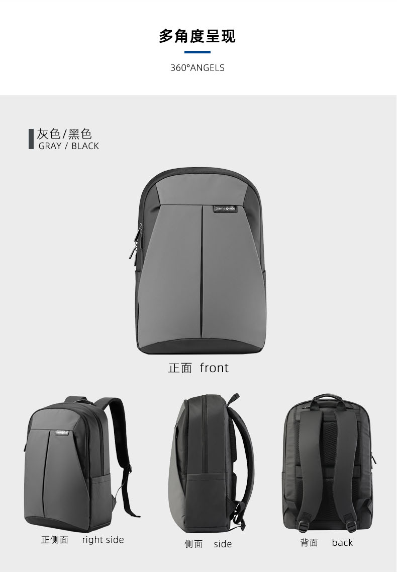 新秀丽(Samsonite)商务休闲商旅背包 时尚折角男士背包 96Q*29033 灰黑色