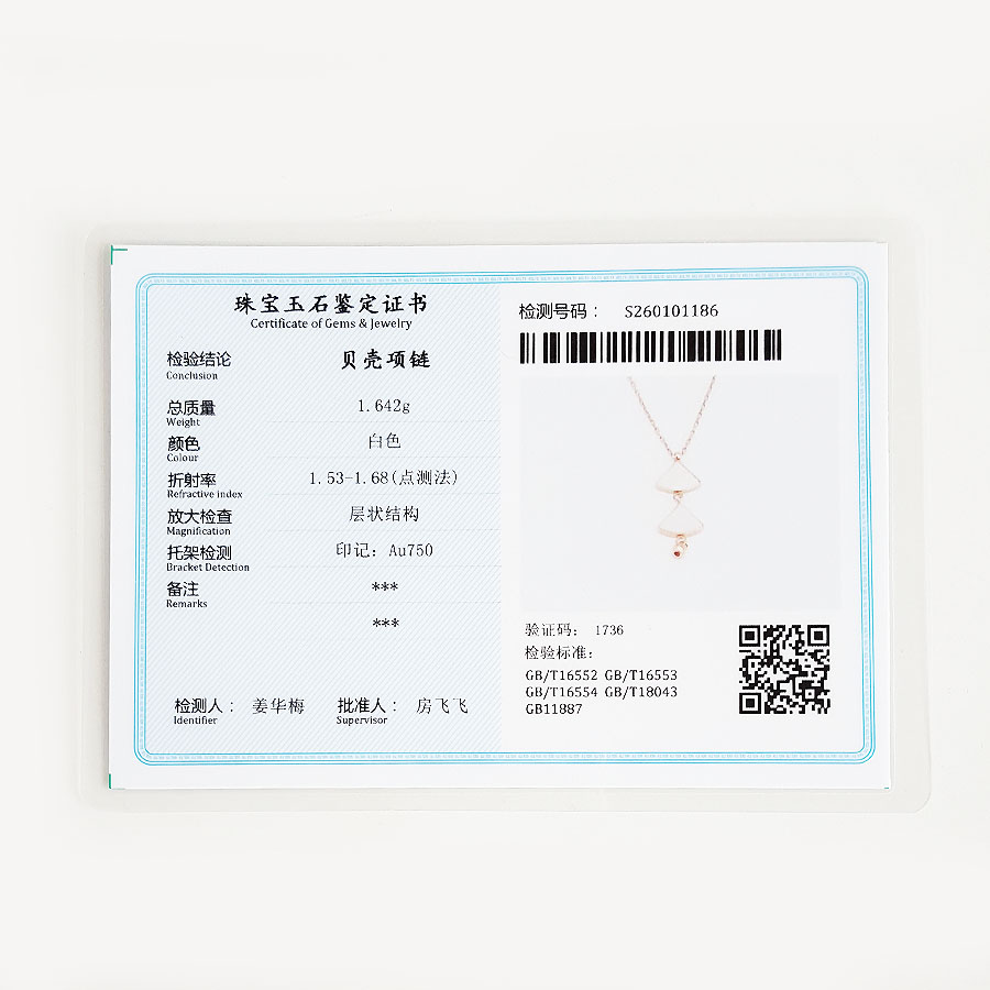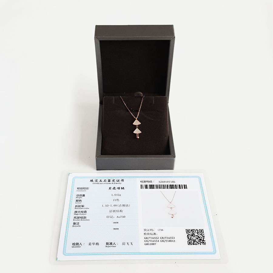 【天然正品】AU750玫瑰金经典时尚双扇子造型贝母吊坠项链22.9*7.9*1.3MM(皆取最大值)链长:43CM(长度可调节)170126NJS39