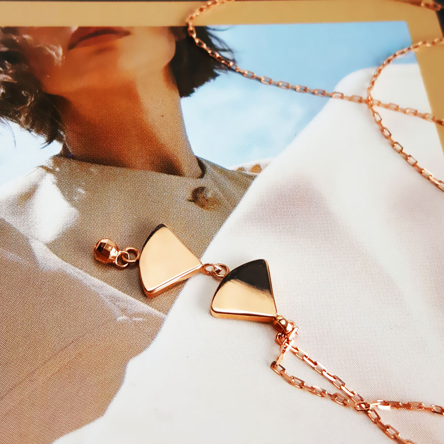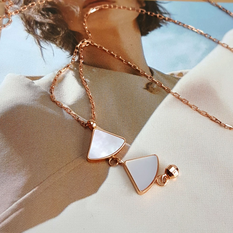 款式 | AU750玫瑰金经典时尚双扇子造型贝母吊坠项链 |