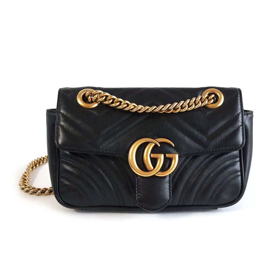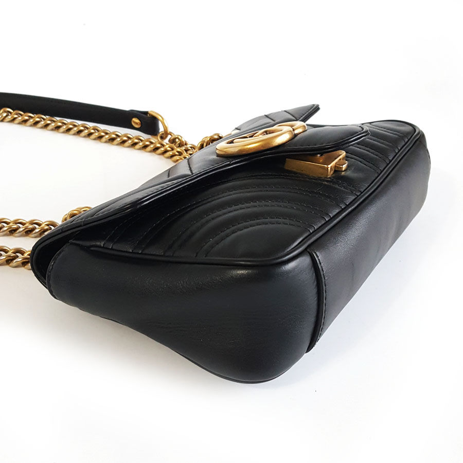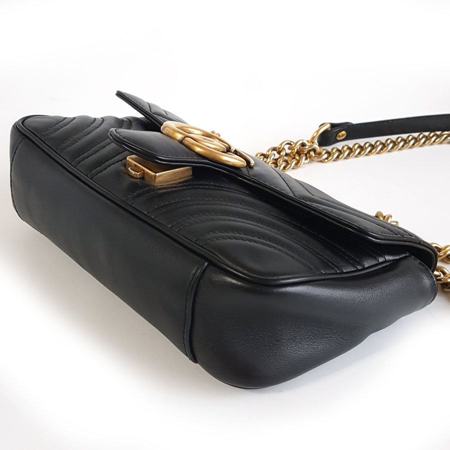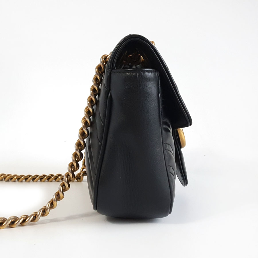 【95新】Gucci古驰Marmont系列446744 黑金马蒙22链条包单肩斜挎包女士现售价:6200!270225AI17