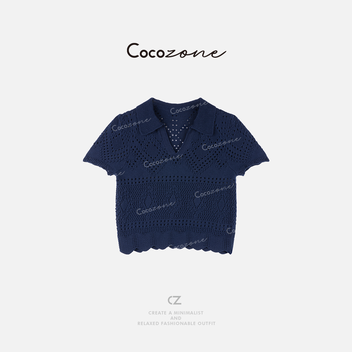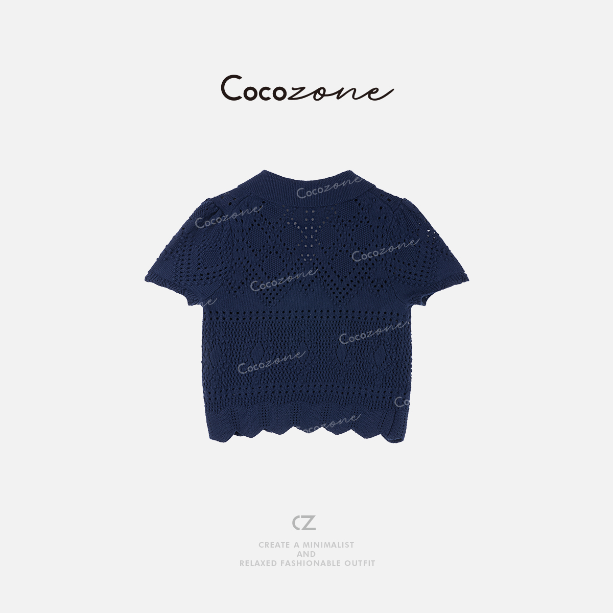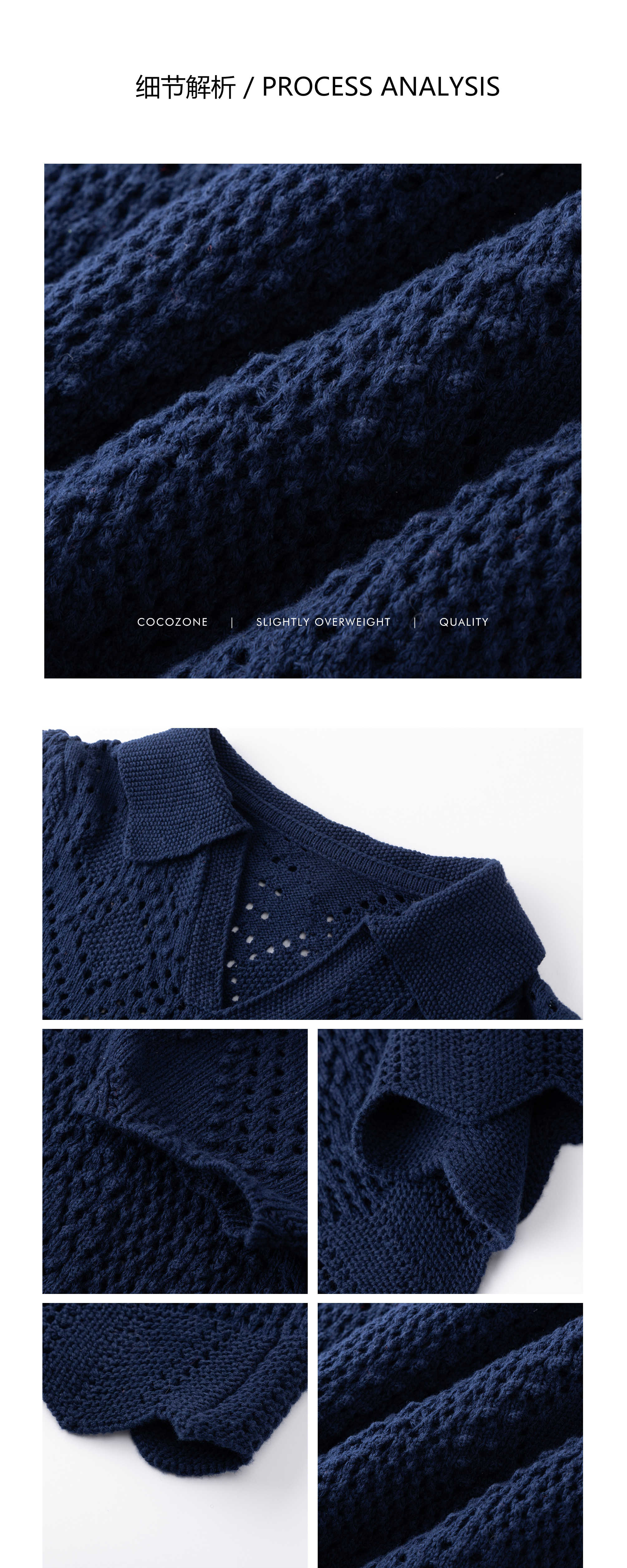 COCO ZONE 刘一一 【100棉】镂空花纹翻领毛针织衫CD1A0720