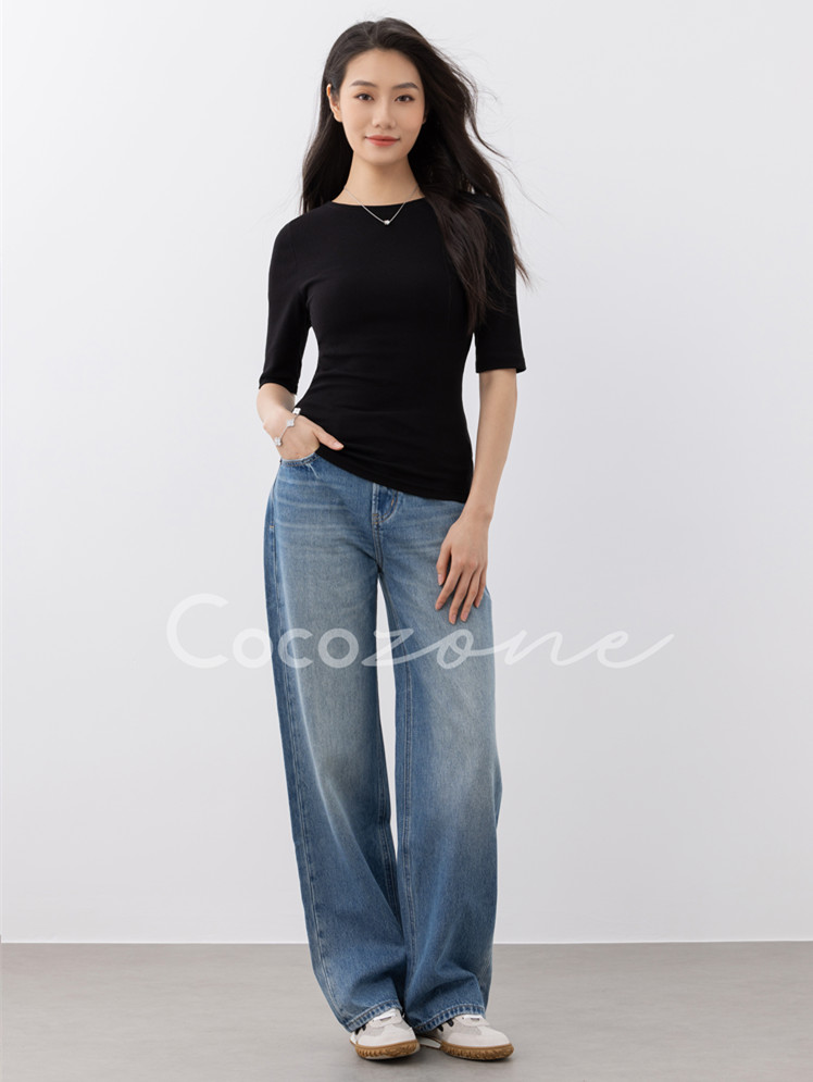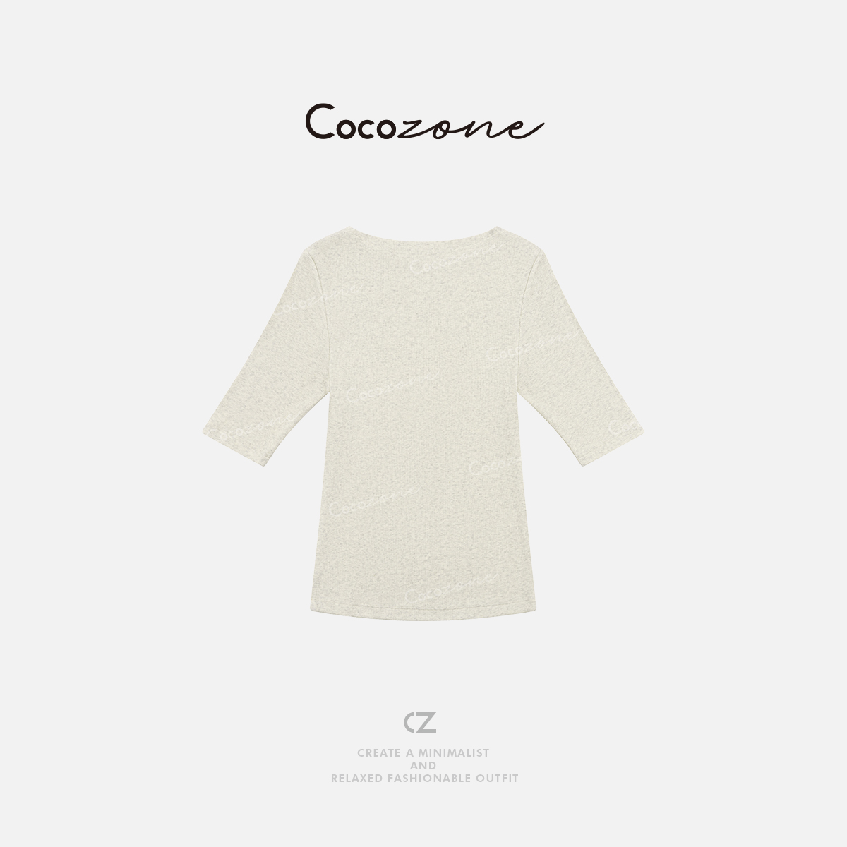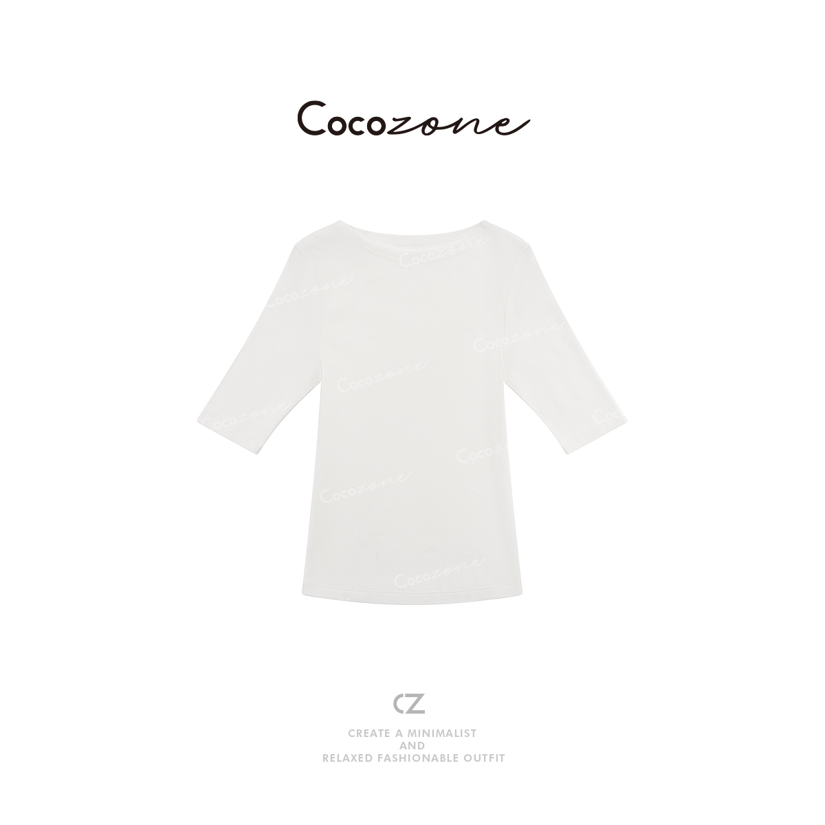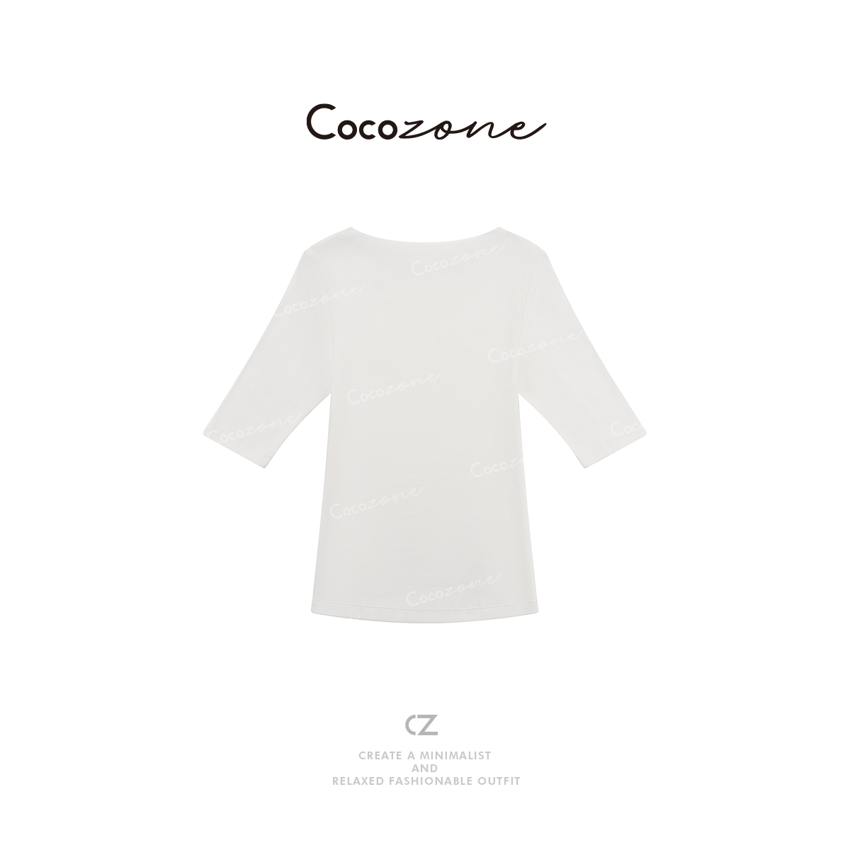 COCO ZONE 刘一一 “锁骨T”100棉简约V领短袖T恤CD1A0343