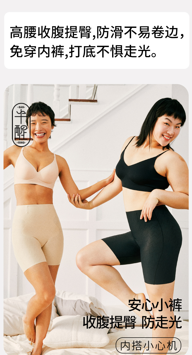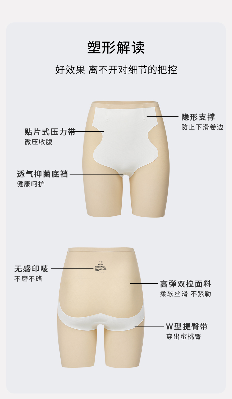 半醒凉皮高腰平角收腹裤防滑不卷边超薄面料透气美臀塑形提臀收腰紧身束身防走光蚕丝底裆舒适收腹裤