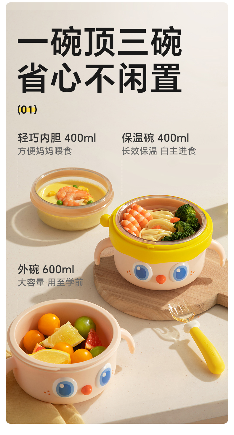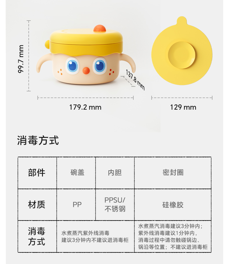 皇宠大眼萌注水碗不锈钢胆 克洛黄